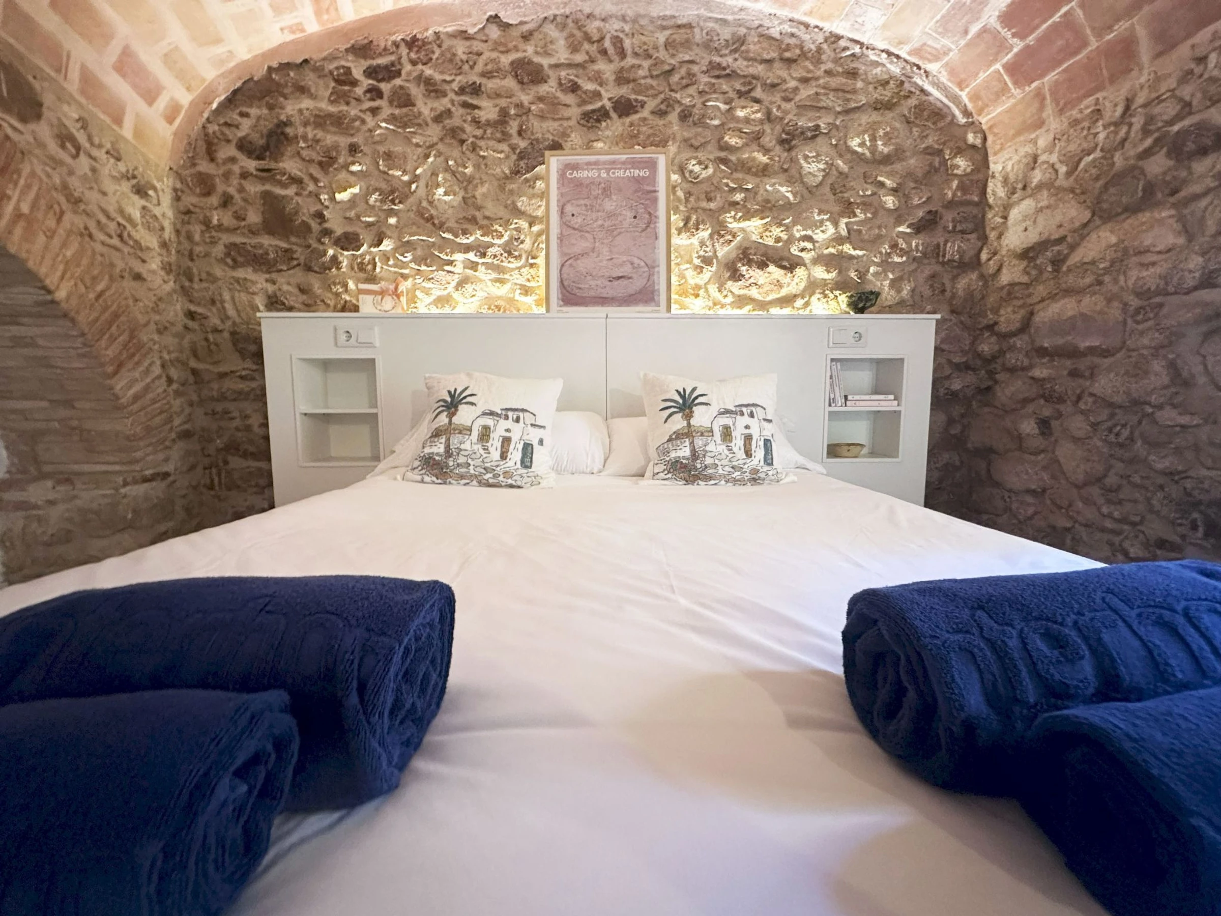 Maison mitoyenne "Can Caritat". Au centre de Pals, excellente situation: centrale mais tranquille, à 6 km de la mer, à 6 km de la plage. Parking public couvert à 10 m. Magasins 80 m, supermarché 6 km, restaurant, café 40 m, arrêt de bus "Pals - Marquesina" 85 m, gare ferroviaire "Flaça" 24 km, plage de sable "Platja de Pals" 6 km. Port plaisance 15 km, terrain de golf (18 trous) 6 km, tennis 5 km. Attractions à proximité: Pals - Pueblo Medieval 100 m, Parc Aventura (tirolinas.) 4 km, Peratallada - Pueblo Medieval 6 km, Castell del Montgrí 10 km, Islas Medas 17 km, Platja d'Aro - Avenida de tiendas 25 km. Veuillez noter: sans ascenseur. Non recommandé pour des enfants en bas âge. Le propriétaire n'accepte pas les groupes de jeunes. Certaines parties de la maison sont fermées et inoccupées. Environnement très sensible au bruit. Silence et bonne tenue exigés.