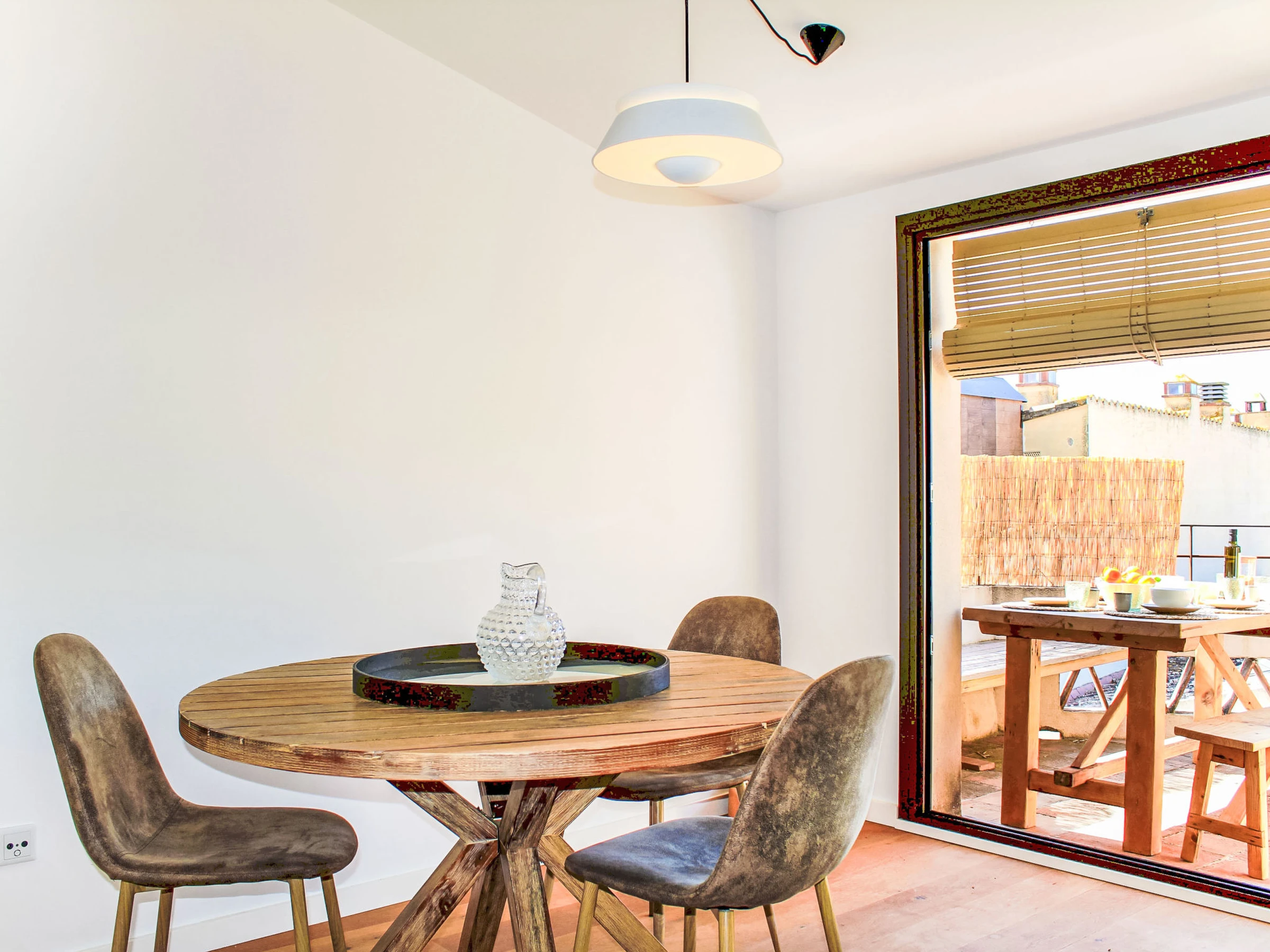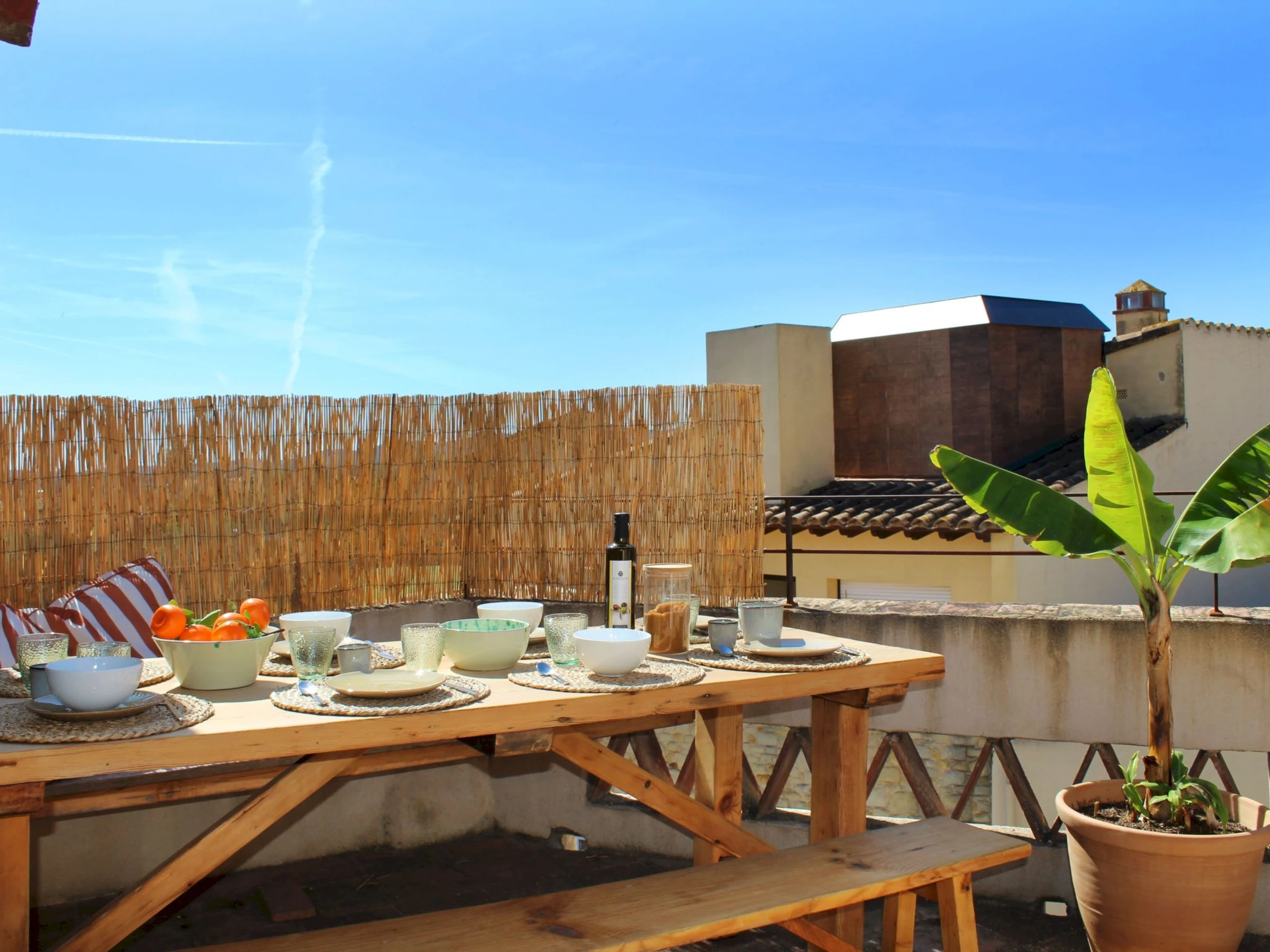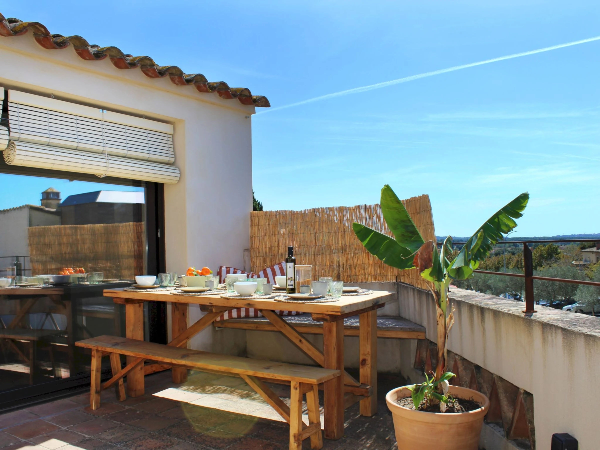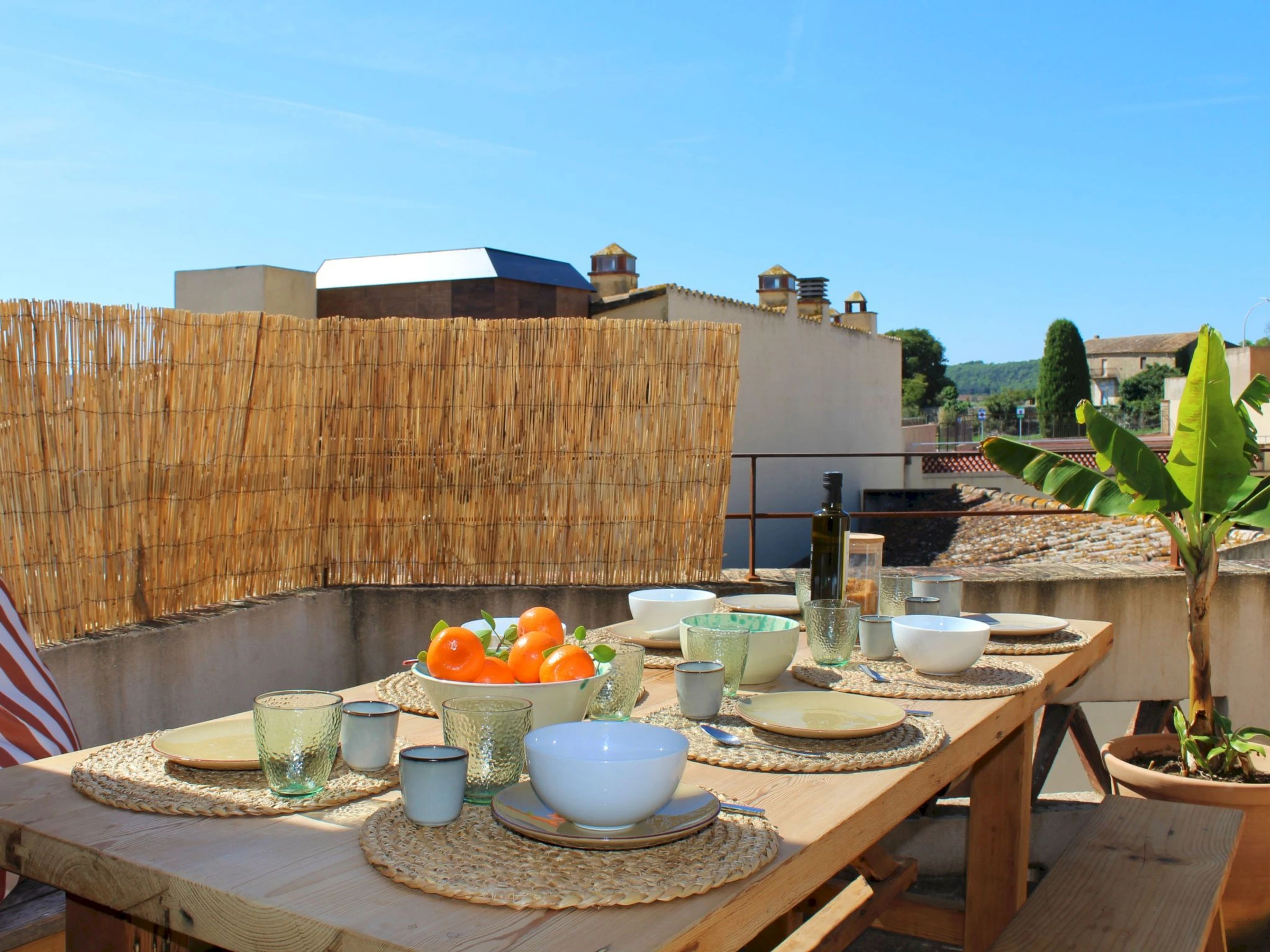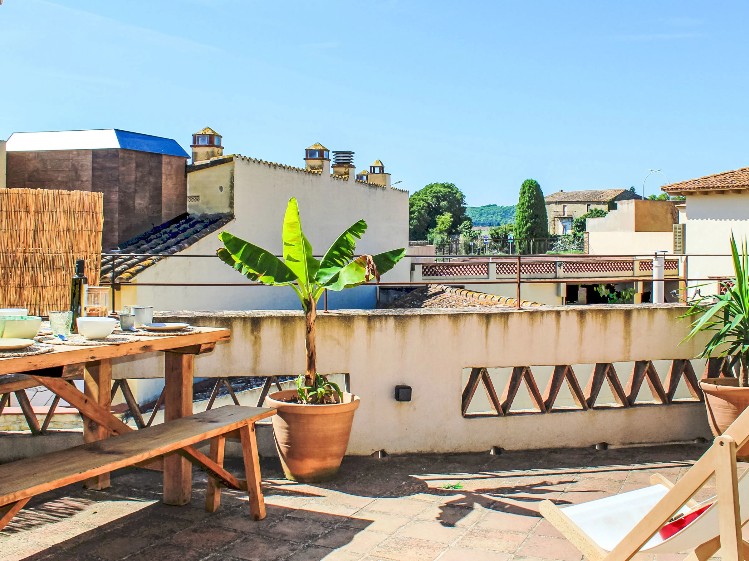 "Can Caritat", maison mitoyenne 6 pièces 120 m2 sur 3 niveaux. Aménagement fonctionnel et confortable: entrée. Sortie sur la terrasse. À l'étage supérieur: séjour. Salle à manger. 1 chambre avec 1 grand-lit (150 cm, longueur 190 cm). 1 chambre avec 1 grand-lit (140 cm, longueur 190 cm). Cuisine ouverte (four, lave-vaisselle, 4 plaques à induction, grille-pain, bouilloire électrique, cafetière électrique). Douche/WC. Chauffage. 2ème étage: séjour. Sortie sur la terrasse. 1 chambre avec 1 grand-lit (135 cm, longueur 190 cm), douche/WC. 1 chambre avec 1 grand-lit (140 cm, longueur 190 cm), douche/WC. Cuisine (four, 4 plaques à induction, bouilloire électrique, cafetière électrique). Sortie sur la terrasse. Grande terrasse. Meubles de terrasse, place pour s'asseoir. Belle vue sur la ville. A disposition: lave-linge, fer à repasser, sèche-cheveux. Internet (Connexion WIFI, gratuit). Veuillez noter: non recommandé pour des enfants en bas âge. Maison non-fumeur, pas de parking. La maison ne dispose ni de télévision ni de micro-ondes. [hidden] // Reg. Nr.: ESFCTU00001700700017064100000000000000000[hidden]8
