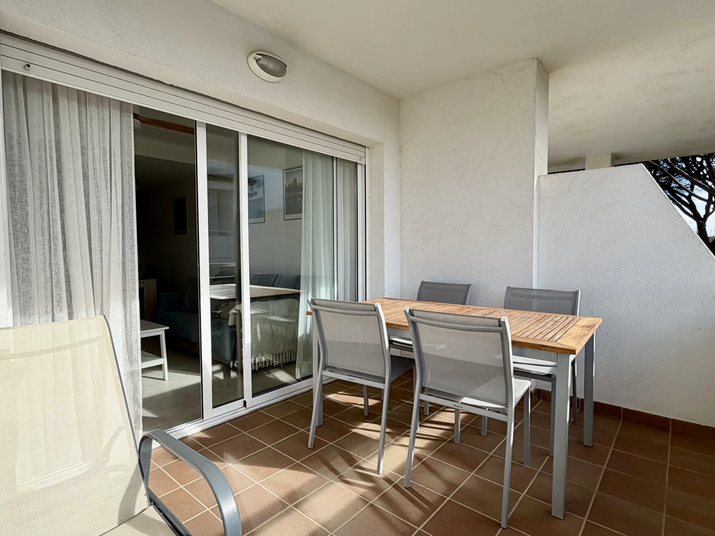 Le logement dispose d'une terrasse extérieure qui invite à profiter de moments en plein air, idéale pour prendre un apéritif ou se reposer après une journée à la plage. Les invités peuvent profiter d'une piscine partagée, un endroit parfait pour que les enfants jouent et que les adultes se détendent sous le soleil méditerranéen.