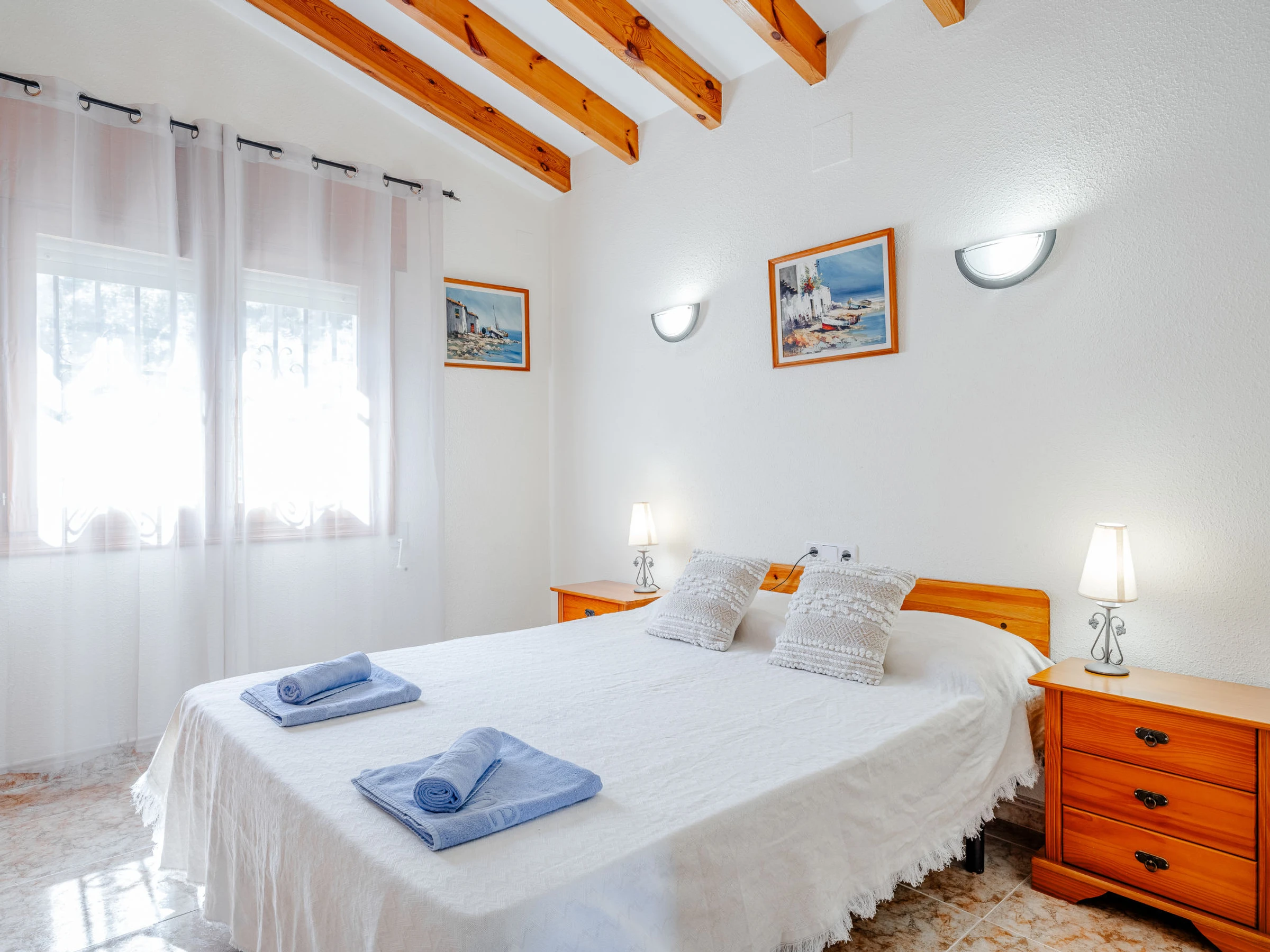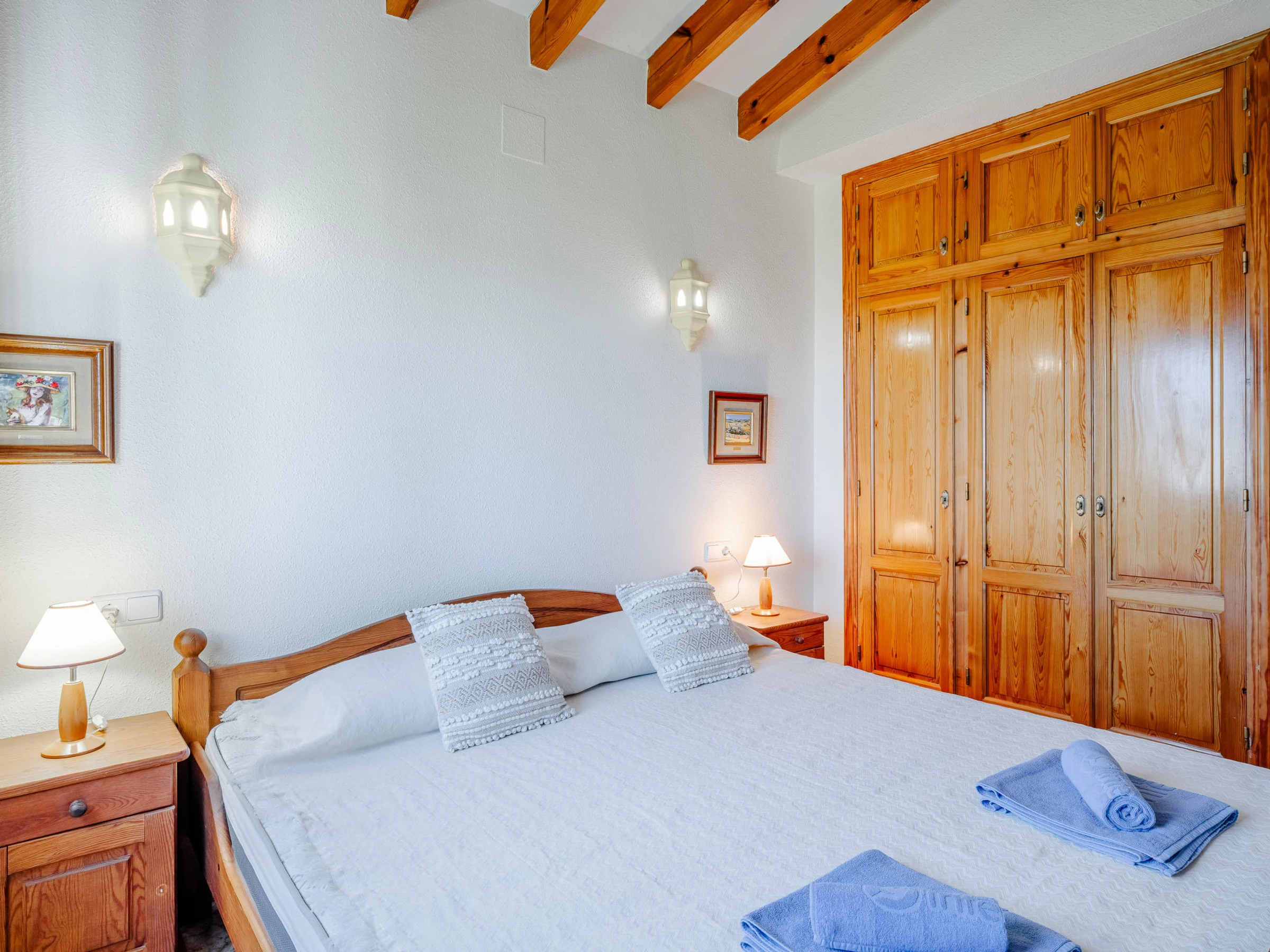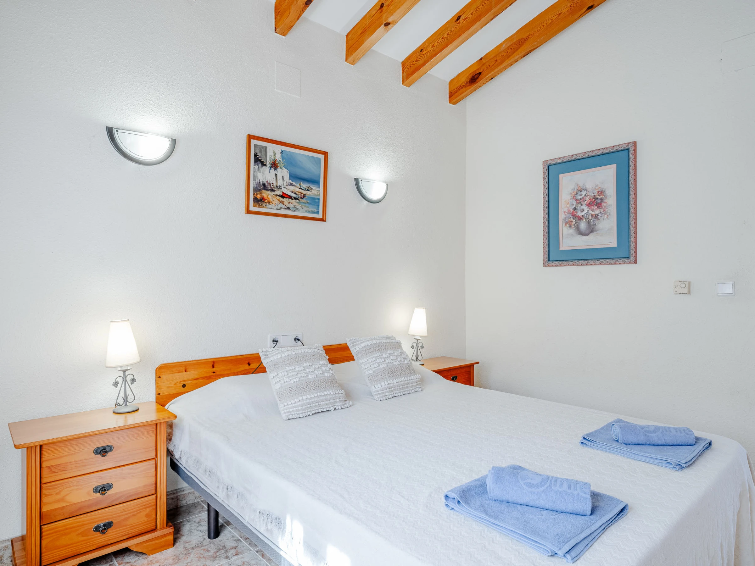 "Los Delfines", maison 3 pièces 100 m2. Spacieux, aménagement très simple et plaisant: séjour/salle à manger avec Télévision numérique, chaîne stéréo, DVD, air-conditionné et chauffage à air chaud. Sortie sur la terrasse. 1 chambre avec 1 grand-lit (180 cm, longueur 200 cm). 1 chambre avec 1 grand-lit armoire (160 cm, longueur 200 cm). Cuisine (four, 3 plaques vitrocéramiques, grille-pain, bouilloire électrique, micro-ondes, congélateur, cafetière électrique, Capsules pour machine à café (Tassimo) (NON INCLUSES)). Bain/WC, WC séparé. Chauffage par le sol. Grande terrasse. Meubles de terrasse, barbecue. Superbe vue sur la mer, les montagnes et la vallée. A disposition: lave-linge, fer à repasser, sèche-cheveux. Internet (Connexion WIFI, gratuit). Place de parking. Veuillez noter: TV seulement ES. [hidden] // Reg. Nr.: ESFCTU00000301500025508100000000000000000[hidden]4