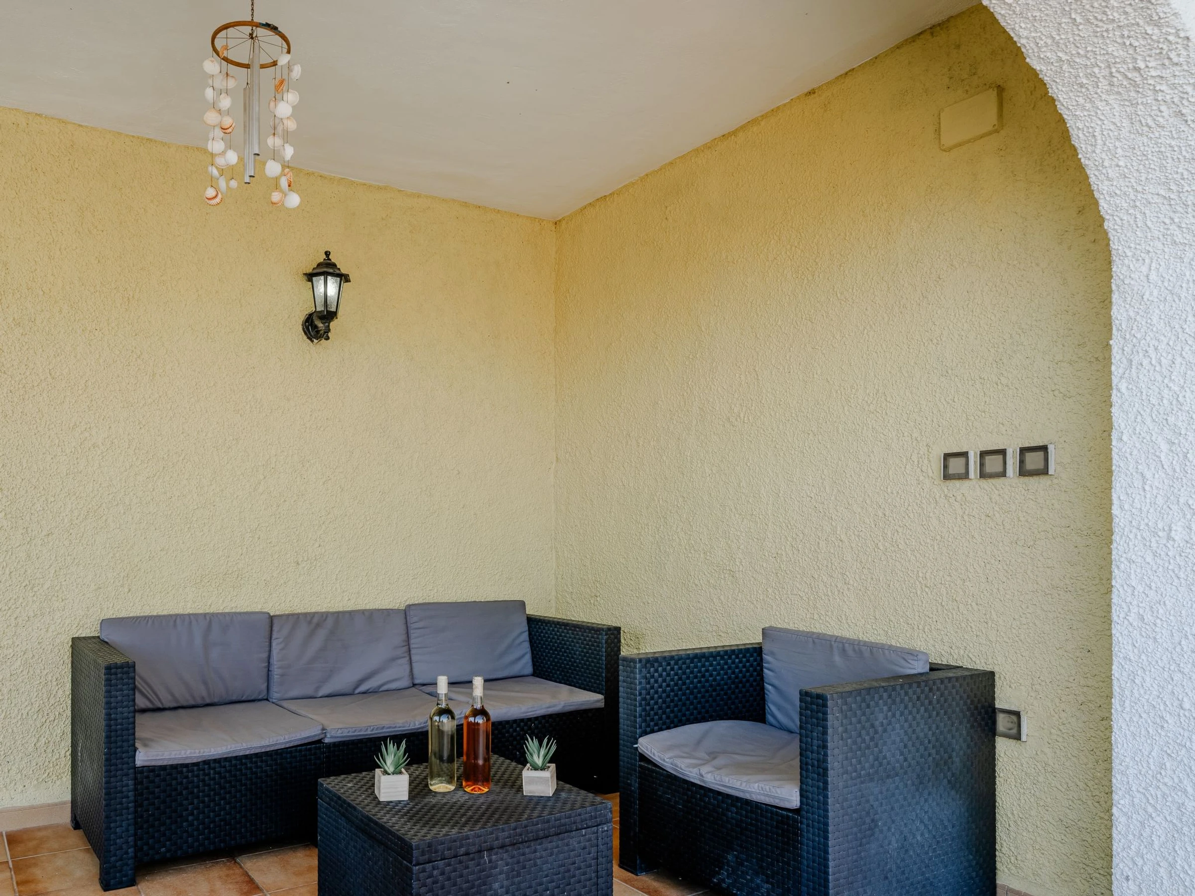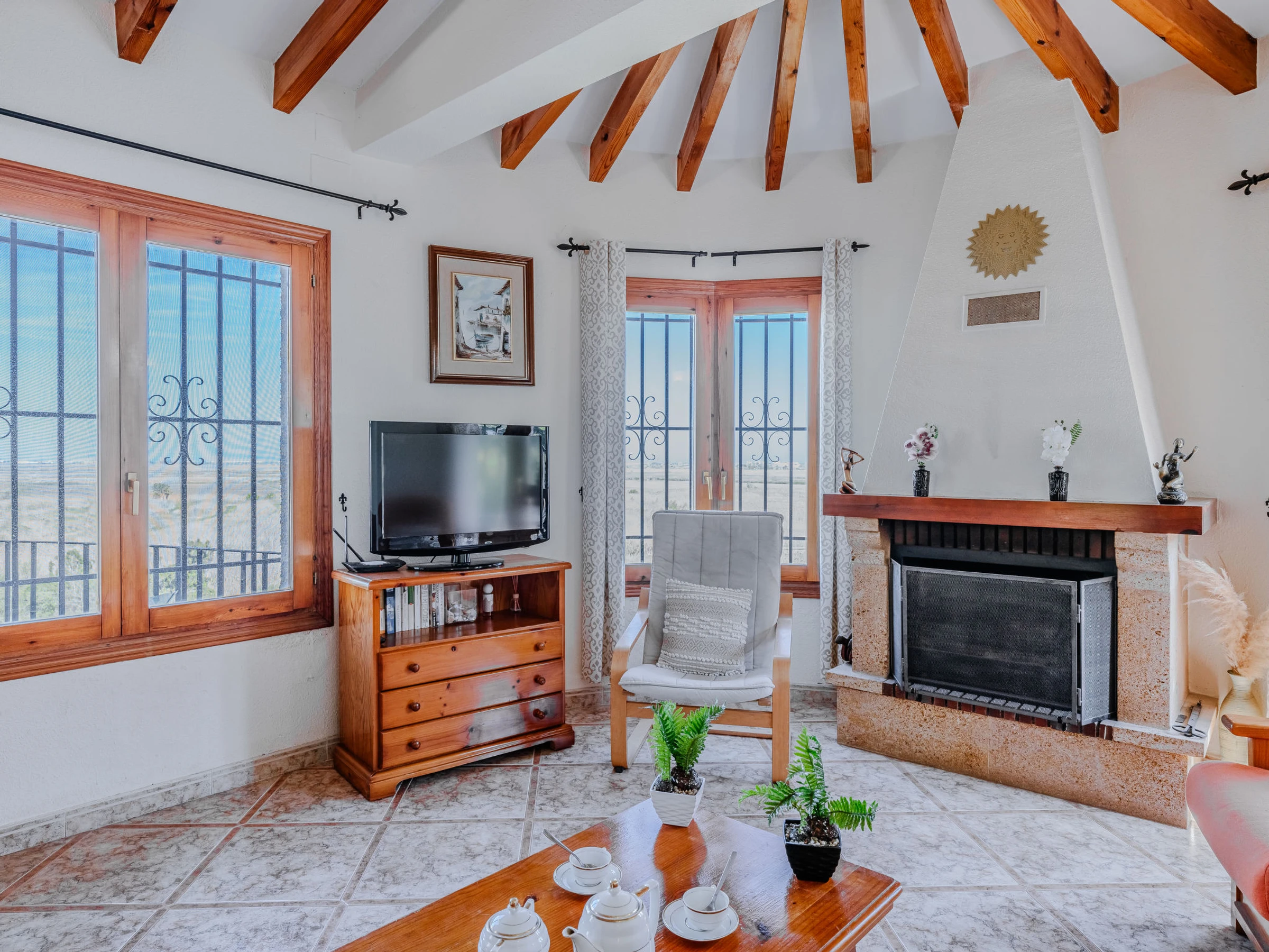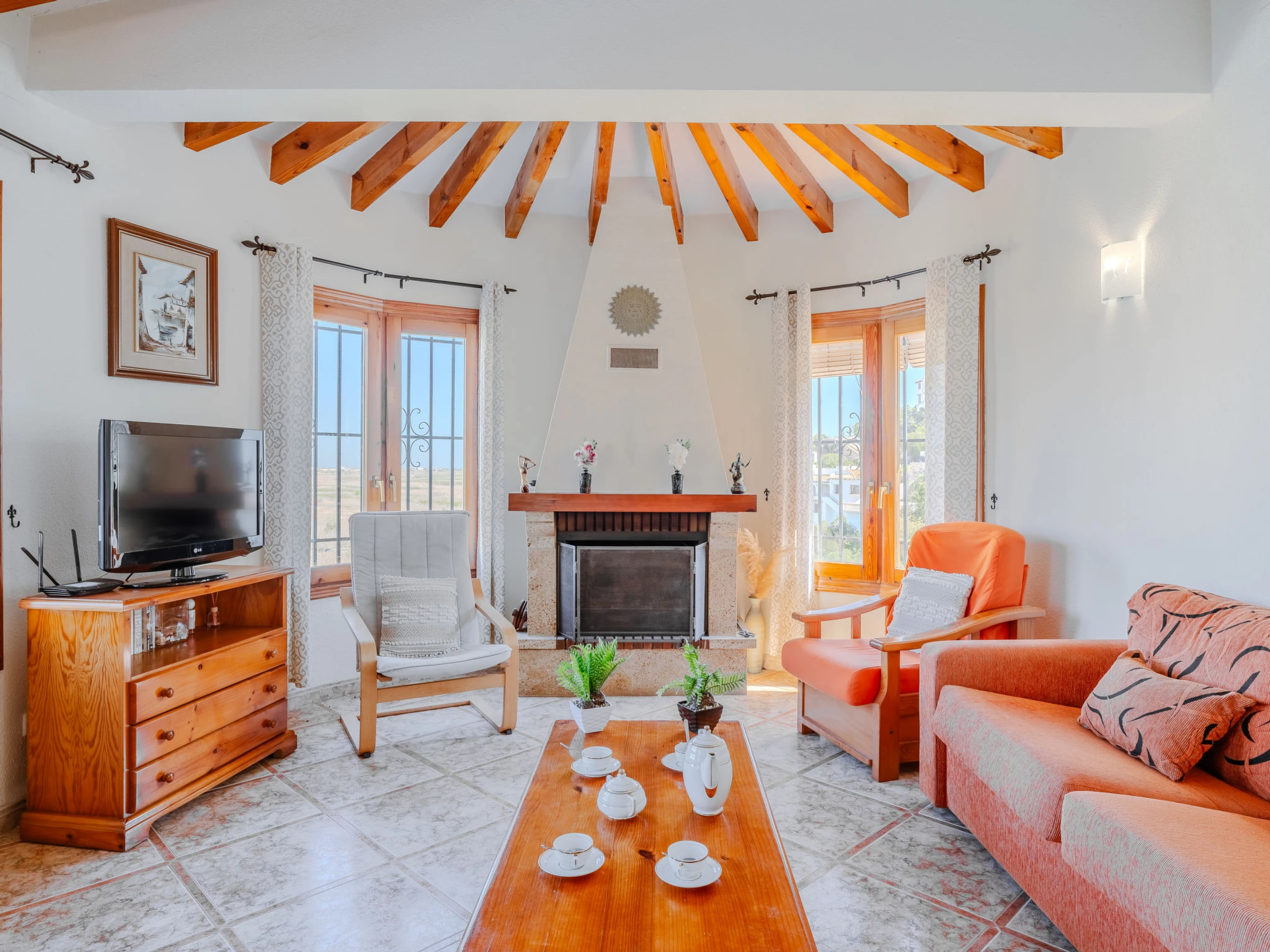 "Los Delfines", maison 3 pièces 100 m2. Spacieux, aménagement très simple et plaisant: séjour/salle à manger avec Télévision numérique, chaîne stéréo, DVD, air-conditionné et chauffage à air chaud. Sortie sur la terrasse. 1 chambre avec 1 grand-lit (180 cm, longueur 200 cm). 1 chambre avec 1 grand-lit armoire (160 cm, longueur 200 cm). Cuisine (four, 3 plaques vitrocéramiques, grille-pain, bouilloire électrique, micro-ondes, congélateur, cafetière électrique, Capsules pour machine à café (Tassimo) (NON INCLUSES)). Bain/WC, WC séparé. Chauffage par le sol. Grande terrasse. Meubles de terrasse, barbecue. Superbe vue sur la mer, les montagnes et la vallée. A disposition: lave-linge, fer à repasser, sèche-cheveux. Internet (Connexion WIFI, gratuit). Place de parking. Veuillez noter: TV seulement ES. [hidden] // Reg. Nr.: ESFCTU00000301500025508100000000000000000[hidden]4