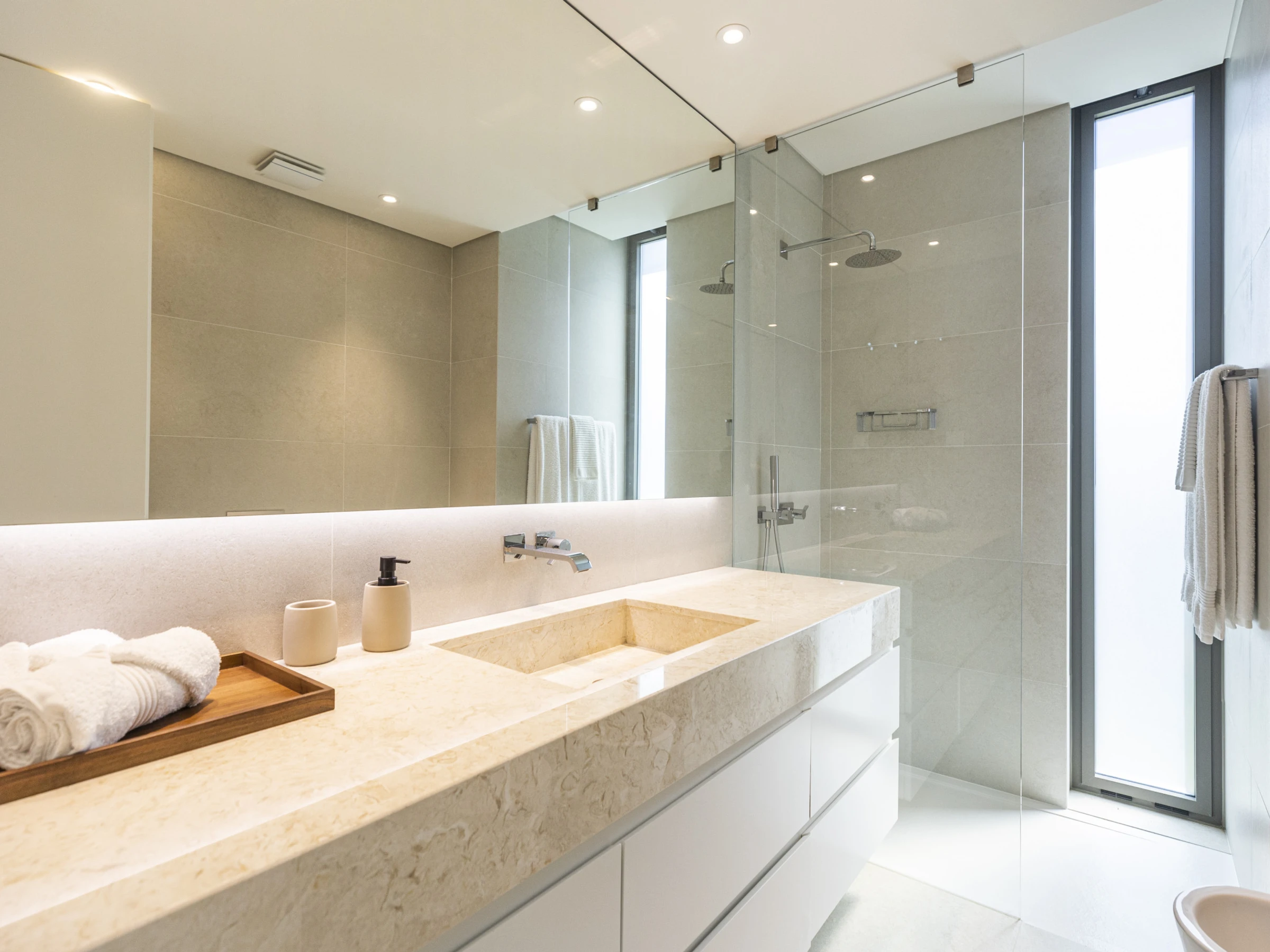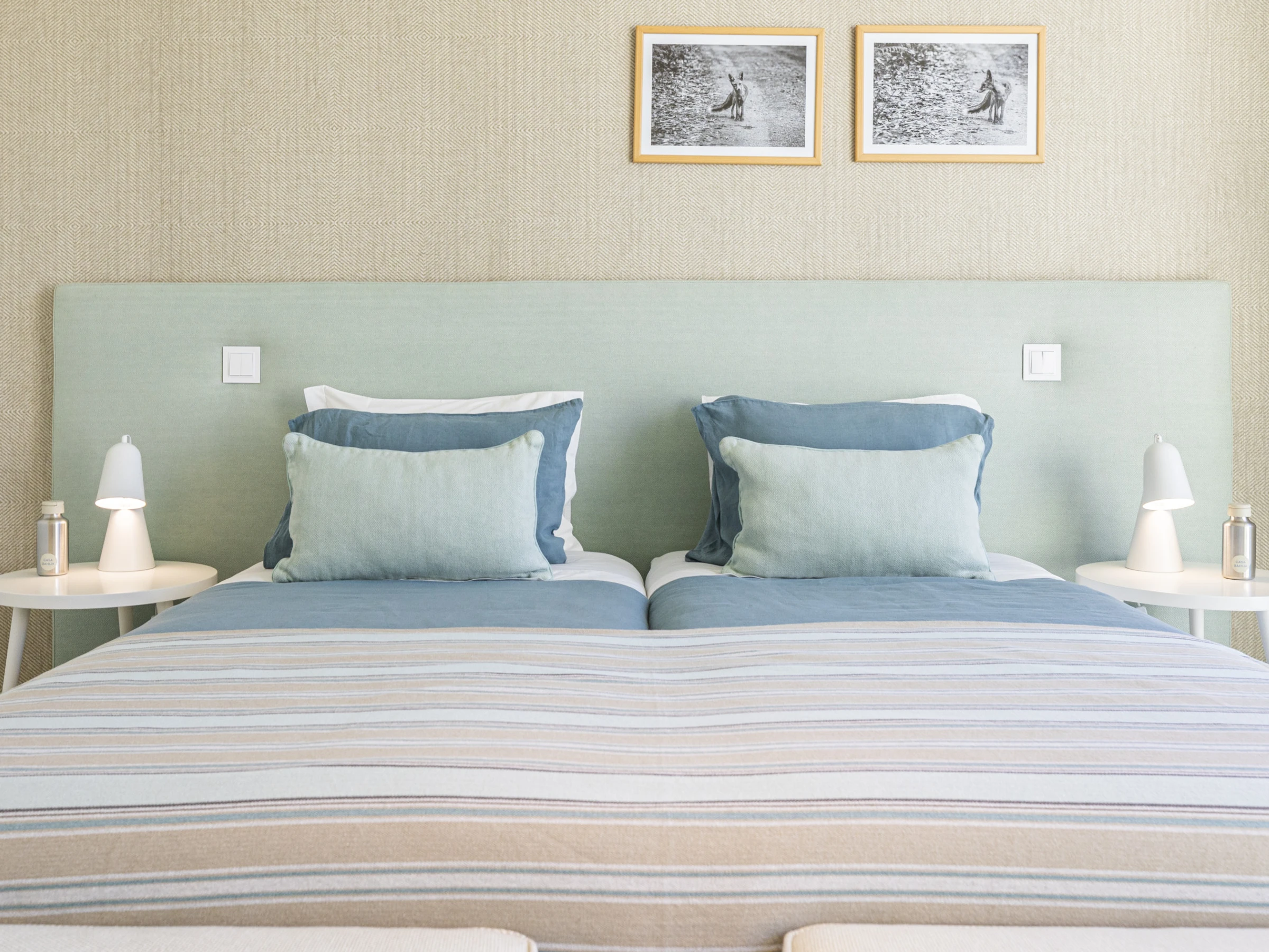 Il y a 6 chambres doubles et salles de bains, le décor simple et moderne et la lumière naturelle abondante créant un environnement tranquille et apaisant dans lequel se détendre.
