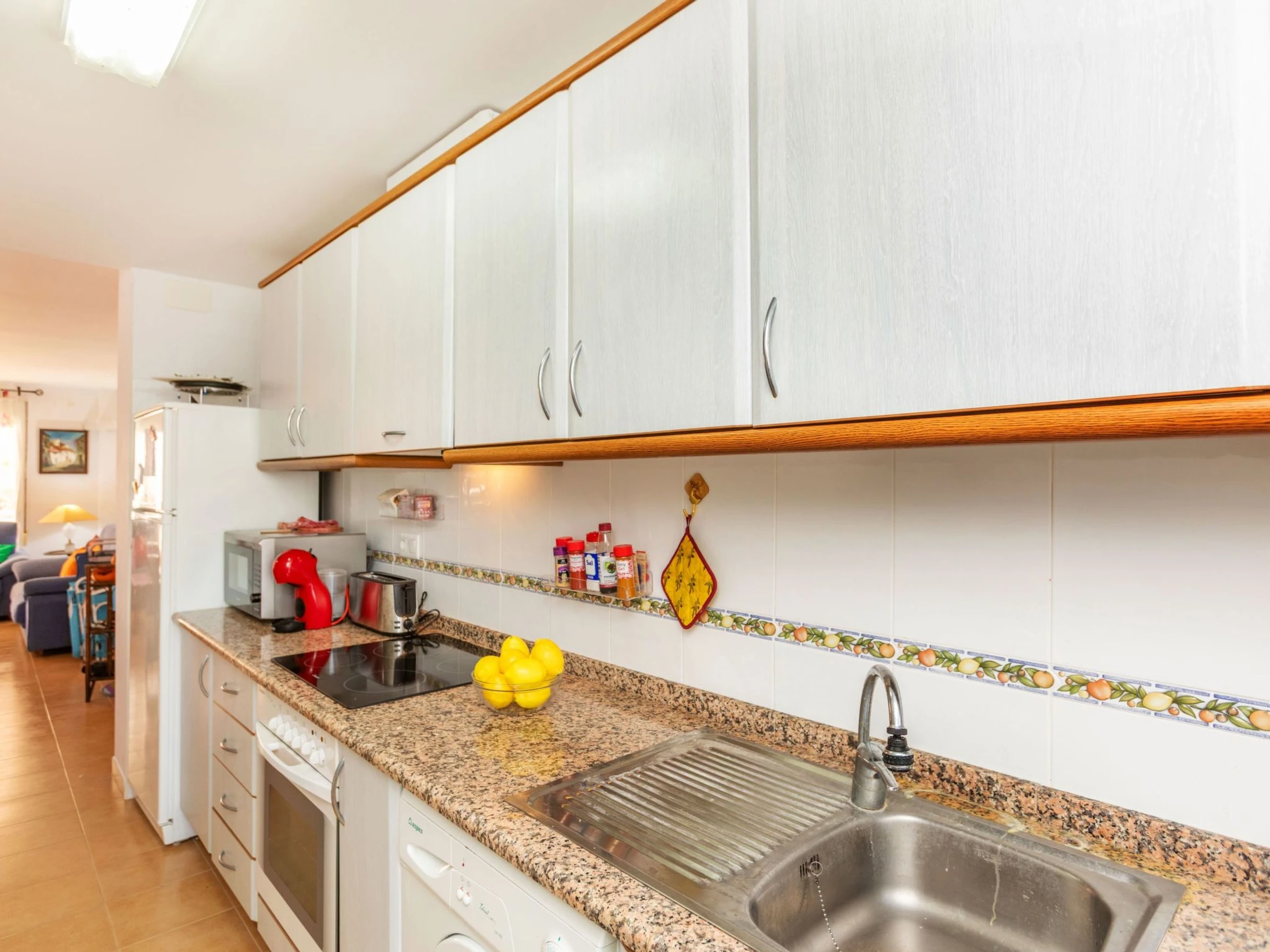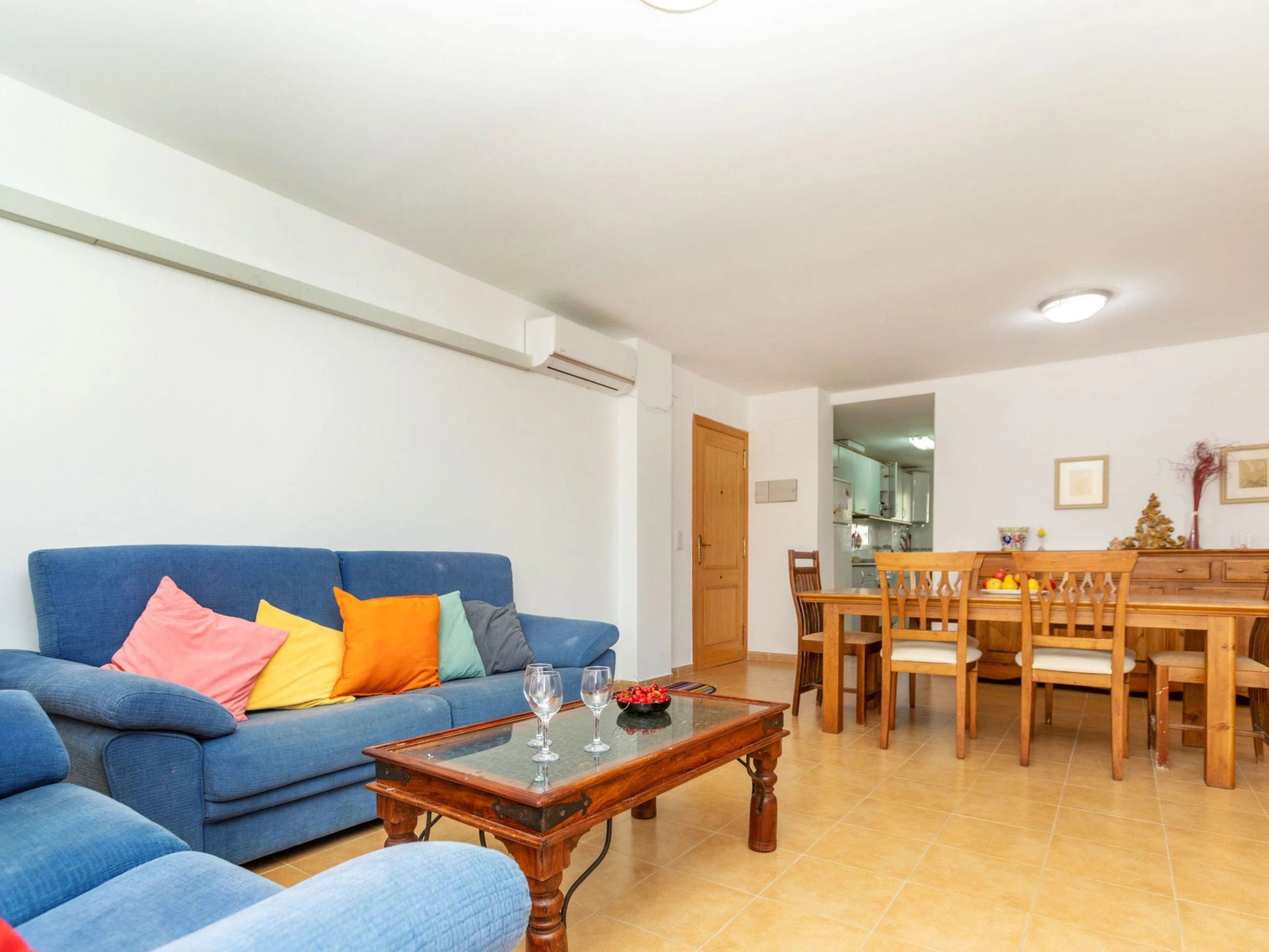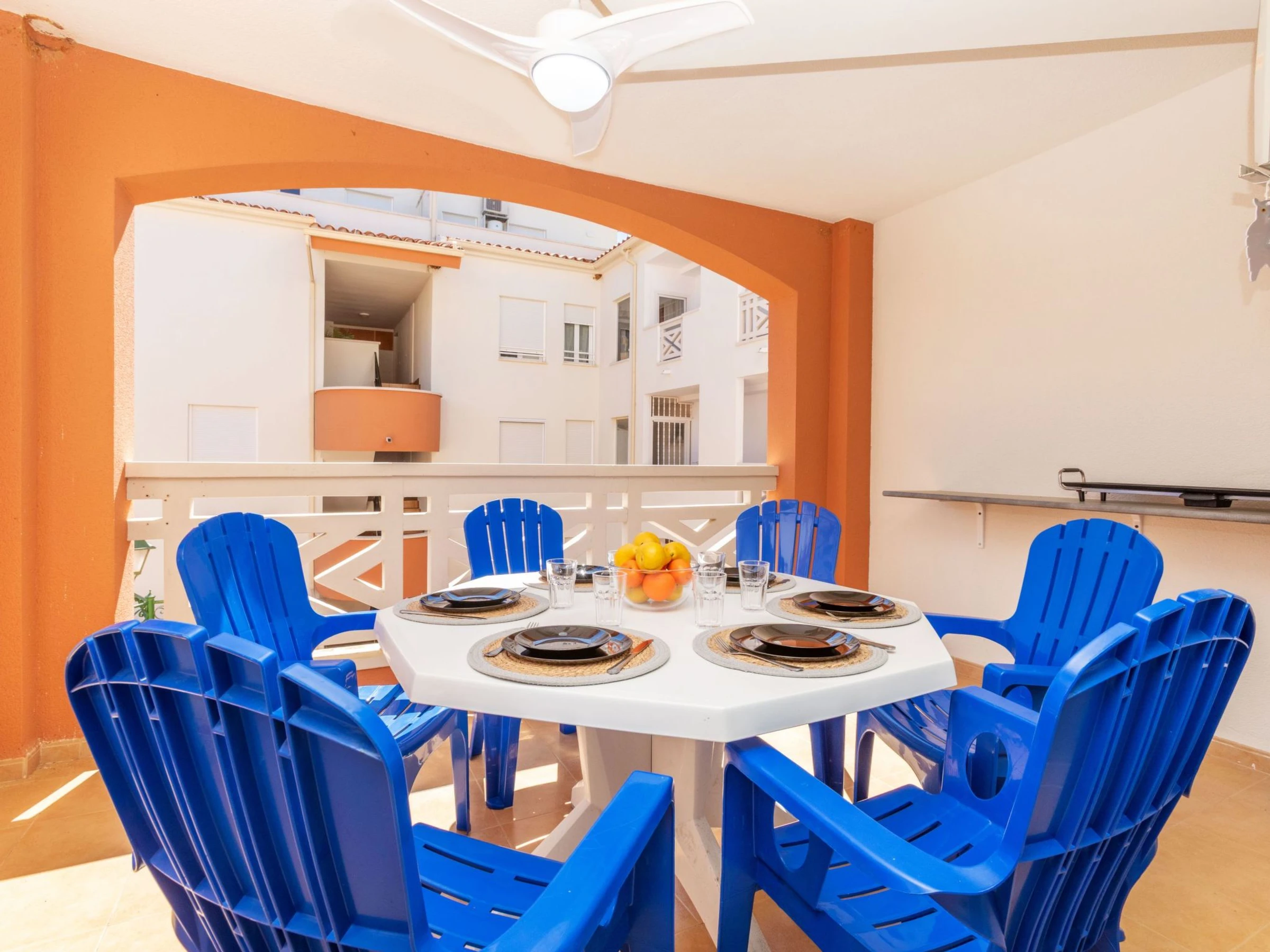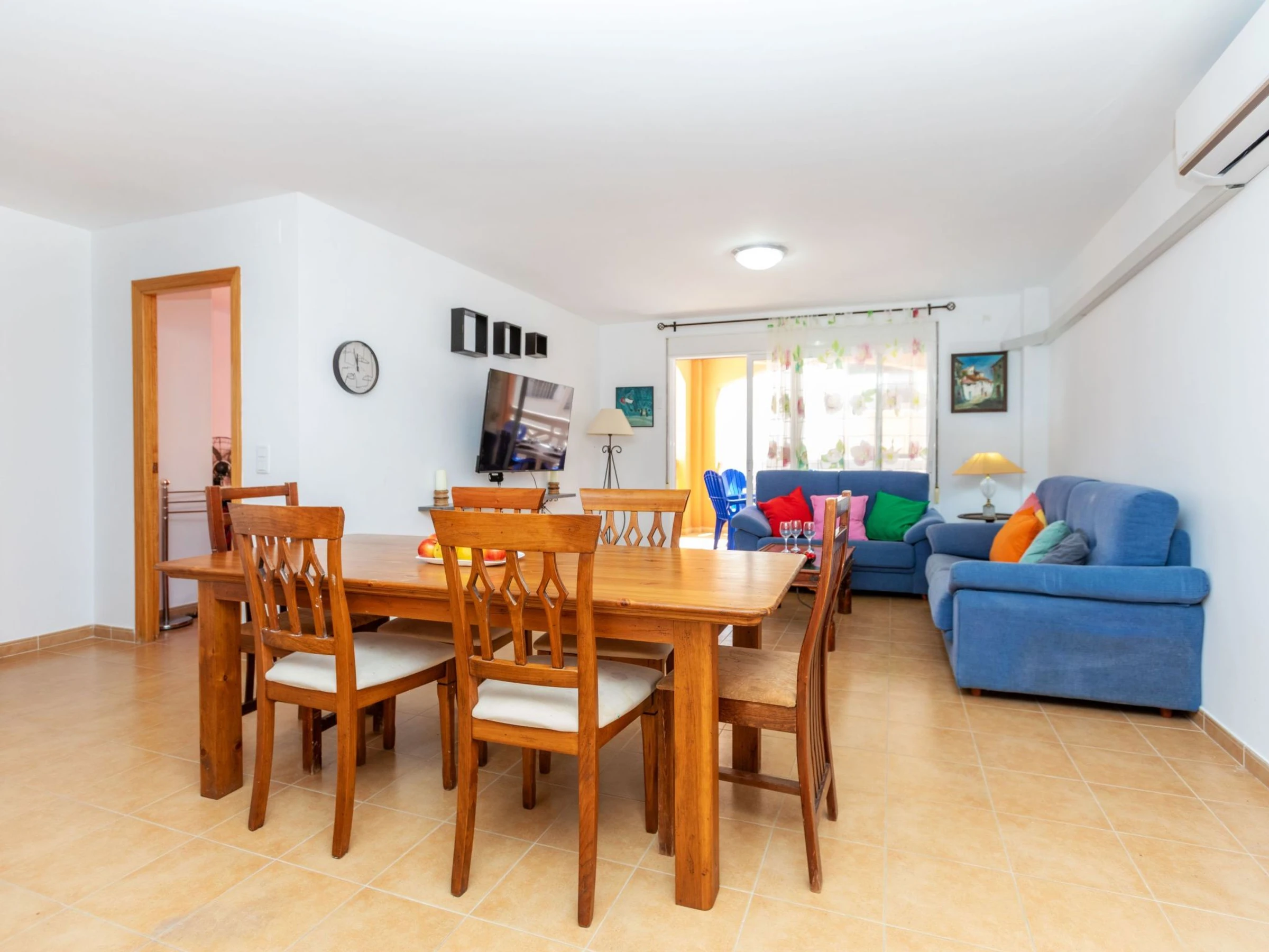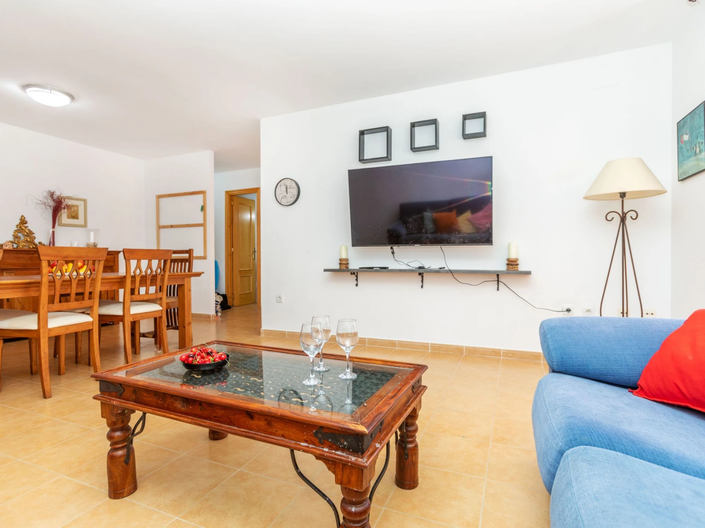 "Adam", apt 4 pièces 120 m2. Aménagement fonctionnel: séjour/salle à manger avec table pour les repas, Télévision numérique, air-conditionné et chauffage à air chaud. Sortie sur la terrasse. 1 chambre avec 1 grand-lit (1 x 160 cm, longueur 190 cm), ventilateur. 1 chambre avec 1 grand-lit (1 x 150 cm, longueur 190 cm), ventilateur. 1 chambre avec 1 grand-lit (1 x 135 cm, longueur 190 cm), ventilateur. Cuisine (four, 4 plaques vitrocéramiques, grille-pain, bouilloire électrique, micro-ondes, cafetière électrique, Capsules pour machine à café (Dolce Gusto) (NON INCLUSES)). Bain/bidet/WC, douche/WC. Chauffe eau (80 litres). Terrasse. Meubles de terrasse, chaises longues (4). A disposition: lave-linge, fer à repasser, sèche-cheveux. Internet (Connexion WIFI, gratuit). Place de parking No sin asignar urb. Veuillez noter: logement non-fumeur. Sans ascenseur. [hidden]