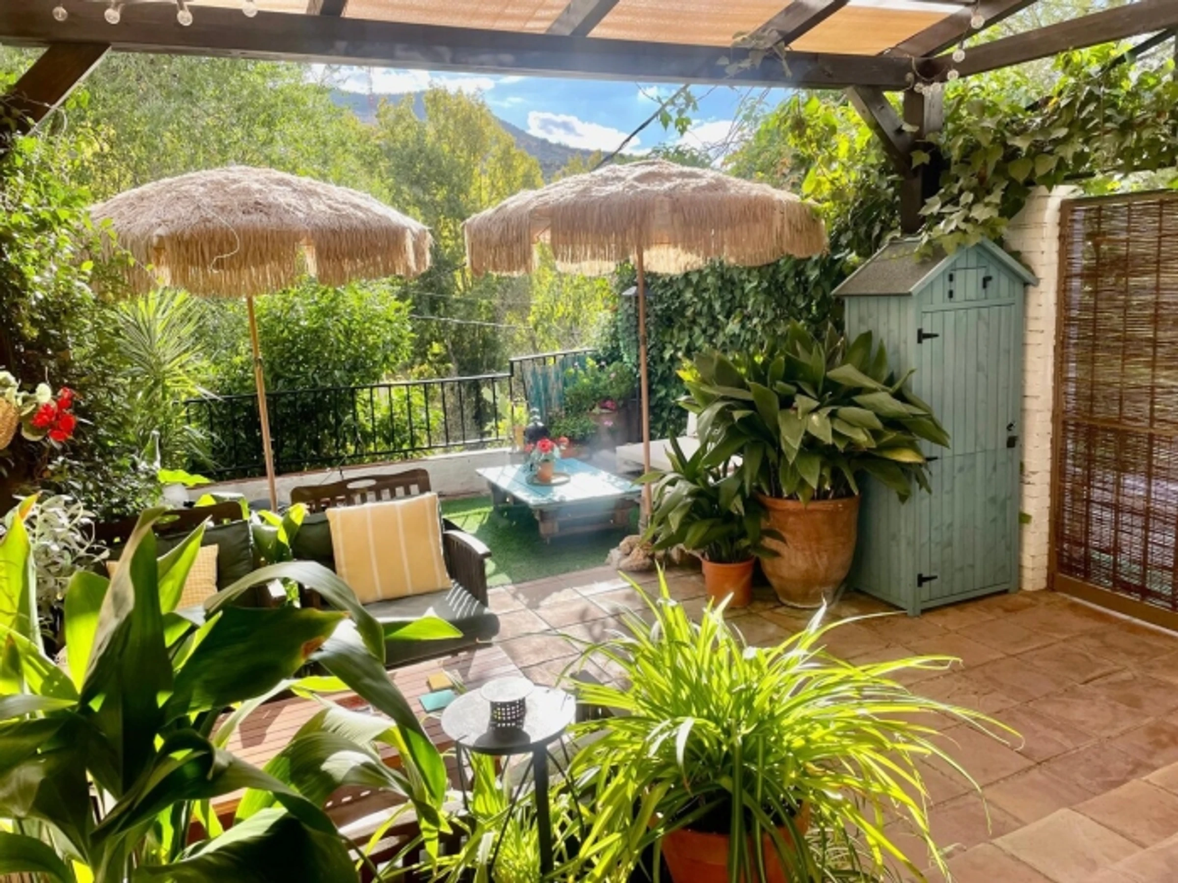 Une grande terrasse avec vue sur la nature, bercée par le chant des oiseaux, vous accueille dans notre charmant appartement de style champêtre. Dès l'entrée, une cuisine conviviale et entièrement équipée ainsi qu'une table près de la fenêtre vous invitent à savourer un café ou un thé au petit-déjeuner tout en admirant la nature, ou à vous détendre sur la terrasse sous les premiers rayons du soleil matinal. Le salon, avec sa cheminée, est idéal pour savourer un verre de vin au coin du feu en hiver. Frais et accueillant en été, il est parfait pour se détendre après une journée d'aventures dans les environs, devant une série, un bon film ou un jeu de société. Le soir venu, installez-vous confortablement sur la terrasse et laissez-vous bercer par le murmure de la rivière à la lueur des bougies. Pour vous ressourcer et poursuivre votre exploration des environs, un grand lit confortable vous offrira le repos nécessaire dans une chambre paisible qui vous plongera dans un sommeil profond jusqu'au lendemain. Dans le village (Pinos Genil), vous trouverez tout ce dont vous avez besoin : pharmacie, supermarché, primeur, boucherie, bars, restaurants avec terrasses… ou commandez votre pizza maison. Pinos Genil est un village paisible et charmant, à mi-chemin entre Grenade et la Sierra Nevada, en pleine nature. Seuls le chant des oiseaux et le murmure de la rivière Genil qui traverse le village viennent troubler le silence. Son emplacement est idéal pour la randonnée dans les environs. La Sierra Nevada se trouve à 25 km (30 min), et si vous souhaitez visiter le centre de Grenade, il n'est qu'à 11 km et ne prend pas plus de 15 minutes en voiture. Il y a également un bus du centre du village à Grenade, et vous pouvez vous garer sans problème devant la maison.