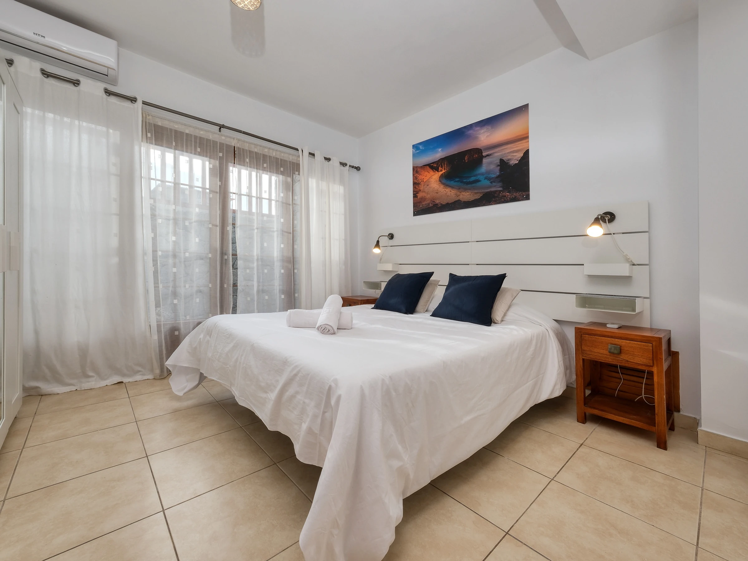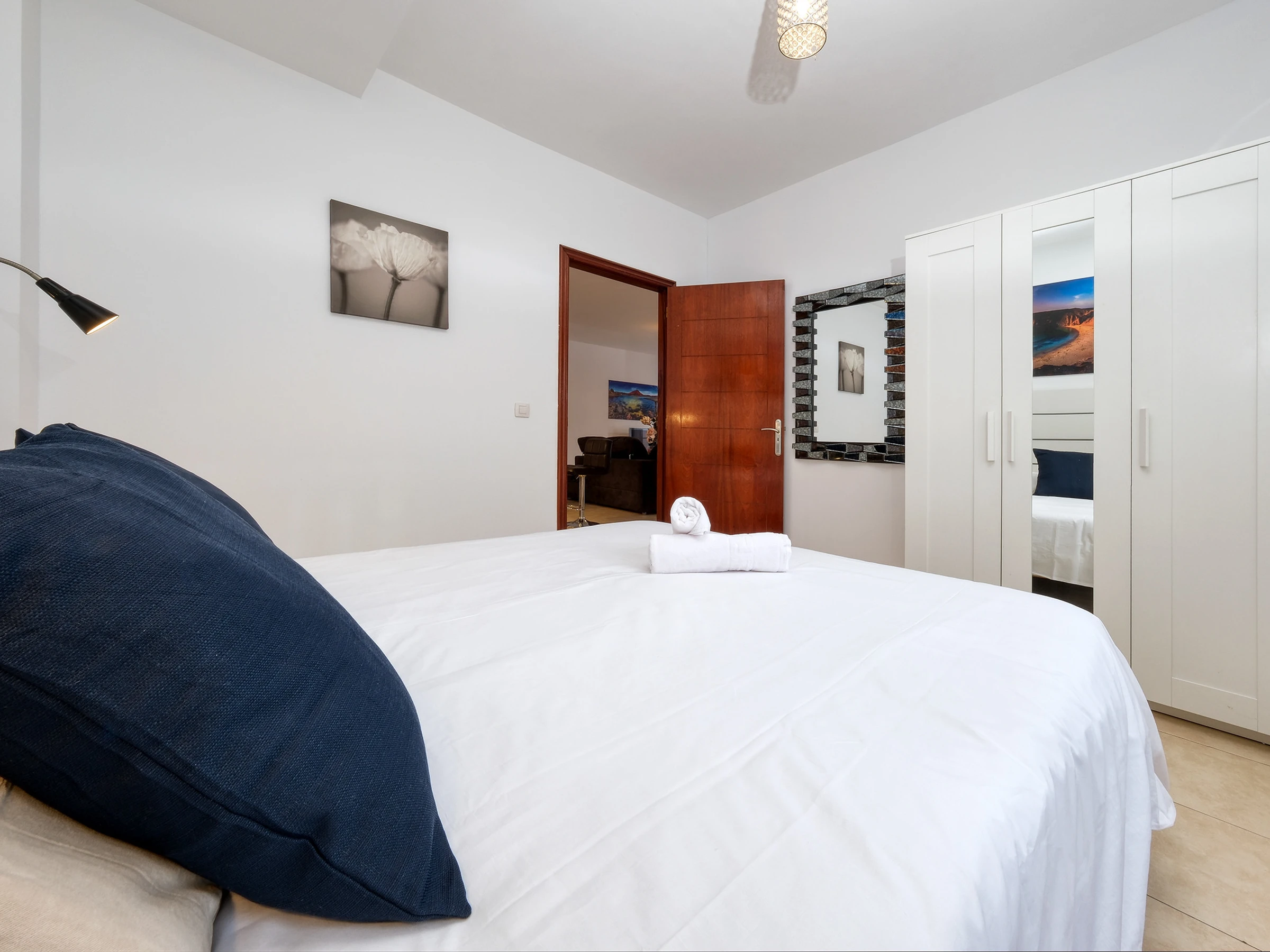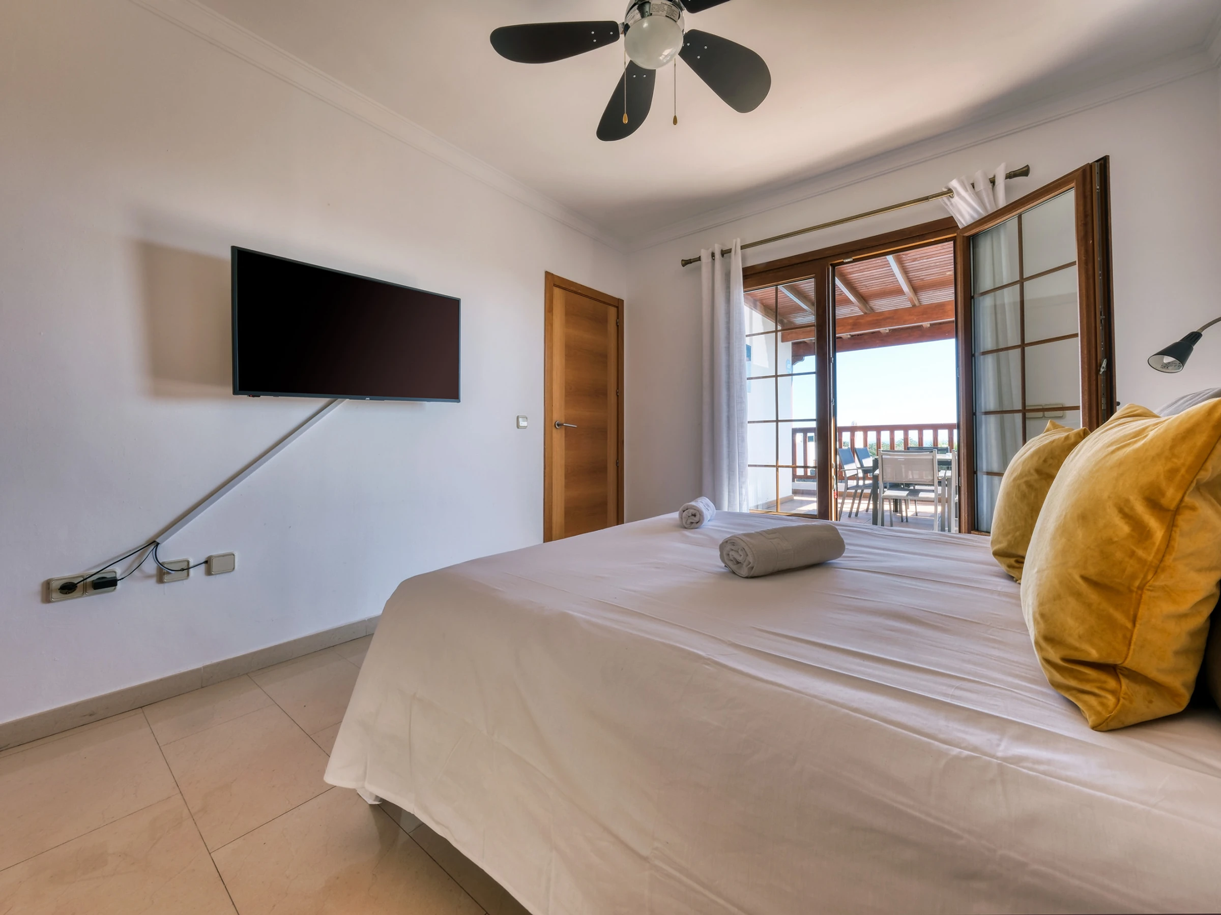 Une autre avec un lit queen-size, armoire et accès à une terrasse privée.