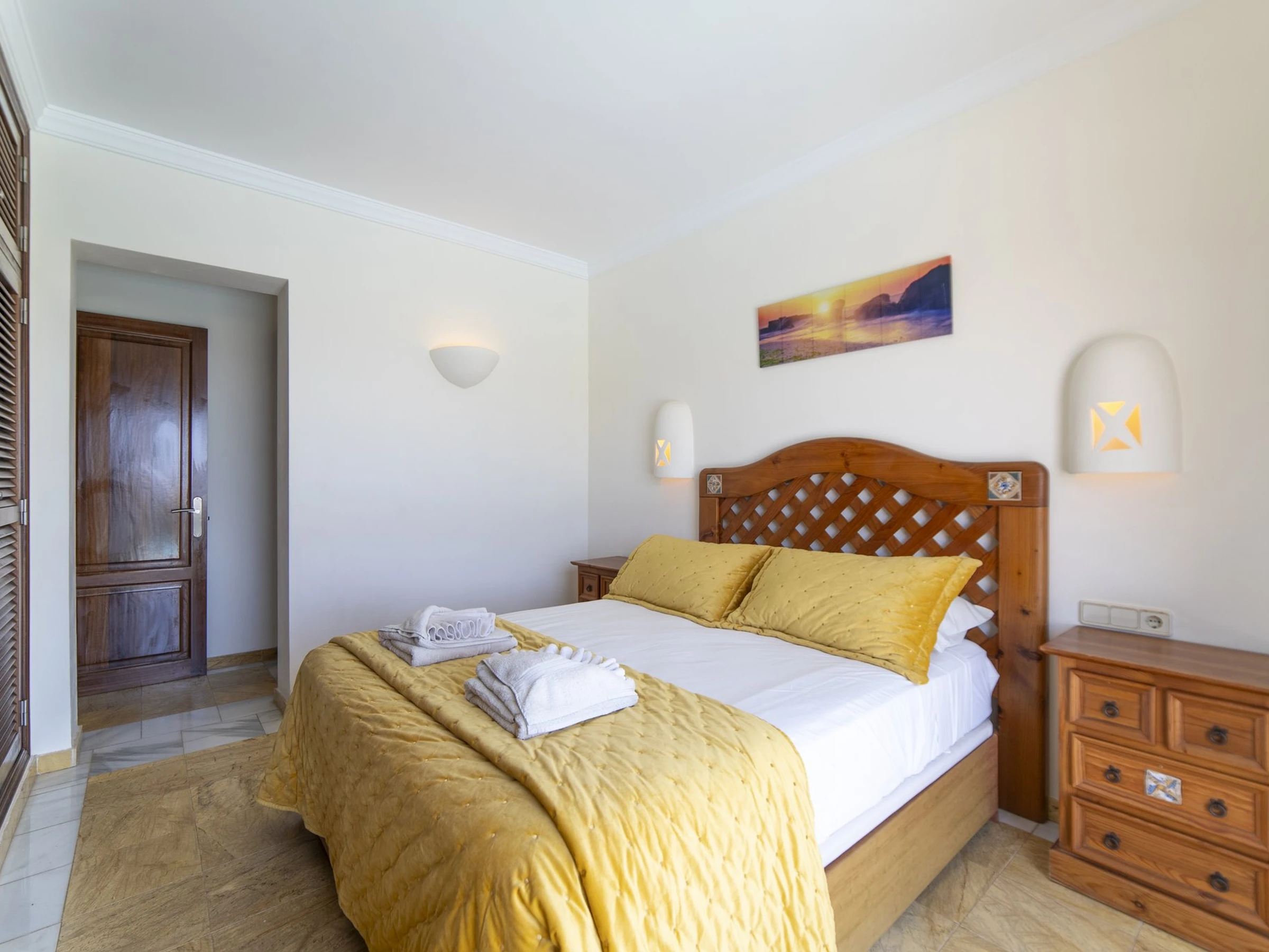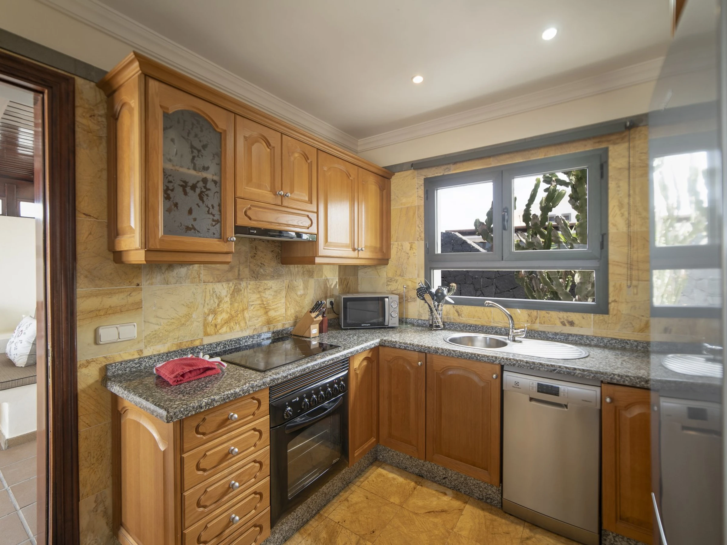 La cuisine, est équipée avec réfrigérateur, micro-ondes, four, congélateur, lave-vaisselle, cafetière, grille pain et bouilloire.