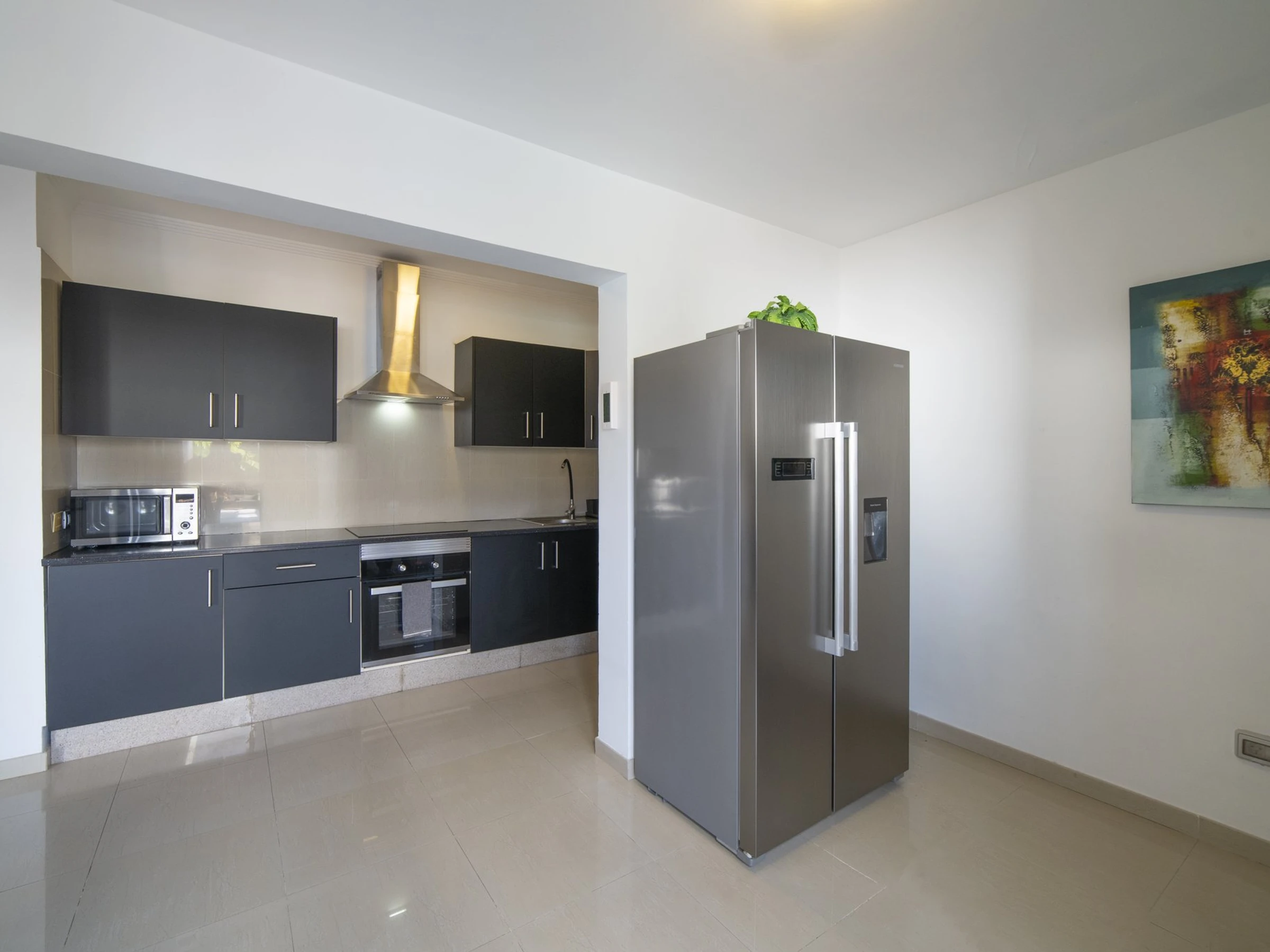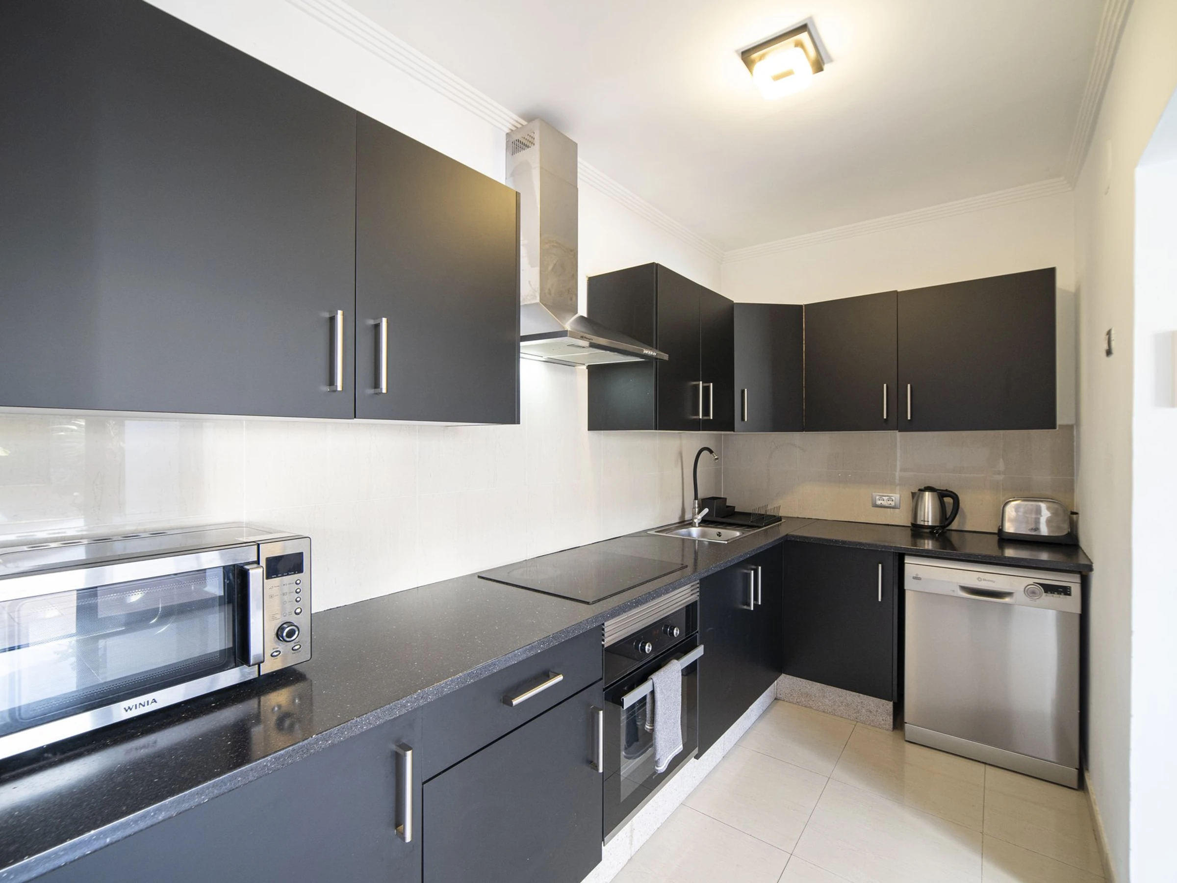 La cuisine, est équipée avec réfrigérateur, micro-ondes, four, congélateur, lave-vaisselle, cafetière et bouilloire.