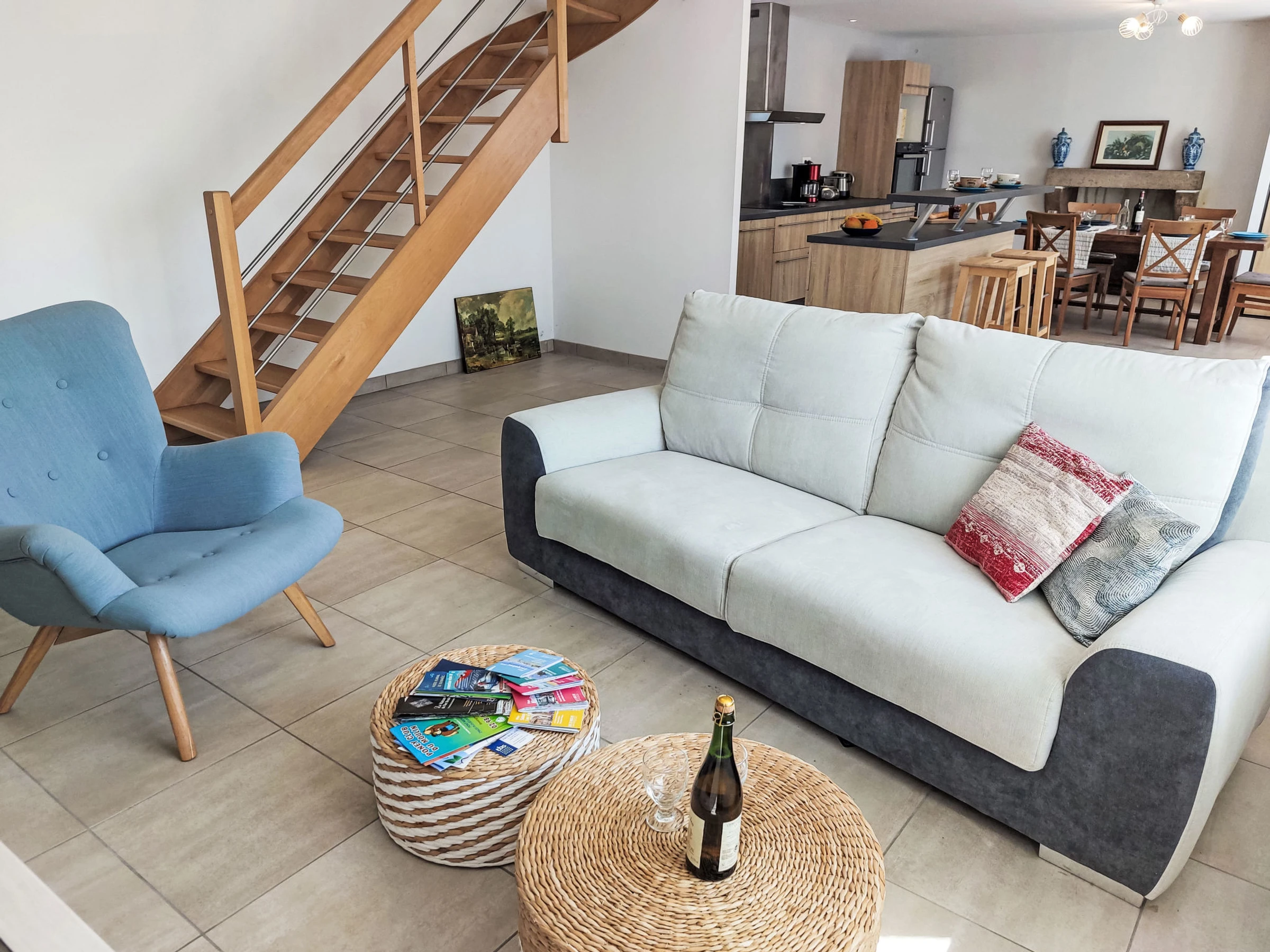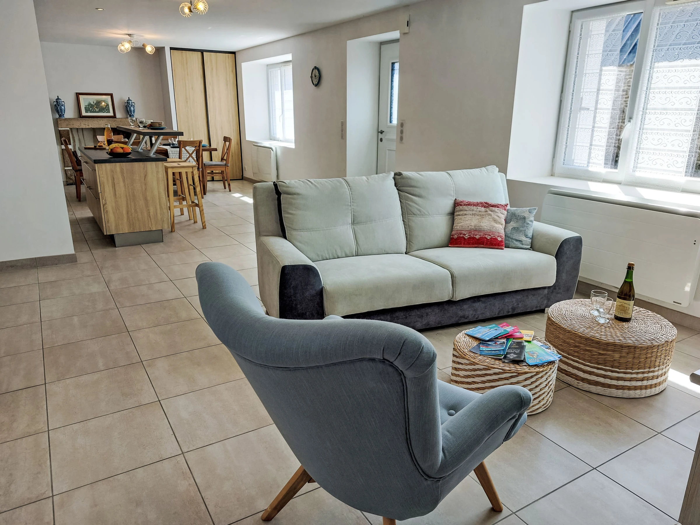 "Kerdro", ancienne ferme 5 pièces 150 m2 sur 2 niveaux. Spacieux, rénovée en 2024, aménagement agréable et plaisant: séjour 30 m2, ouvert avec TV (écran plat). Sortie sur la terrasse. 1 chambre 14 m2 avec 1 grand-lit (140 cm, longueur 190 cm). 1 chambre 24 m2 avec 2 lits (90 cm, longueur 190 cm). Grande cuisine ouverte 30 m2 (four, lave-vaisselle, 3 plaques à induction, grille-pain, bouilloire électrique, micro-ondes, congélateur, cafetière électrique) avec bar, table pour les repas. Sortie sur le jardin. Bain/douche, WC séparé. À l'étage supérieur: 1 chambre 24 m2 avec 1 grand-lit (140 cm, longueur 190 cm). 1 chambre 14 m2 avec 1 grand-lit (140 cm, longueur 190 cm). Douche, WC séparé. Chauffage électrique. A disposition: lave-linge, fer à repasser. Veuillez noter: maison non-fumeur. Maximum 1 animal/ chien autorisé. Détecteur de fumée. La répartition des lits est flexible: Il y a plus de couchages que le nombre maximum de personnes admis dans la location. Ce nombre maximum doit néanmoins être respecté. Annonce d'un particulier (art 155, IV du CGI).