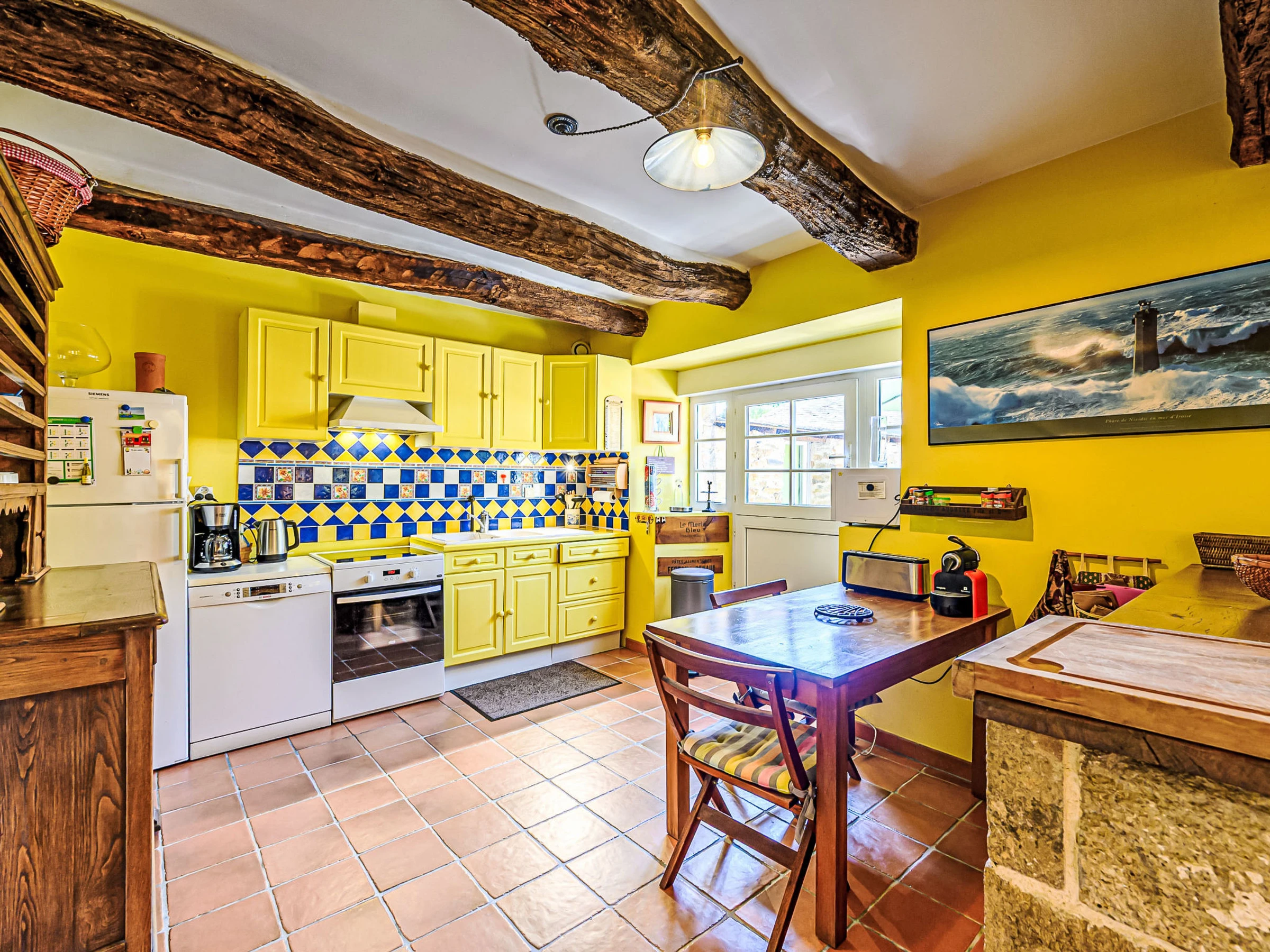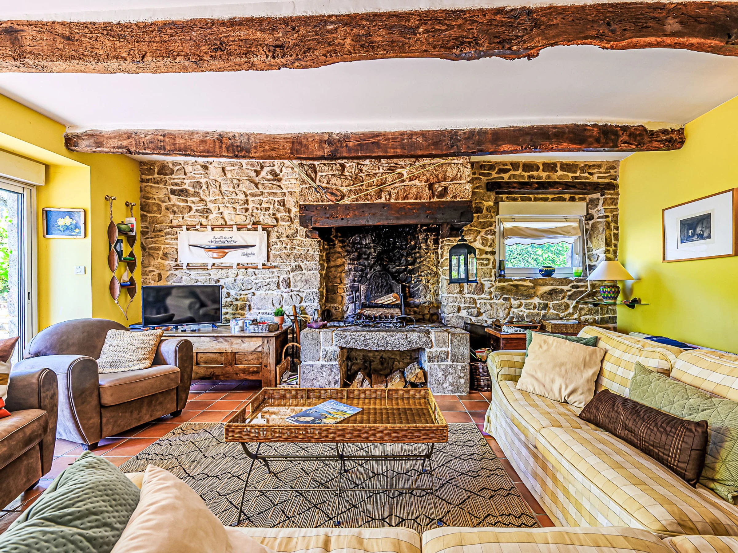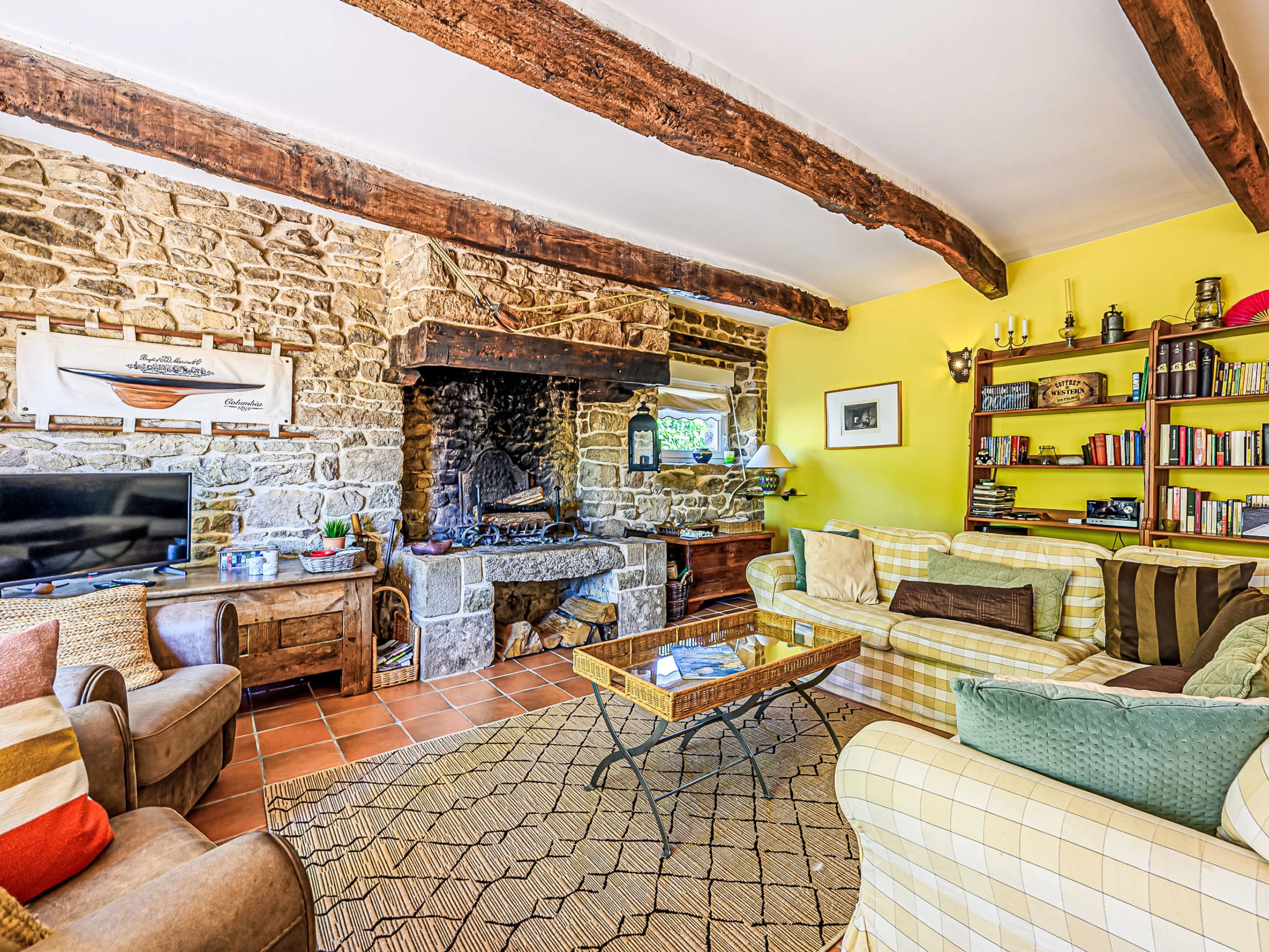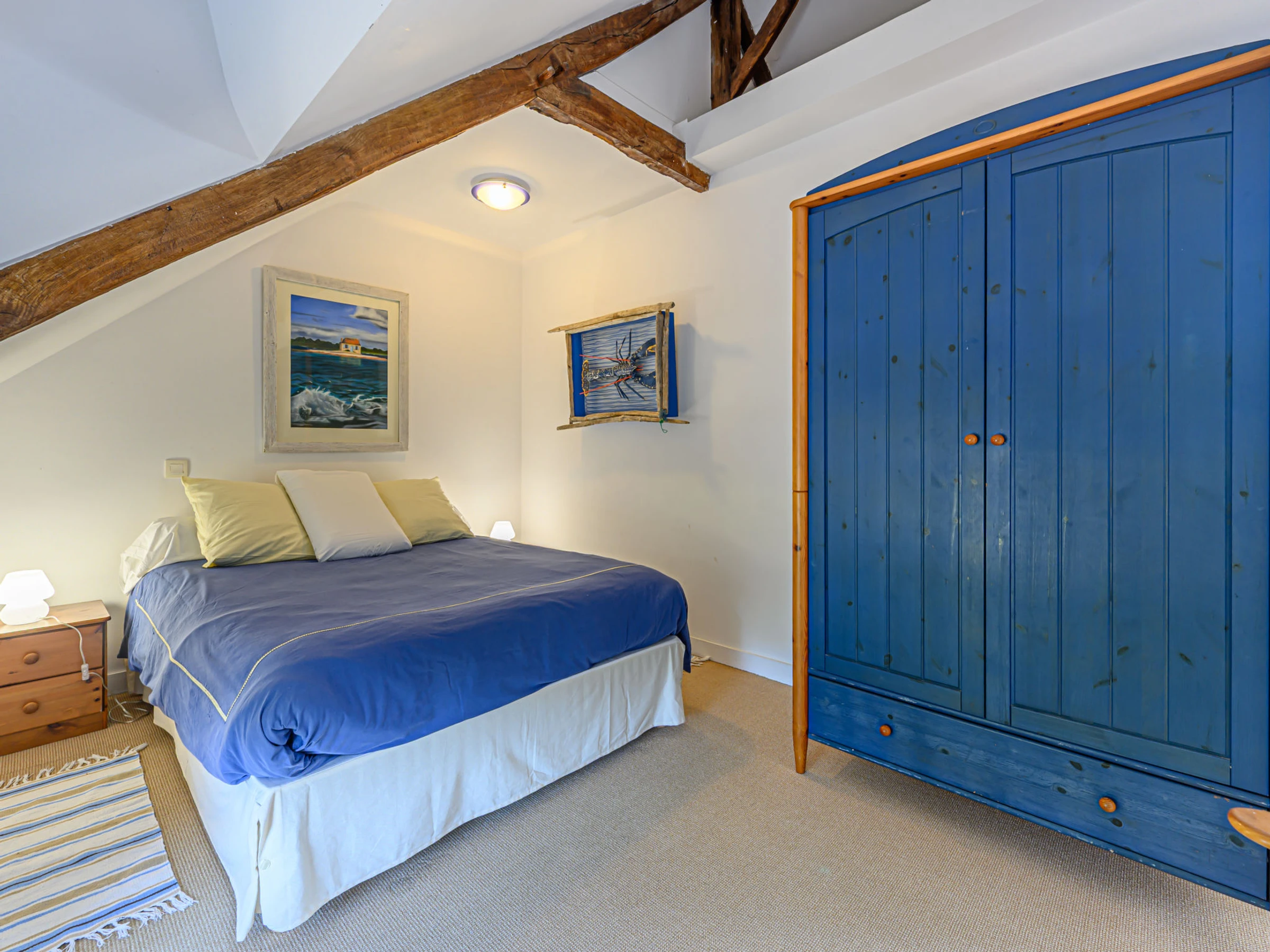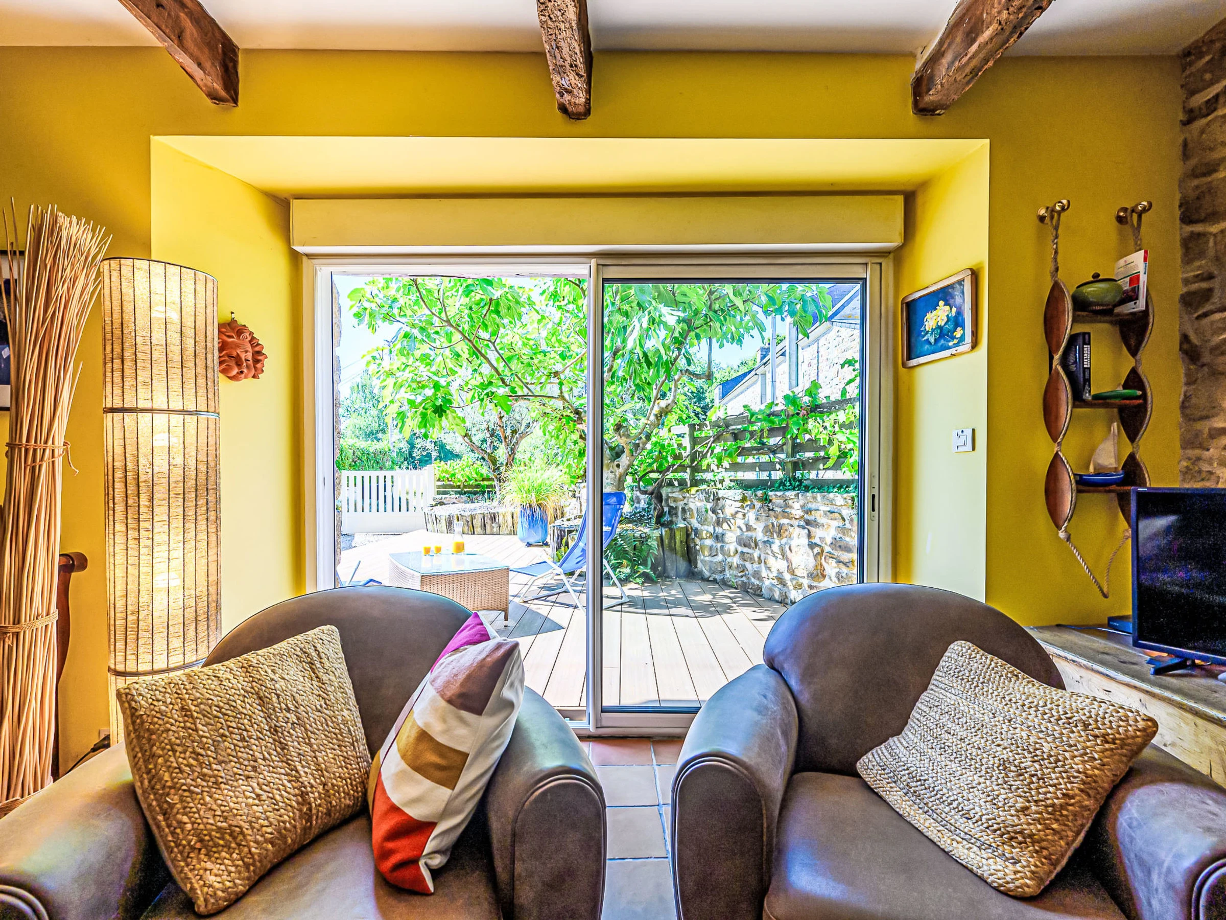 "Maison Cromlech", maison 5 pièces 138 m2. Aménagement confortable: séjour/salle à manger avec TV (écran plat). Sortie sur la terrasse. Cuisine (4 plaques de cuisson, four, lave-vaisselle, grille-pain, bouilloire électrique, micro-ondes, congélateur, cafetière électrique). WC séparé. À l'étage supérieur: 1 chambre avec 1 grand-lit (1 x 160 cm, longueur 190 cm), douche. 1 chambre avec 1 grand-lit (1 x 160 cm, longueur 190 cm). 1 chambre avec 1 x 2 lits superposés (90 cm, longueur 190 cm). 1 chambre avec 1 grand-lit (1 x 140 cm, longueur 190 cm). Bain/douche, WC séparé. Chauffage. Grande terrasse 110 m2. Meubles de terrasse, barbecue. A disposition: lave-linge, sèche-linge, fer à repasser, sèche-cheveux. Internet (Connexion WIFI, gratuit). Place de parking. Veuillez noter: logement non-fumeur. Détecteur de fumée. Annonce d'un particulier (art 155, IV du CGI).