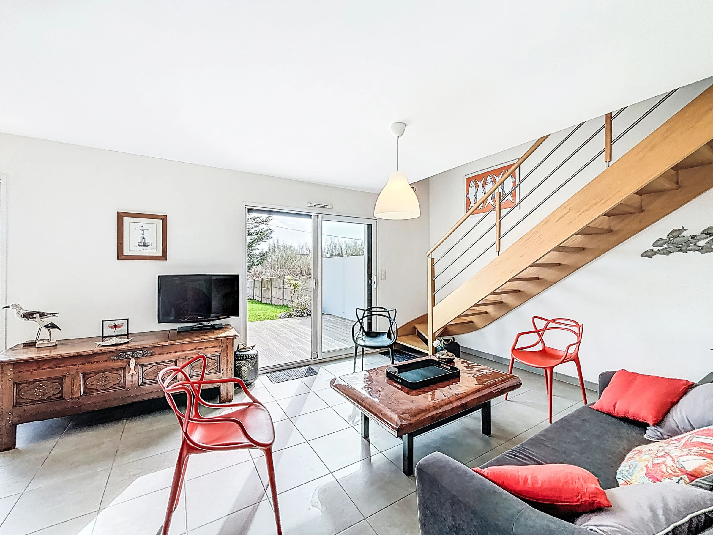"Maison de la Ria", maison 3 pièces 100 m2. Aménagement confortable: séjour/salle à manger avec TV (écran plat). Sortie sur la terrasse. Cuisine (four, lave-vaisselle, 4 plaques vitrocéramiques, grille-pain, bouilloire électrique, micro-ondes, congélateur, cafetière électrique). WC séparé. À l'étage supérieur: 1 chambre avec 1 grand-lit (1 x 140 cm, longueur 190 cm). 1 chambre avec 2 lits (90 cm, longueur 190 cm). Bain/WC. Terrasse, jardin. Meubles de terrasse, barbecue électrique. Vue sur la mer. A disposition: lave-linge. Internet (Connexion WIFI, gratuit). Place de parking. Veuillez noter: logement non-fumeur. Détecteur de fumée. Annonce d'un particulier (art 155, IV du CGI). [hidden]