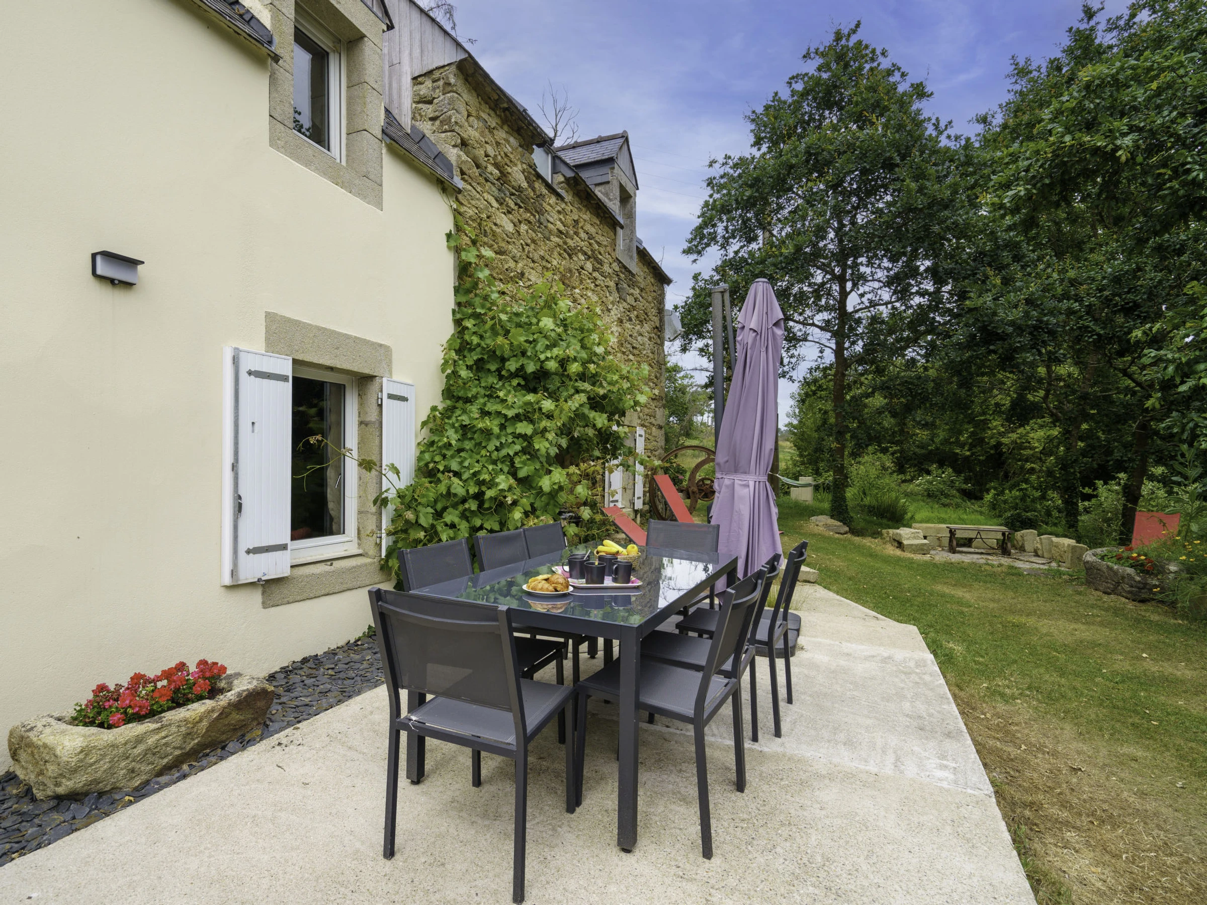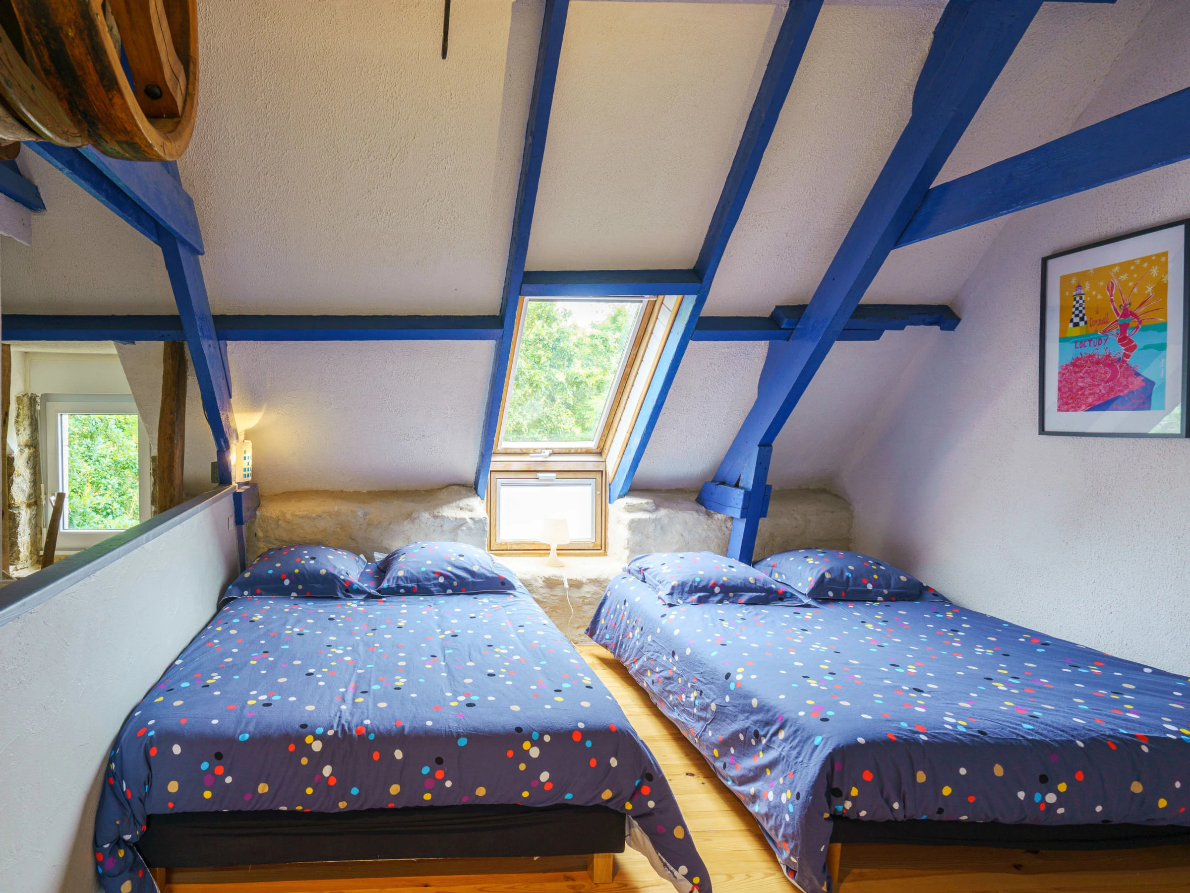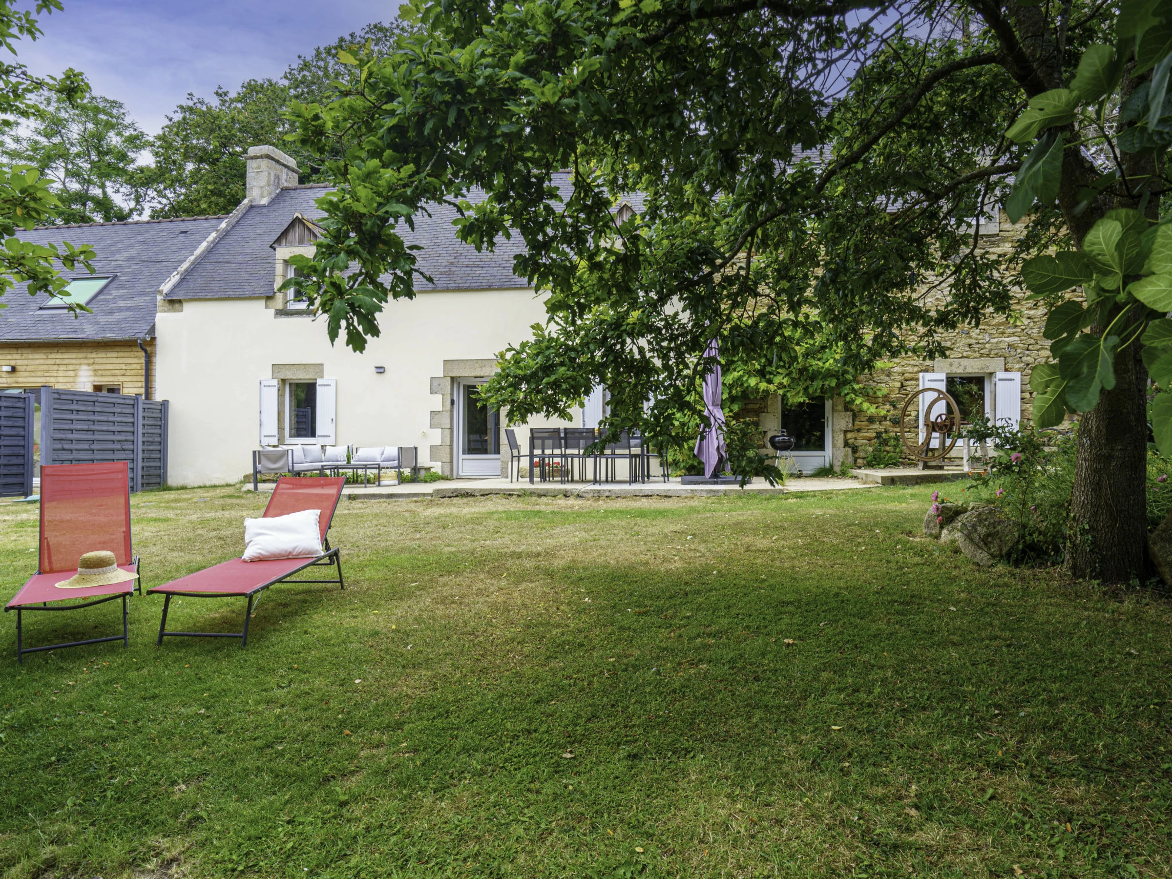 Ancien moulin accueillant "La Torche", de 2 étages, renové en 2022, environné par les arbres et champs. En bordure de la localité, à 4 km du centre de Plovan, à 4 km de la mer, à 4 km de la plage, à 20 m du ruisseau, dans la verdure. En commun: terrain à l'état naturel 2 ha, pelouse. A usage privé: jardin 1'500 m2 (pas clôturé) pelouse, place de parking (pour 3 voitures). Magasin d'alimentation 6 km, restaurant 4 km, arrêt de bus 4 km, plage de sable 4 km. Ecole de surf 4 km. Attractions à proximité: Penmarc'h, La Torche 19 km, Pont l'Abbé 12 km, Audierne 23 km, Douarnenez 19 km, pointe du Raz 35 km, Quimper 26 km. Région de randonnées: GR 34, Baie d'Audierne, Cap Sizun. Veuillez noter: D’autres appartements sont également proposés à la location dans cette maison de vacances. La propriété référencée FR2948.601.1 est située sur le même terrain.