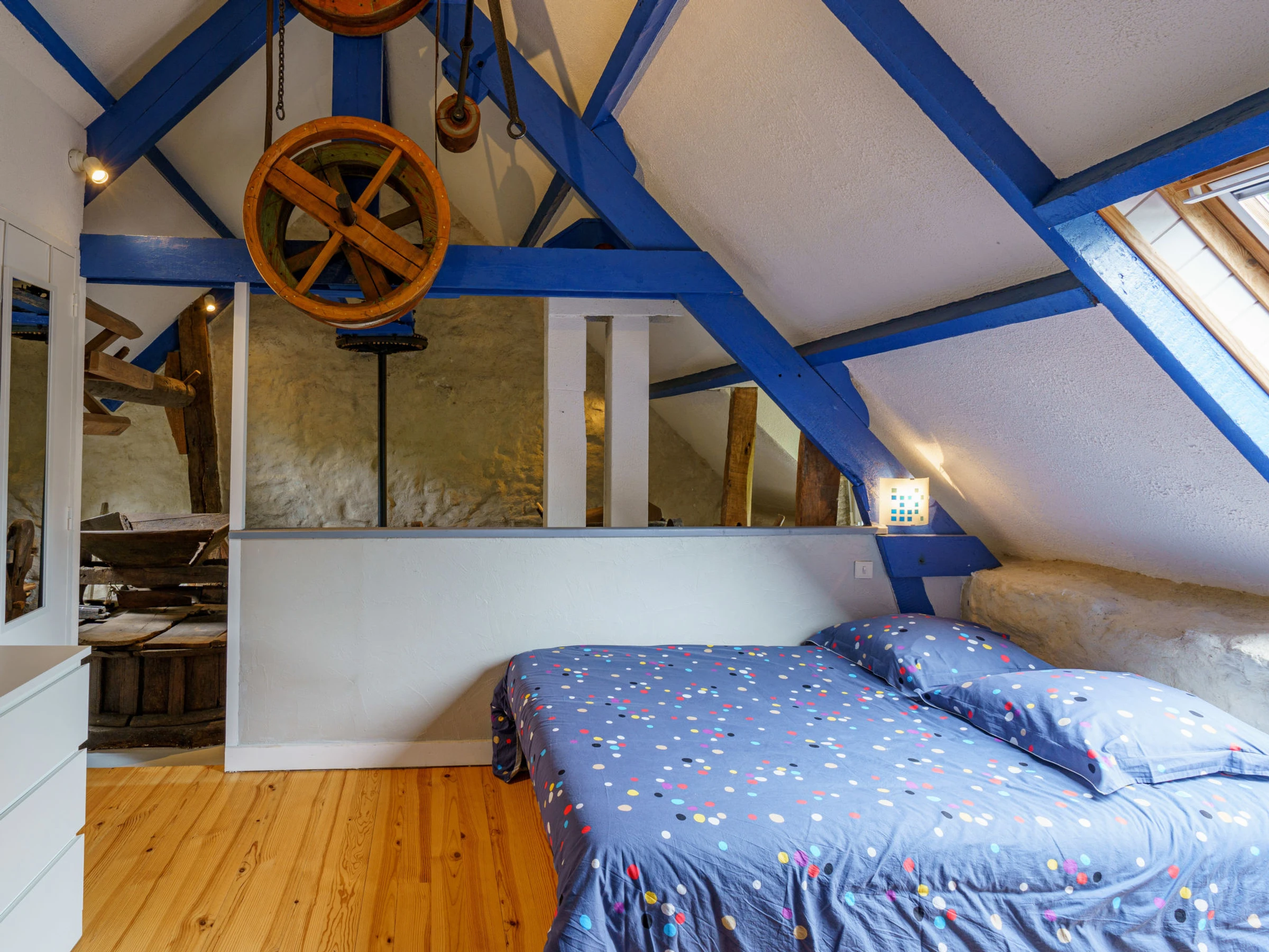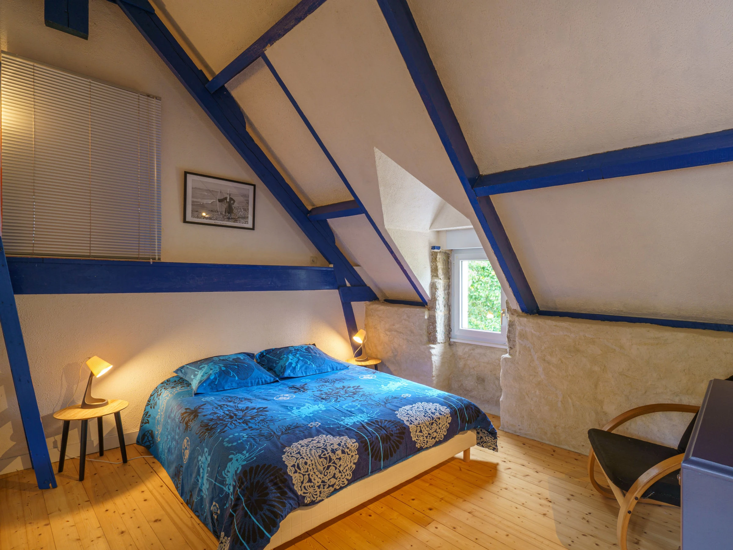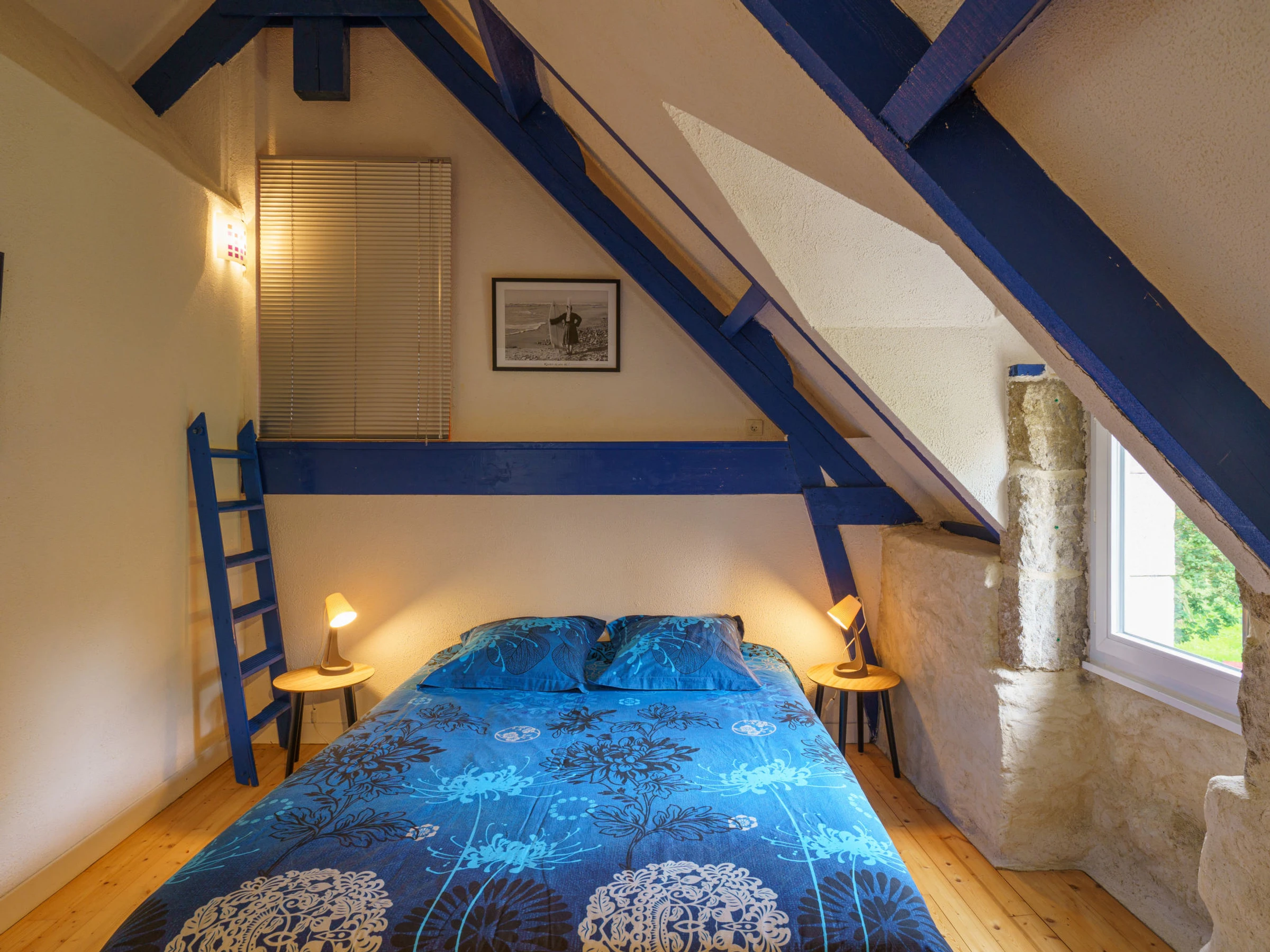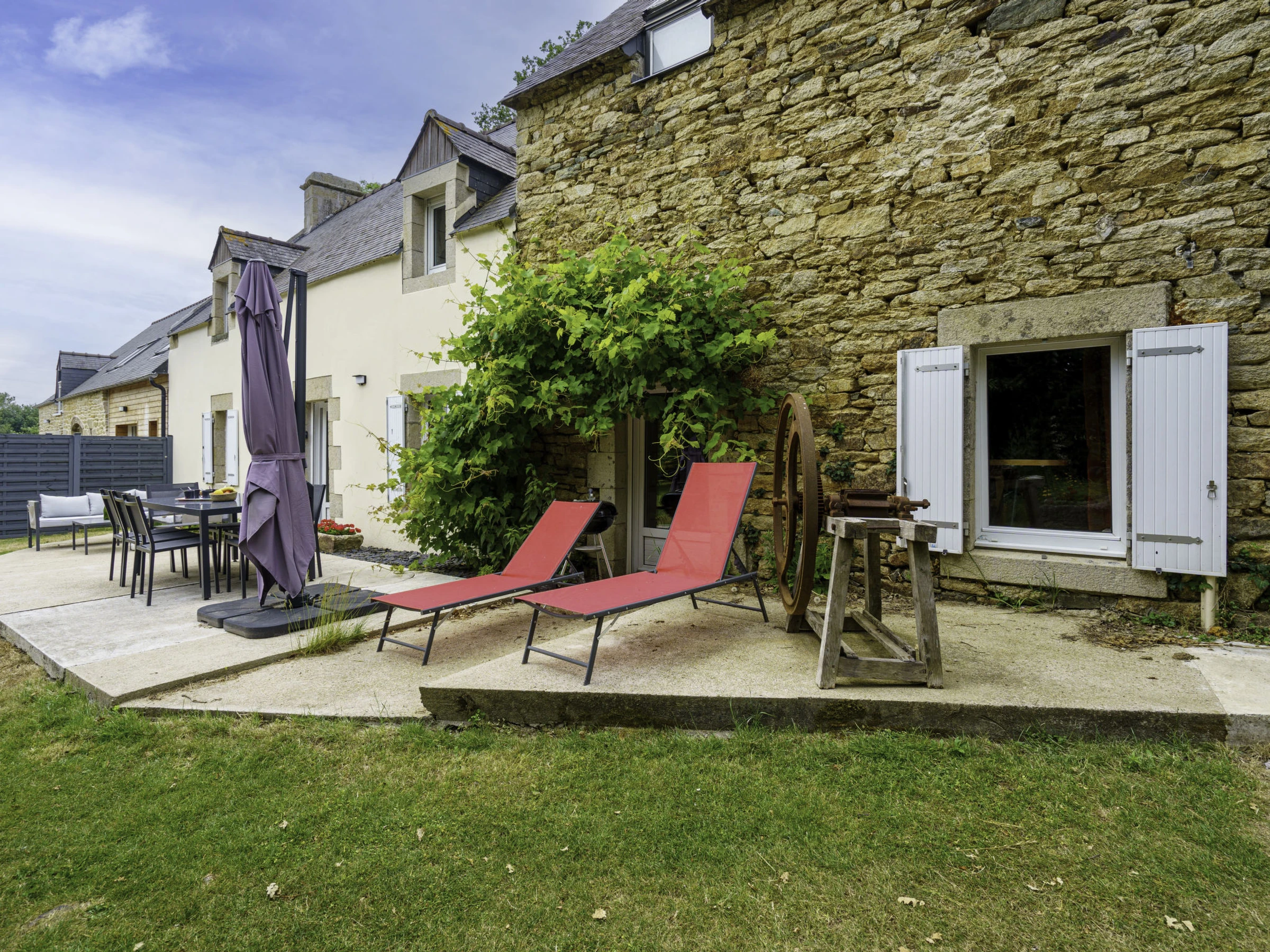 Ancien moulin accueillant "La Torche", de 2 étages, renové en 2022, environné par les arbres et champs. En bordure de la localité, à 4 km du centre de Plovan, à 4 km de la mer, à 4 km de la plage, à 20 m du ruisseau, dans la verdure. En commun: terrain à l'état naturel 2 ha, pelouse. A usage privé: jardin 1'500 m2 (pas clôturé) pelouse, place de parking (pour 3 voitures). Magasin d'alimentation 6 km, restaurant 4 km, arrêt de bus 4 km, plage de sable 4 km. Ecole de surf 4 km. Attractions à proximité: Penmarc'h, La Torche 19 km, Pont l'Abbé 12 km, Audierne 23 km, Douarnenez 19 km, pointe du Raz 35 km, Quimper 26 km. Région de randonnées: GR 34, Baie d'Audierne, Cap Sizun. Veuillez noter: D’autres appartements sont également proposés à la location dans cette maison de vacances. La propriété référencée FR2948.601.1 est située sur le même terrain.