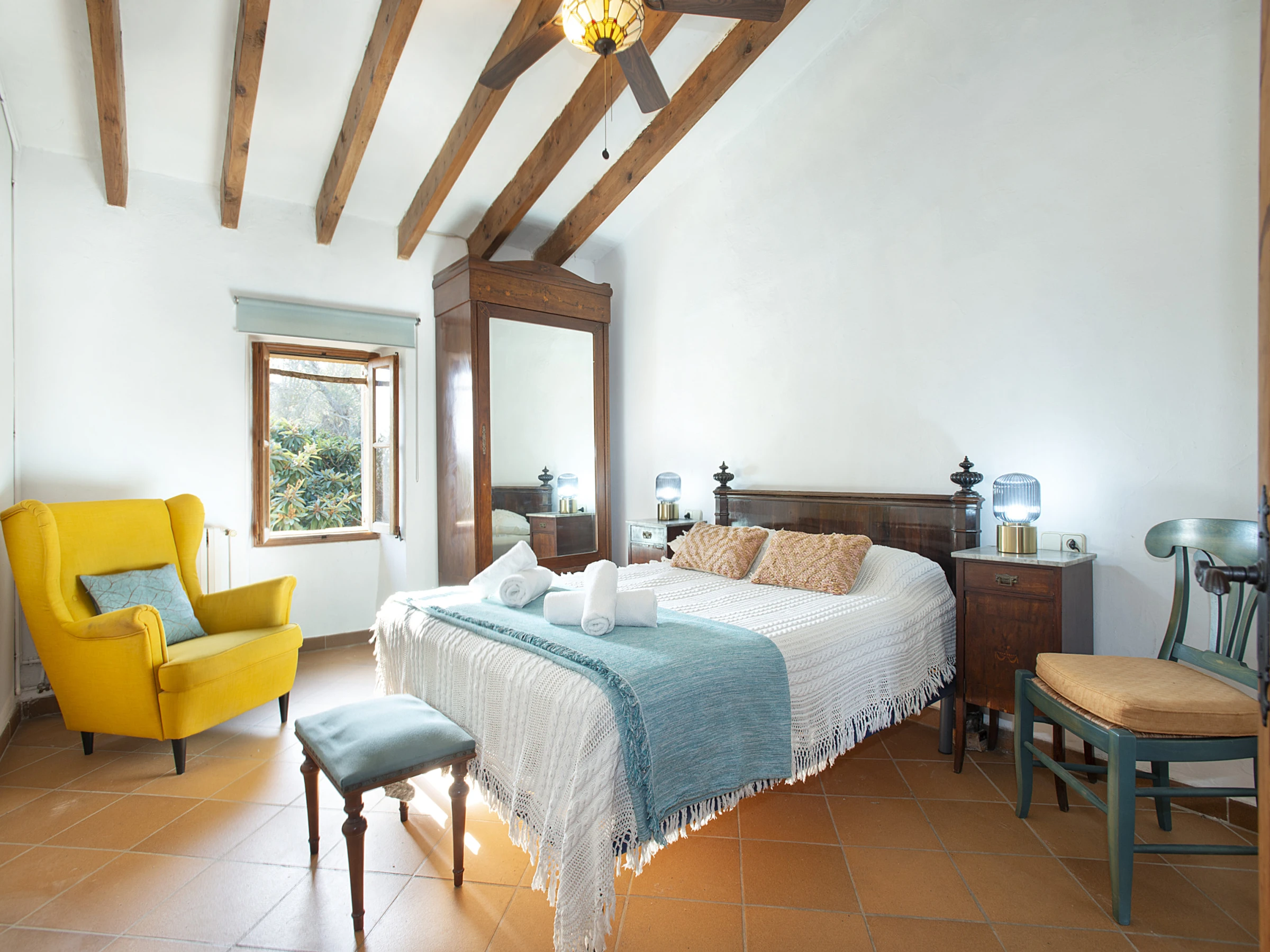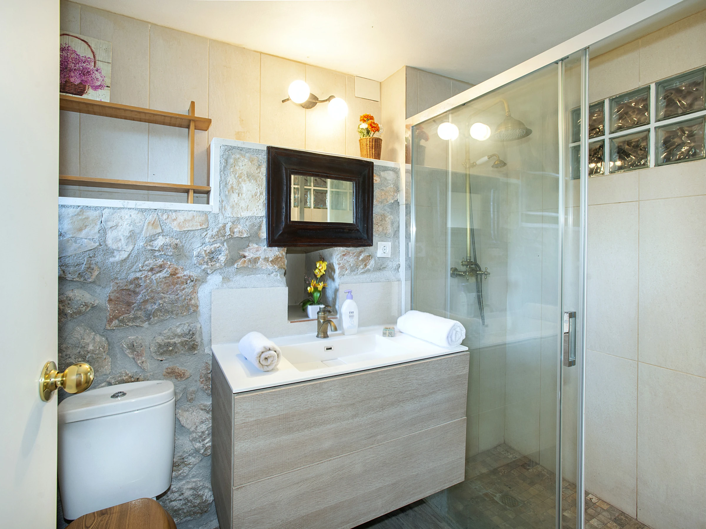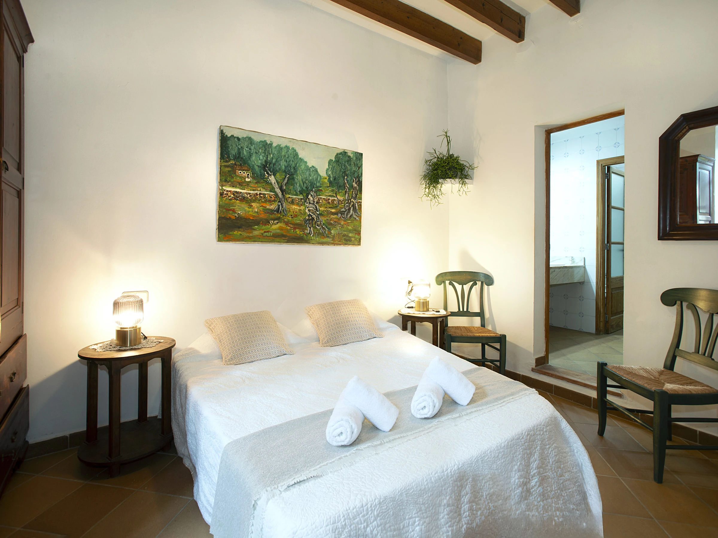 Au premier étage se trouvent les trois autres chambres : deux doubles et une avec deux lits simples, décorées avec la pierre d'origine de la maison. Toutes les chambres ont vue sur le terrain de la propriété et les montagnes environnantes. Il y a une salle de bain complète avec accès depuis l'une des chambres doubles et aussi depuis le salon. Cette salle de bain est partagée par tout l'étage.