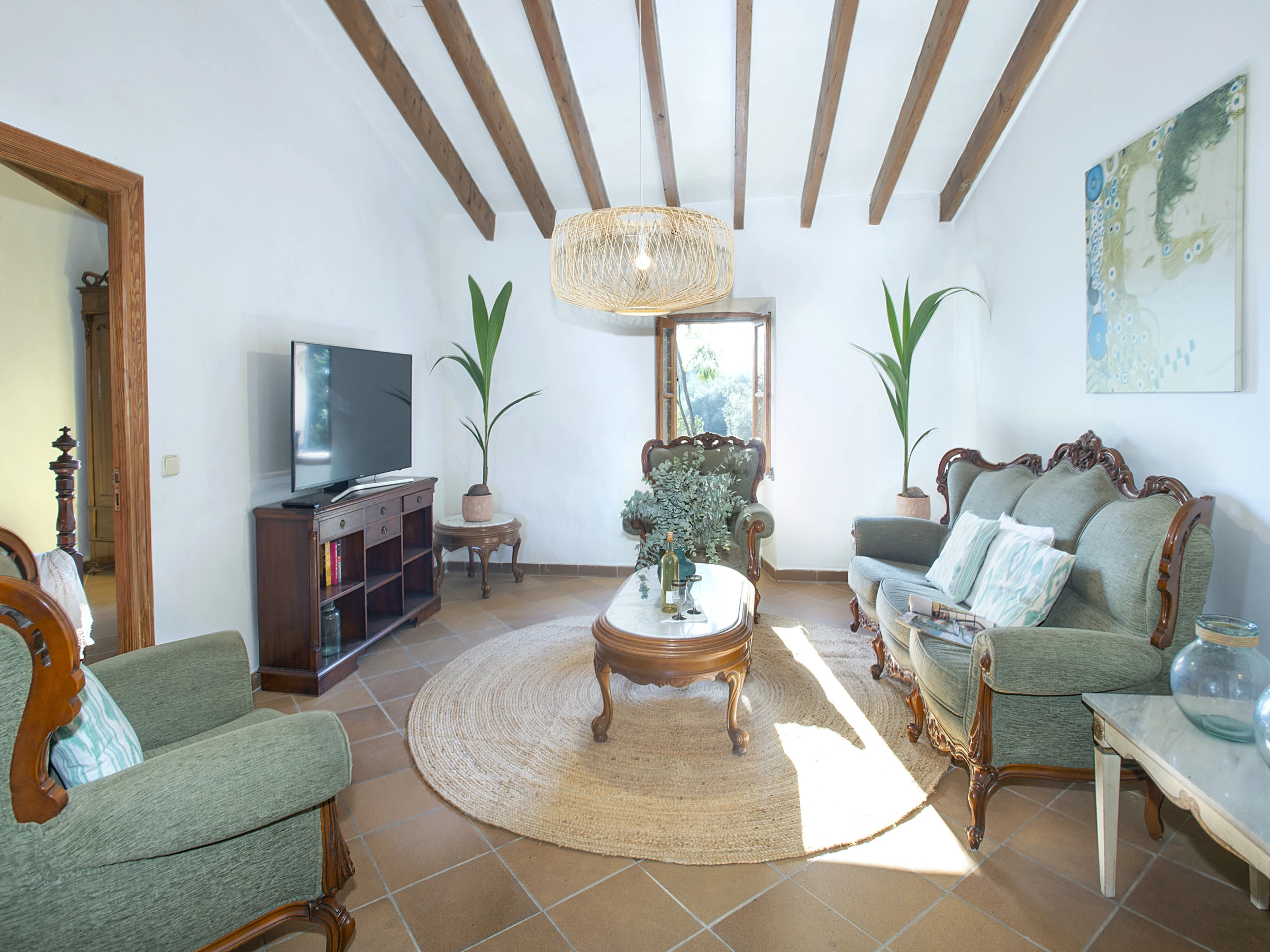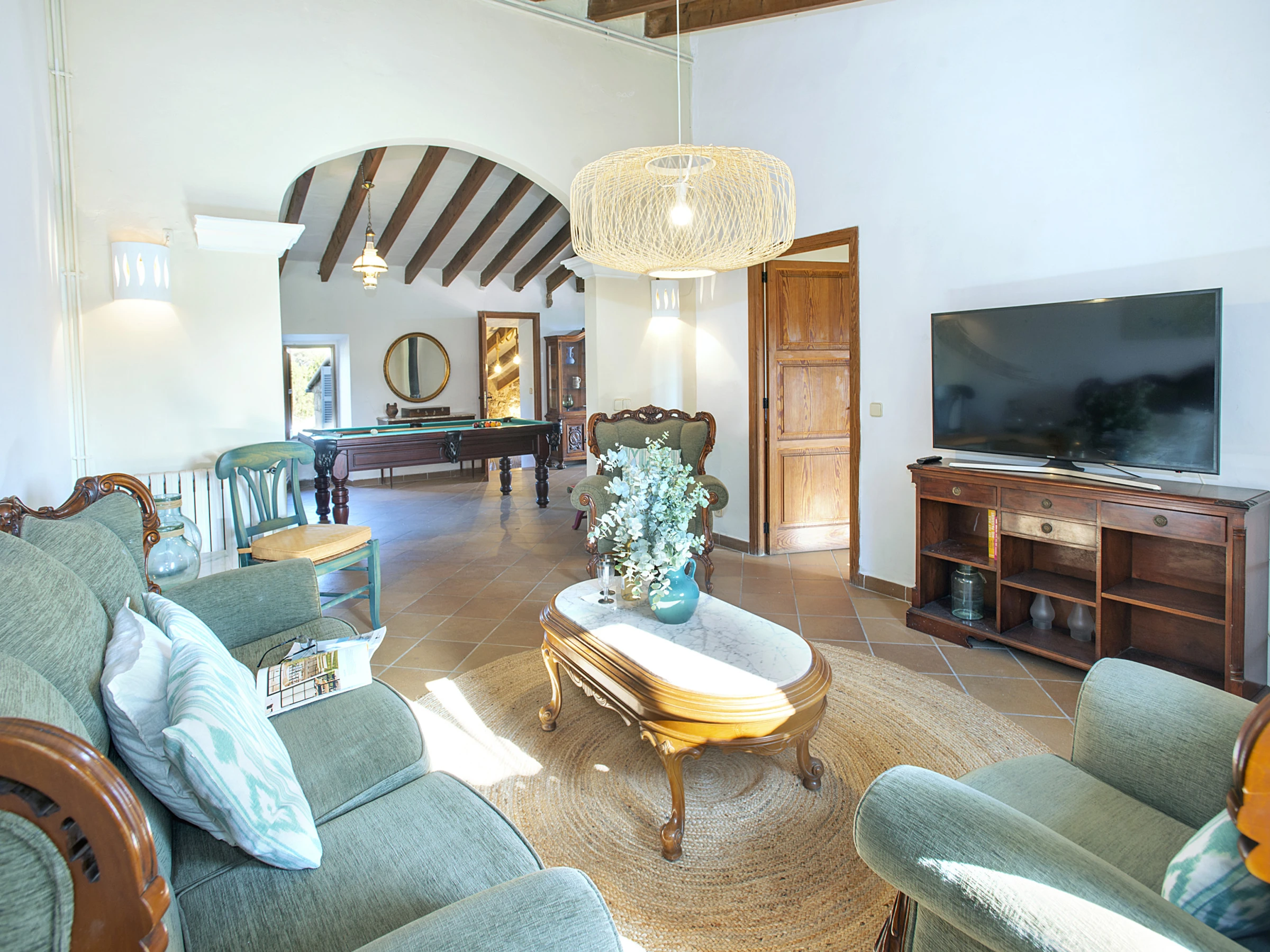 À côté de cet espace, il y a un autre salon avec des canapés d'époque confortables, idéal pour regarder la télévision. La villa offre également le Wi-Fi dans toutes ses zones pour rester connecté.