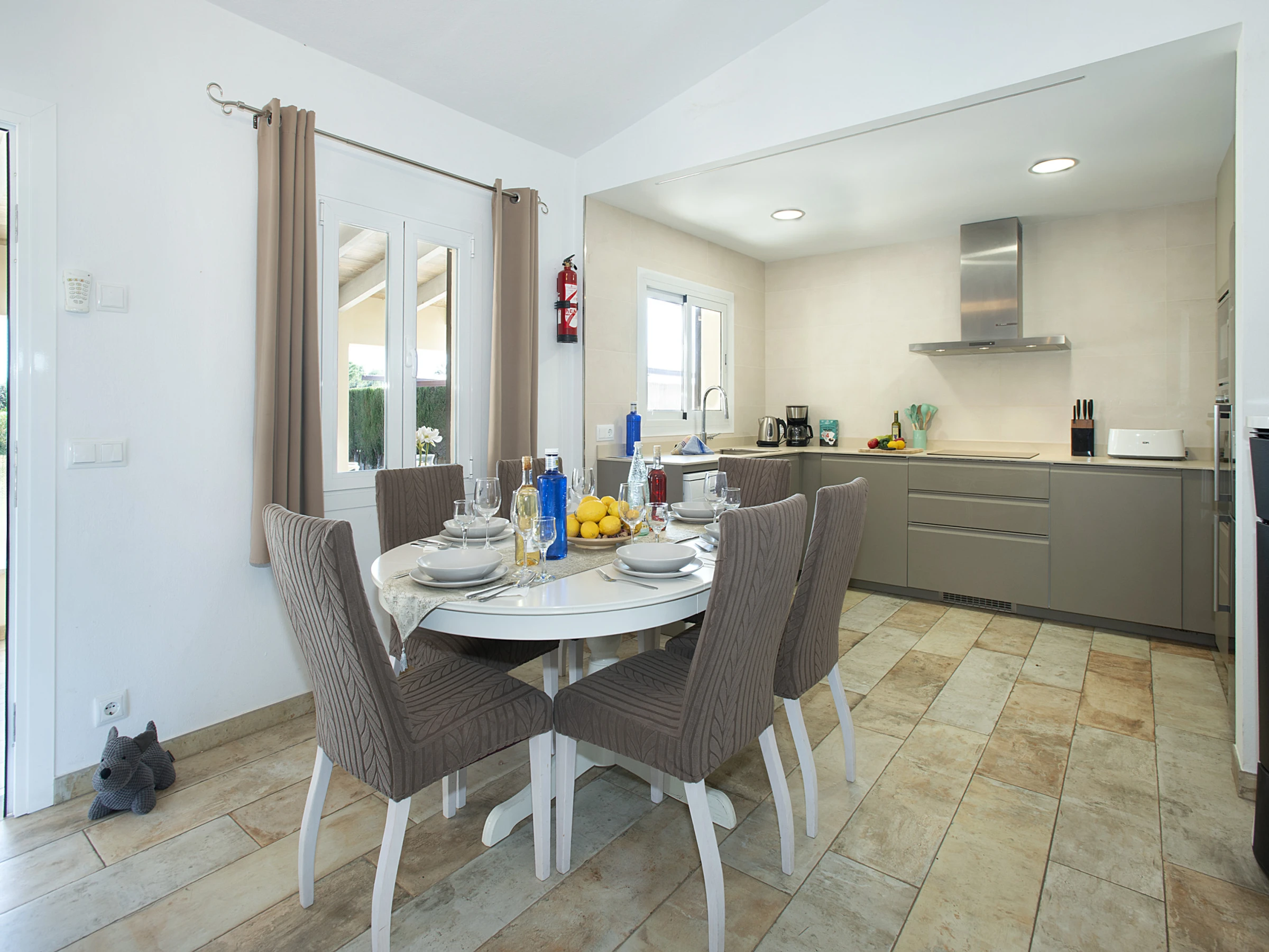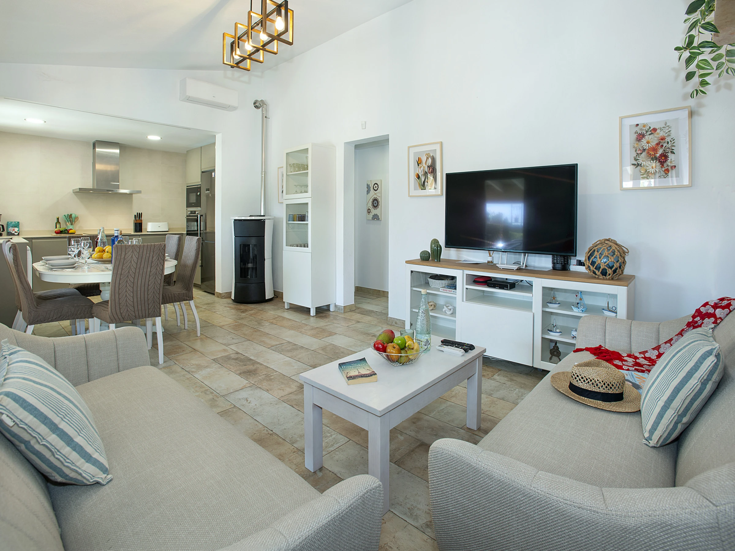 La maison est conçue pour profiter au maximum de la lumière naturelle. Le salon-salle à manger, confortable pour partager des repas ou se détendre, s’ouvre sur le jardin et conserve une atmosphère lumineuse. Le wifi gratuit est disponible pour rester connecté lorsque nécessaire.