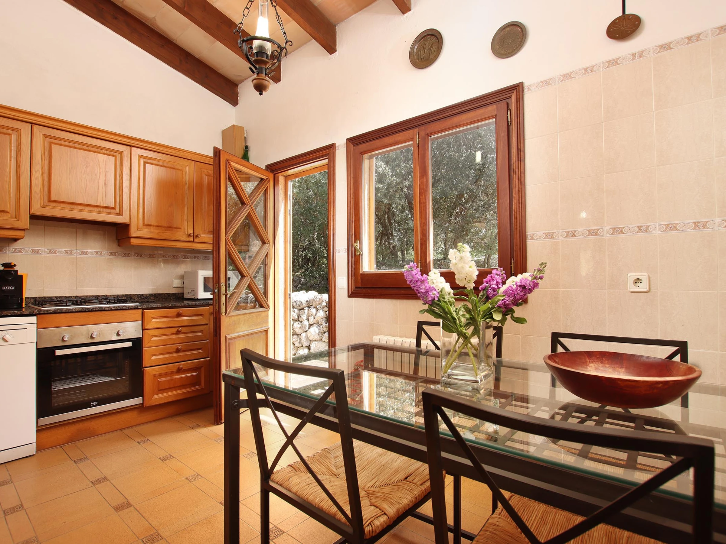 La cuisine indépendante, est équipée avec réfrigérateur, micro-ondes, four, congelateur, lave-linge, lave-vaisselle, vaisselle/couvert, ustensiles/cuisine, cafetière, grille pain et bouilloire.
