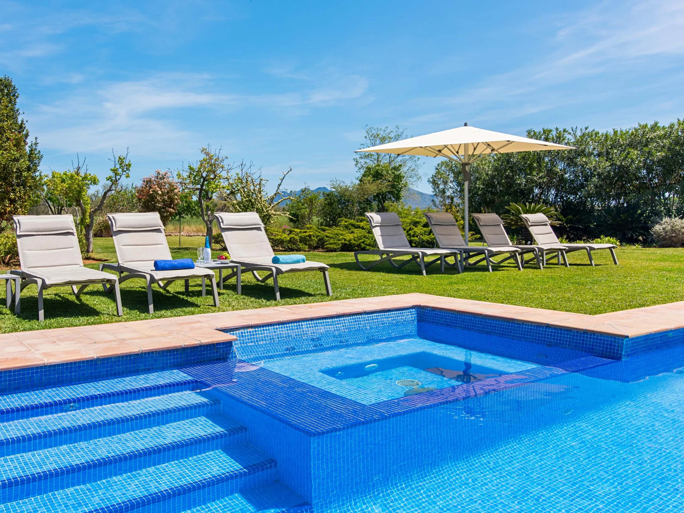 Lorsque vous aurez besoin d'un rafraîchissement, vous pourrez profiter de la piscine privée impressionnante de la villa. De plus, cette piscine dispose d'un jacuzzi intégré où vous pourrez vous détendre.