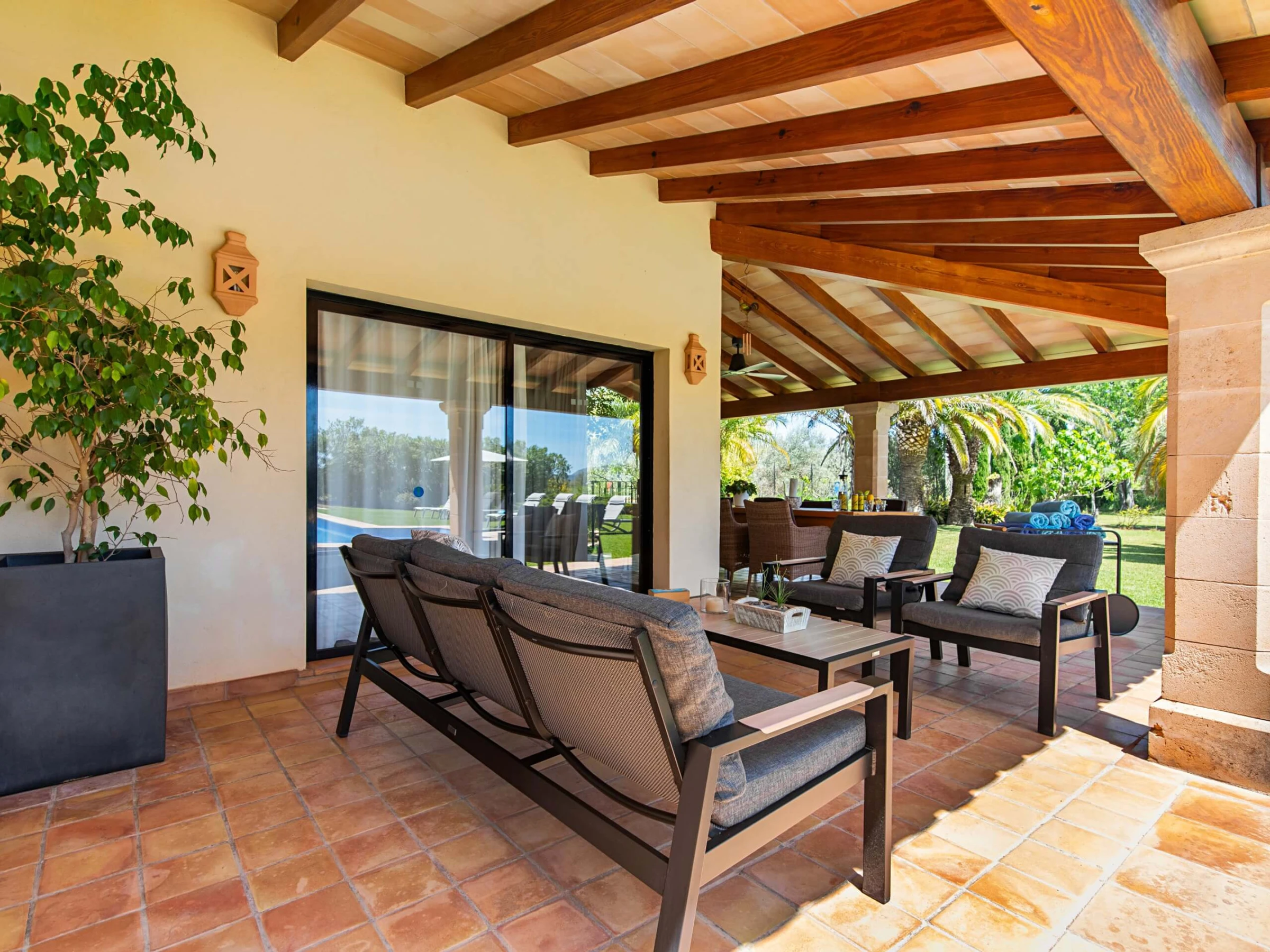 Située dans un environnement privilégié, cette villa offre intimité et tranquillité, loin de l'agitation de la ville, mais en même temps, proche de tous les services dont vous pourriez avoir besoin. En quelques minutes en voiture, vous serez sur les plages de Puerto de Pollensa, Cala San Vicente et Formentor, où vous pourrez profiter de la mer, bronzer et faire de longues promenades. Elle est également proche du charmant village de Pollensa, connu pour son charme historique et sa riche culture. Le village compte de nombreuses galeries d'art, musées, restaurants et boutiques qui valent le détour.