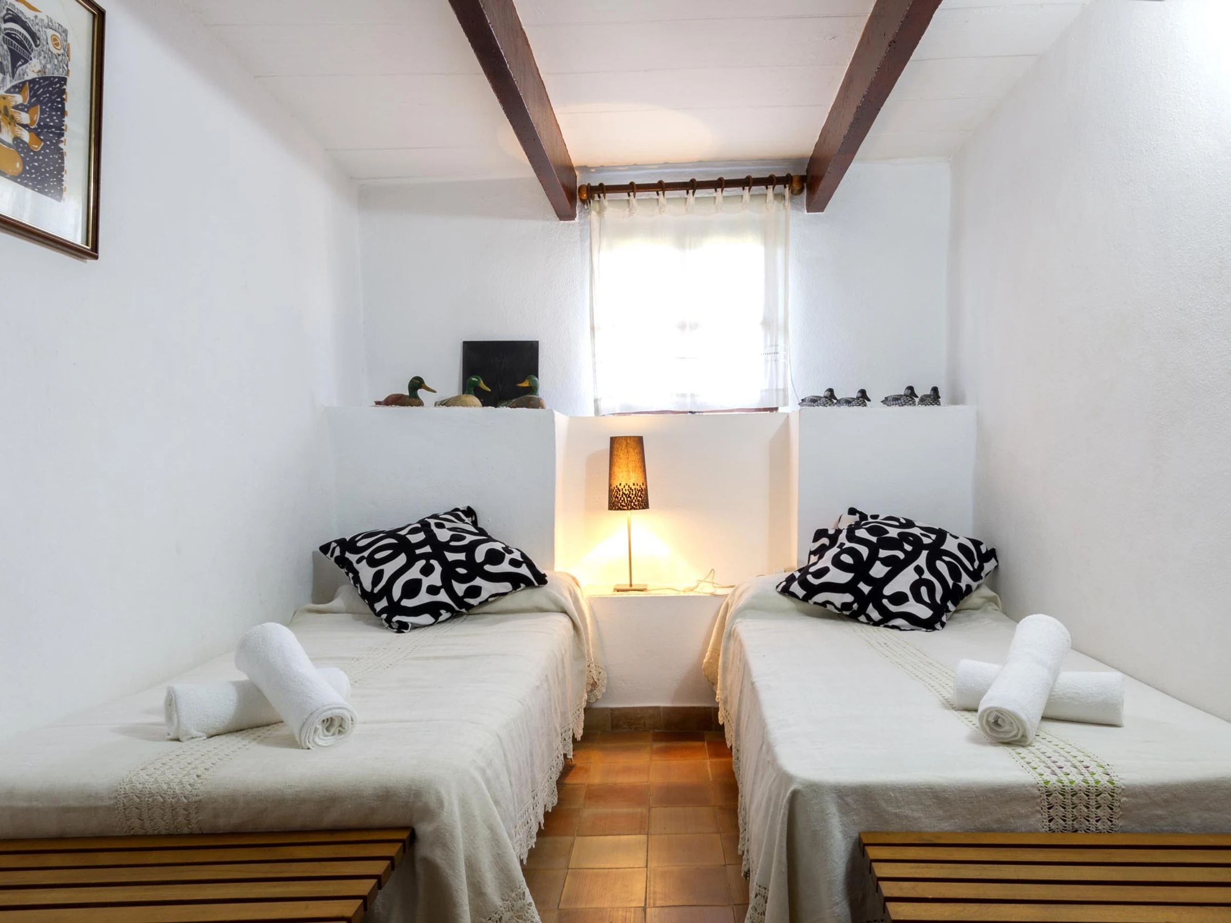 Les chambres se trouvent à l\'étage supérieur. Il y a un total de 4 chambres : 1 double, deux chambres twin et une chambre simple, toutes climatisées. Deux salles de bain complètent cet étage, dont une en suite. L\'une des chambres twin peut être convertie en double en utilisant un surmatelas, toujours sur demande préalable.