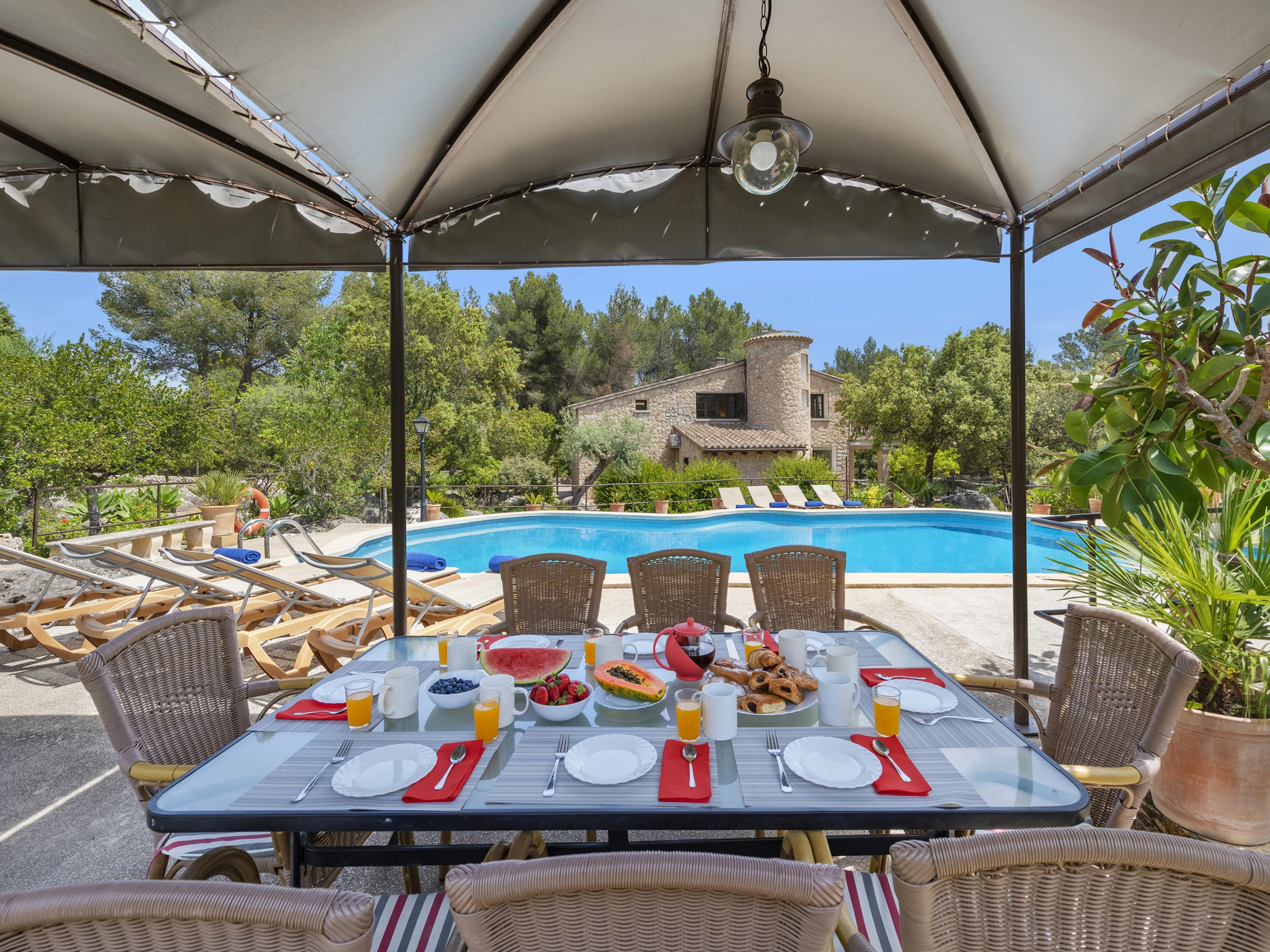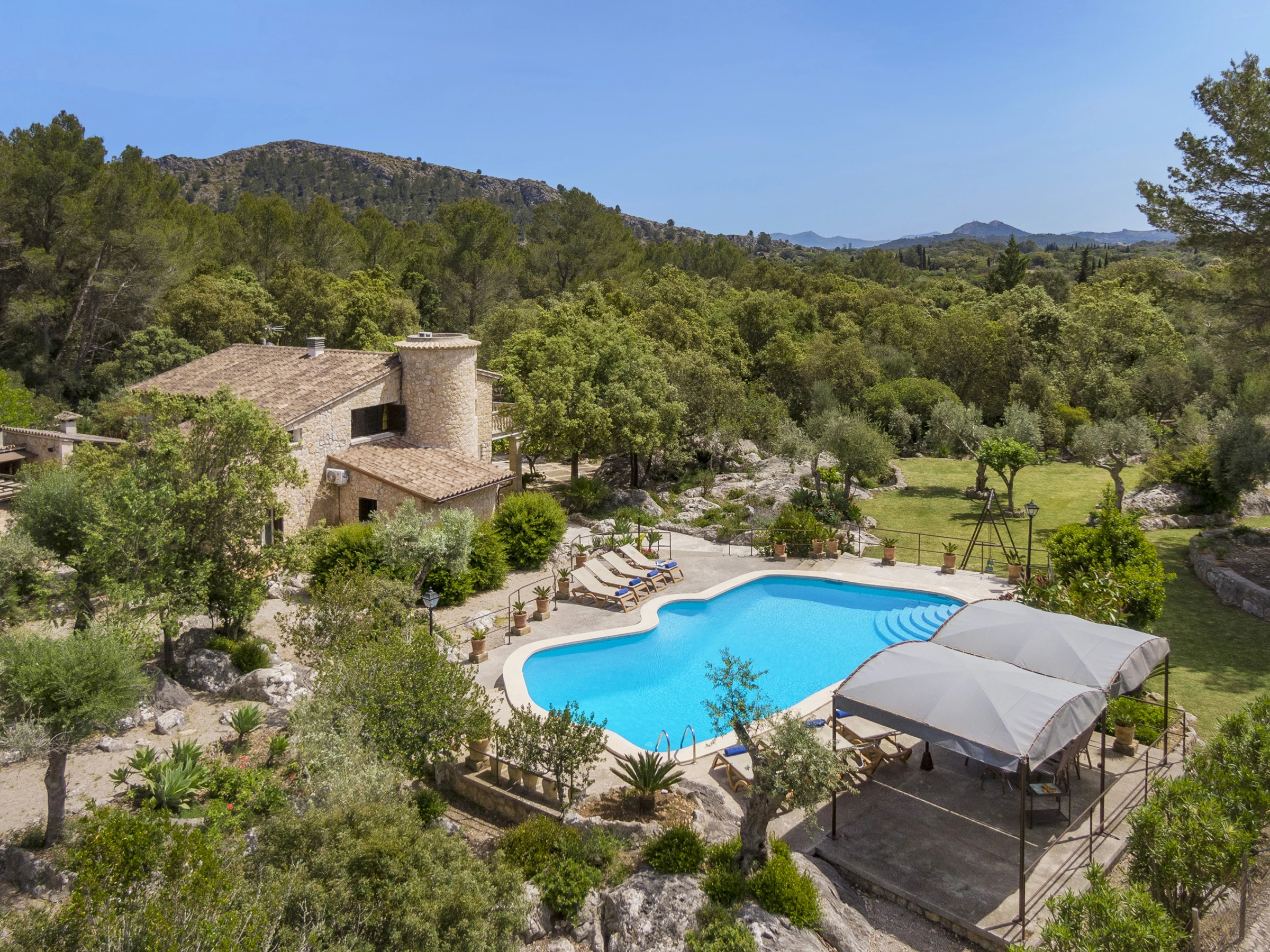 Logement de 220 m² confortable et totalement équipé, avec vue sur la montagne et la piscine.