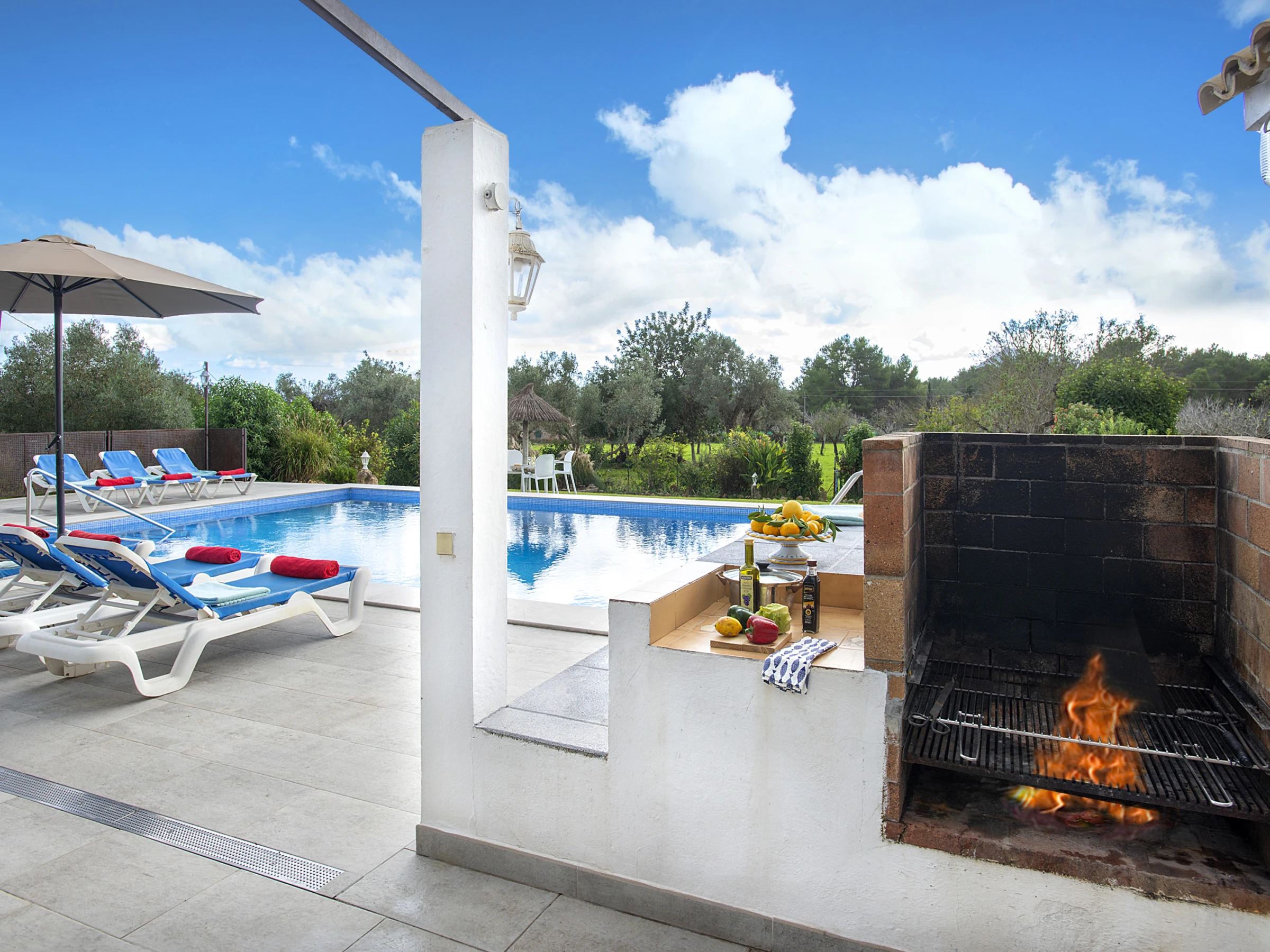 À l’extérieur, la propriété dispose d’une grande piscine privée entourée d’un jardin, parfaite pour se rafraîchir durant les journées d’été, se détendre sous le soleil méditerranéen ou préparer un délicieux barbecue.
