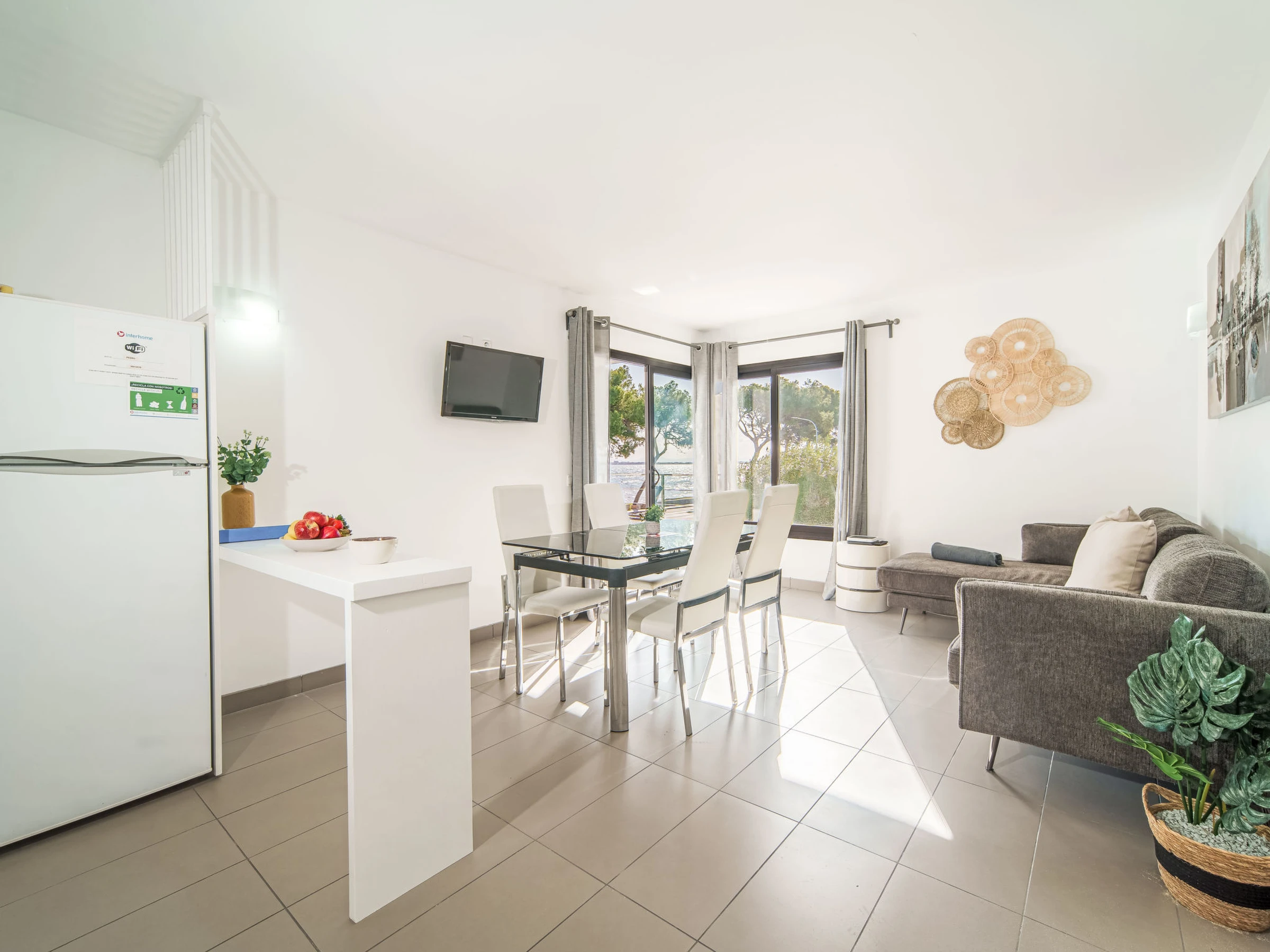"Oratge Beach Views", apt 2 pièces 57 m2 au 1er étage. Logement idéal pour 2 adultes. Aménagement fonctionnel et confortable: séjour/salle à manger ouvert avec table pour les repas, Télévision numérique, écran plat, air-conditionné et chauffage à air chaud. Sortie sur le balcon. 1 chambre double avec baie vitrée avec 1 grand-lit (150 cm, longueur 190 cm), Télévision numérique, écran plat, air-conditionné et chauffage à air chaud. Cuisine ouverte (four, lave-vaisselle, 3 plaques vitrocéramiques, grille-pain, bouilloire électrique, micro-ondes, congélateur, cafetière électrique). Douche/WC. Balcon. Mobilier de balcon. Superbe vue sur la mer, la piscine, les alentours et la localité. A disposition: lave-linge, fer à repasser, chaise haute pour enfant, lit bébé, sèche-cheveux. Internet (Connexion WIFI, gratuit). [hidden] // Reg. Nr.: ESFCTU00000703000015415400000000000000000[hidden]2