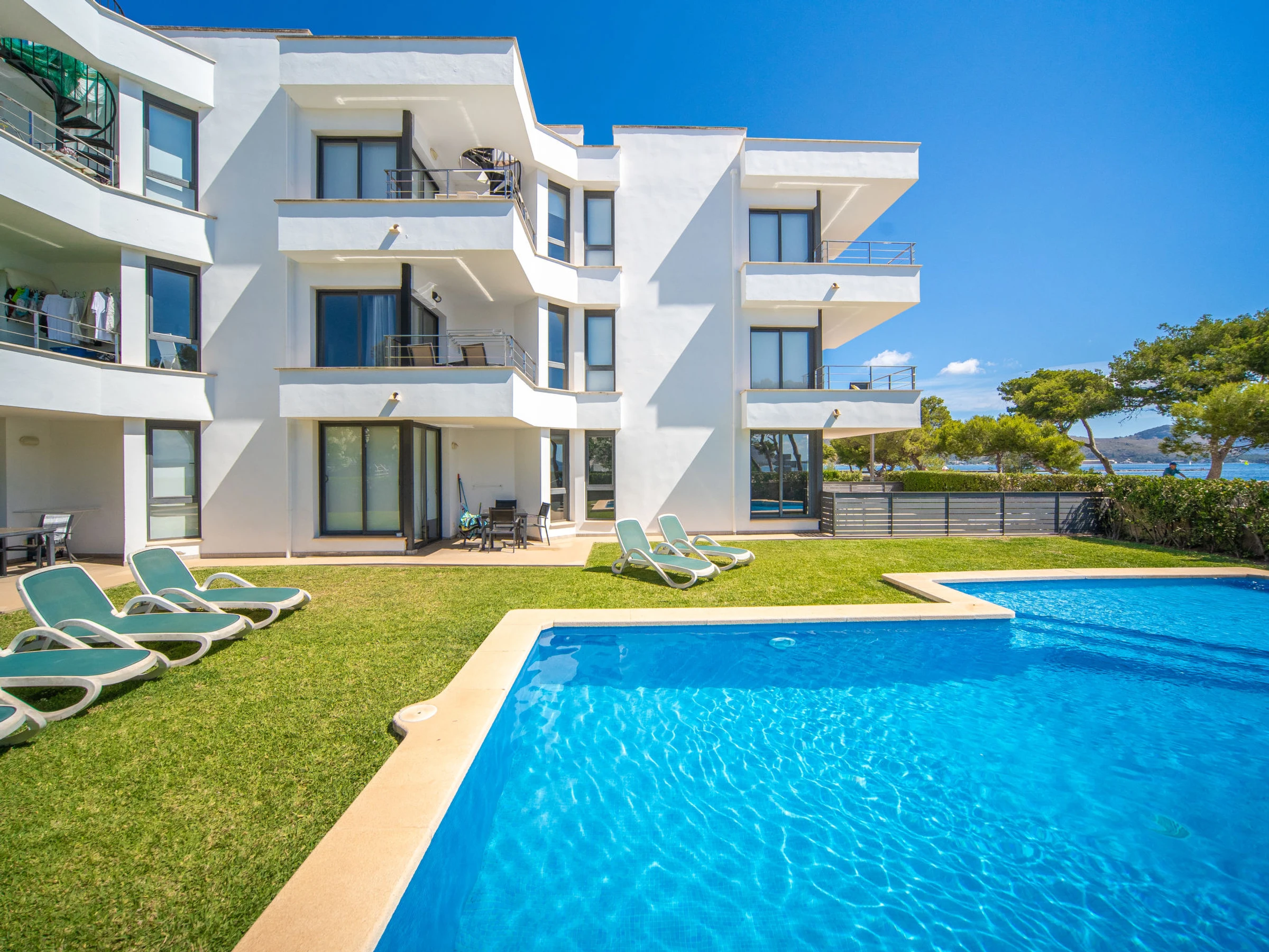 Belle petite résidence moderne, confortable "Oratge Beach Views". Dans la localité, à 900 m du centre de Port de Pollença, situation tranquille, ensoleillée, excellente situation: centrale mais tranquille, à 2.5 km de la forêt, à 10 m de la mer, à 10 m de la plage, route à traverser. En commun: jardin avec pelouse, piscine (8 x 4 m, profondeur 40 - 165 cm, disponibilité saisonnière: [hidden] - [hidden] Douche extérieure. A usage privé: terrasse (6 m2). Infrastructures de la Maison: accès internet, Connexion WIFI, air-conditionné, lave-linge. Parking public couvert à 25 m, parking public possible dans la rue. Magasins 1.2 km, magasin d'alimentation 500 m, supermarché 600 m, restaurant 50 m, bar 100 m, boulangerie 1.5 km, zone piétonne 600 m, location de bicyclettes 900 m, biergarten 50 m, centre à 10 minutes à pieds, arrêt de bus 500 m, plage de sable 10 m, plage de galets 50 m. Port plaisance 1.7 km, marina 1.7 km, terrain de golf (18 trous) 9.8 km, tennis 2 km, chemins de randonnées pédestres depuis la maison 1.5 km, piste cyclable 1.5 km. Attractions à proximité: Pollença Pueblo 6.7 km, Far de Formentor 23 km, Ciudad Romana d'Alcúdia 7 km, Playa de Formentor 12 km, Cala Sant Vicenç 11.2 km, Mercado Local Miércoles 8-13h. Région de randonnées: Cala Boquer, Atalaya d'Alcúdia, Serra de Tramuntana. Veuillez noter: sans ascenseur. Bien convenant à 2 adultes. Aéroport 66 km de la maison. Environnement très sensible au bruit. Silence et bonne tenue exigés.