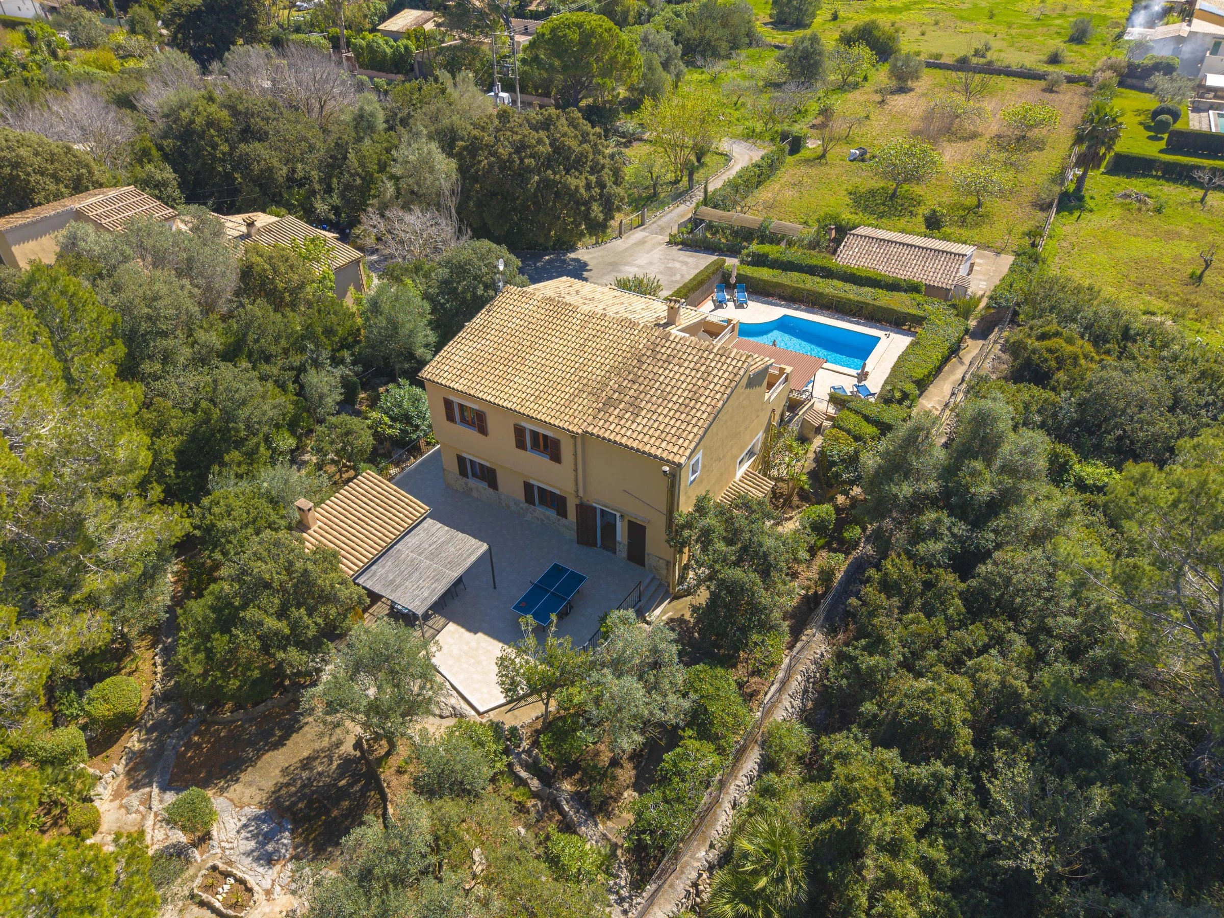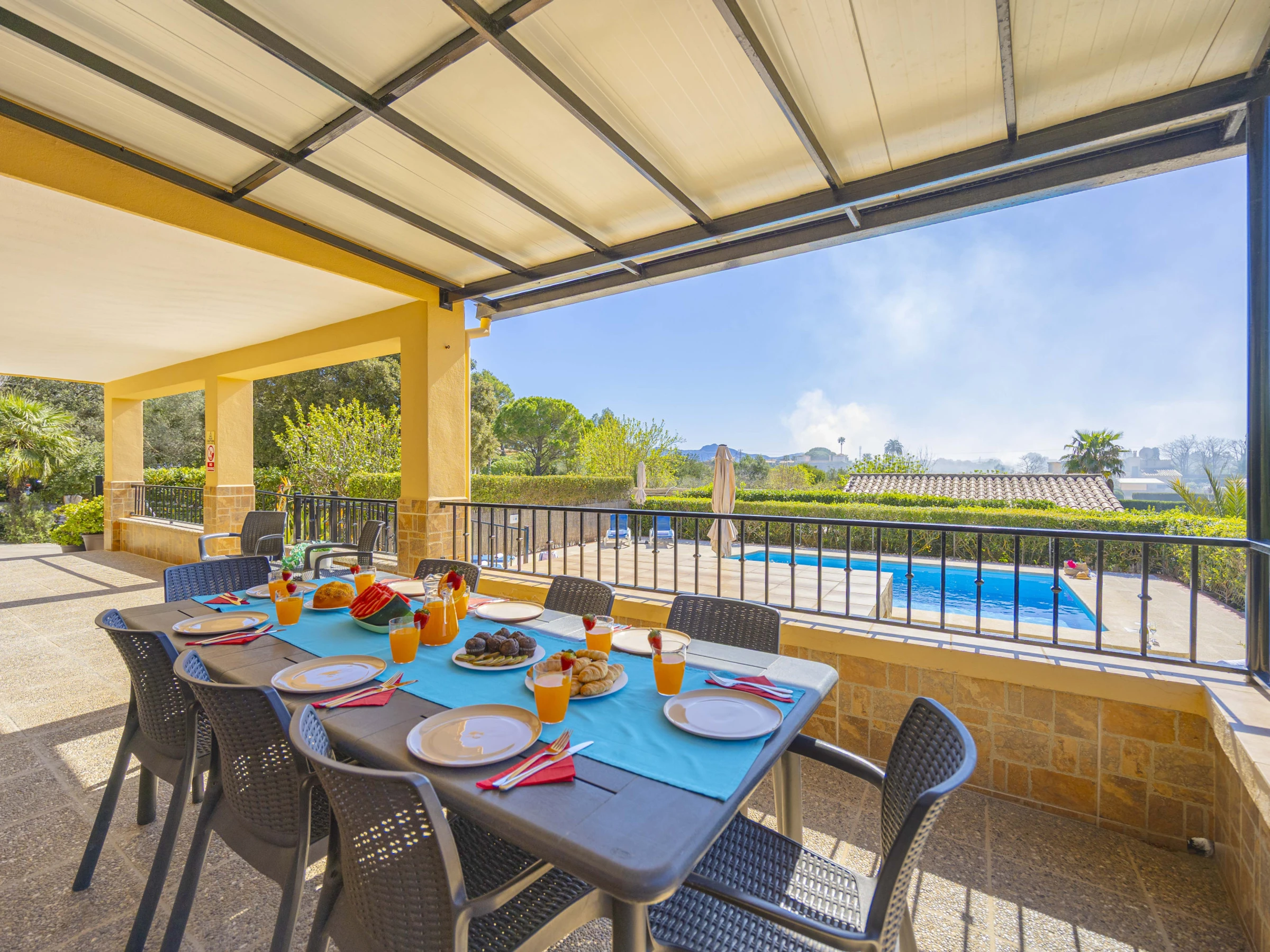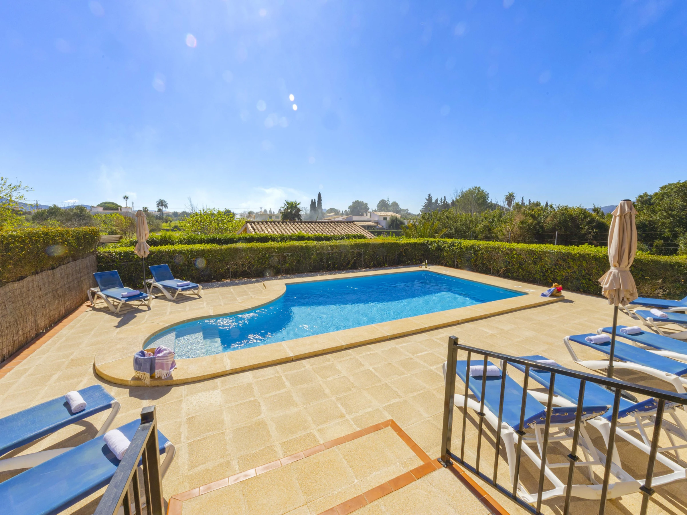Elle dispose de jardin, mobilier de jardin, terrasse, lave-linge, barbecue, accès internet (wifi), sèche-cheveux, chauffage central, climatisation, piscine privée, 2 Télévisions, tv satellite (Langues: Espagnol, Anglais, Allemand).