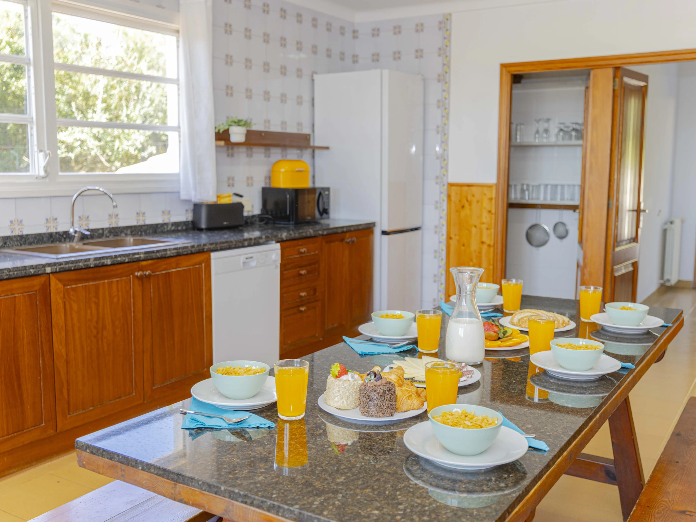 La cuisine indépendante, à vitrocéramique, est équipée avec réfrigérateur, micro-ondes, four, congélateur, lave-vaisselle, vaisselle/couverts, ustensiles/cuisine, cafetière, grille pain, bouilloire et presse-agrumes.