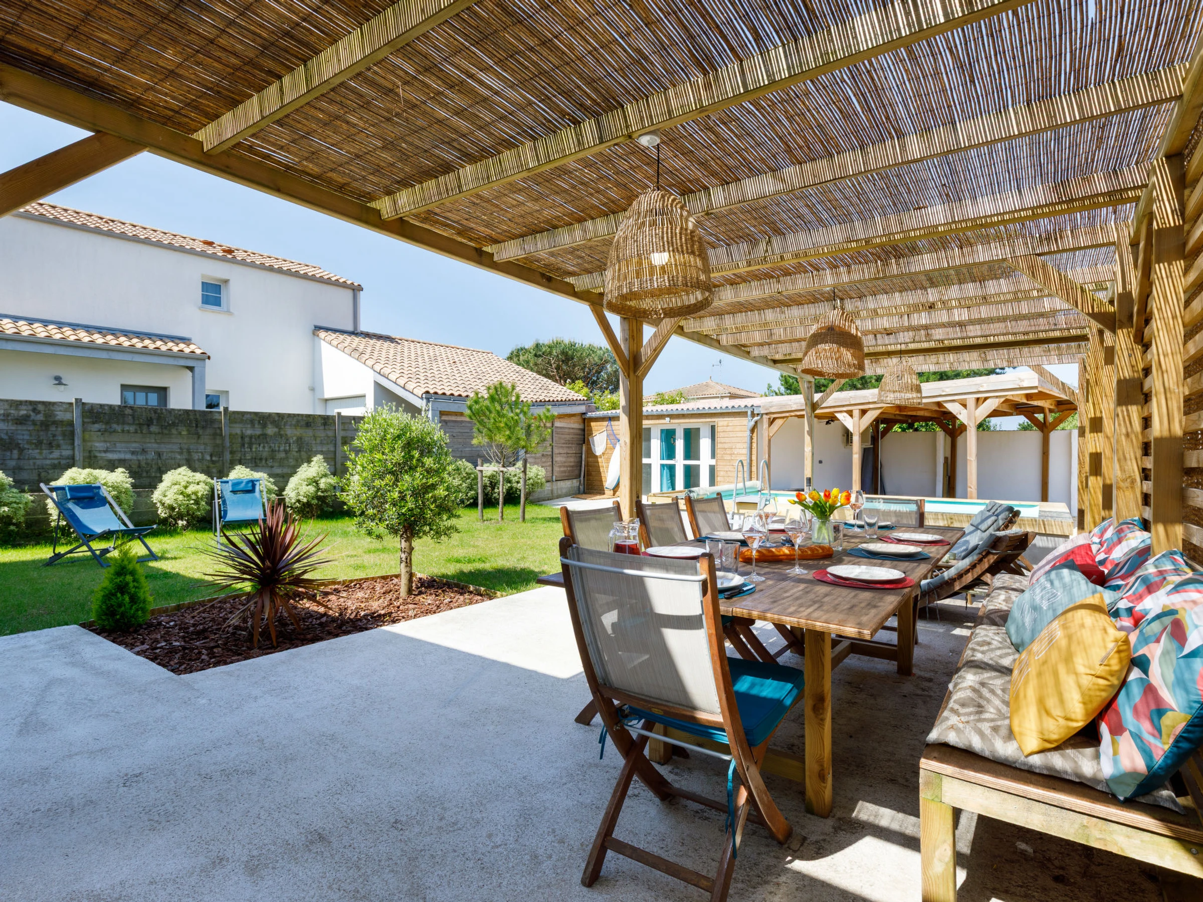 Belle maison individuelle "La Perle de Jade". Location composée d'un bâtiment principal et d'une annexe, dans le quartier de La Fontaine aux Bretons, excellente situation: centrale mais tranquille, à 800 m de la mer, à 800 m de la plage, orientée sud-ouest. A usage privé: jardin entretenu 360 m2 (clôturé), piscine chauffée (4 x 2 m, 10 m2, profondeur 120 - 120 cm, disponibilité saisonnière: [hidden] - [hidden] Terrasse, meubles de jardin, barbecue, place de parking (pour 3 voitures). Borne de recharge électrique. Supermarché 1.2 km, boulangerie 1.2 km, centre à 30 minutes à pieds, arrêt de bus "La Fontaine aux bretons" 200 m, gare ferroviaire "Pornic" 2 km, plage de sable "Plage de la Fontaine aux Bretons" 800 m (petit[e]), centre thermal "Alliance Pornic Thalasso & Spa" 3 km. Port plaisance 2 km, terrain de golf (18 trous) 7 km, golf miniature 7 km. Attractions à proximité: Port de Pornic 2 km, Legendia Parc 20 km, Planète Sauvage 28 km, La Baule 46 km, Les Machines de l'Ile de Nantes 48 km, Ile de Noirmoutier 55 km. Les lacs connus sont facilement accessibles: Lac de Saint Viaud 25 km. Région de randonnées: Sentier des Douaniers 800 m. La remise des clés a lieu à l’agence de Pornic, 1 km.
