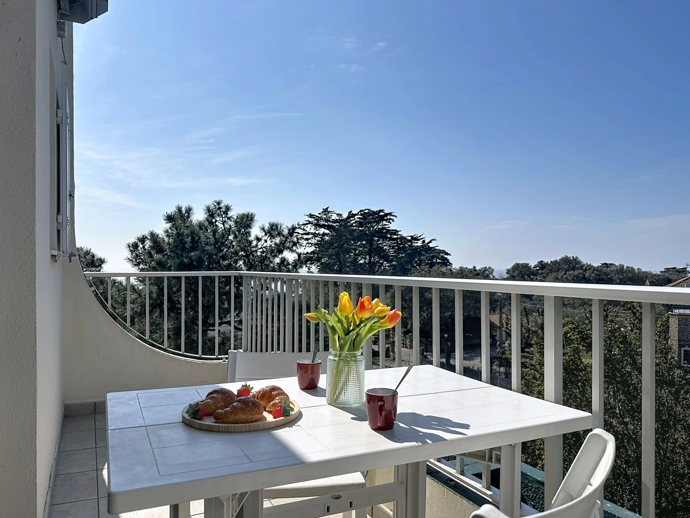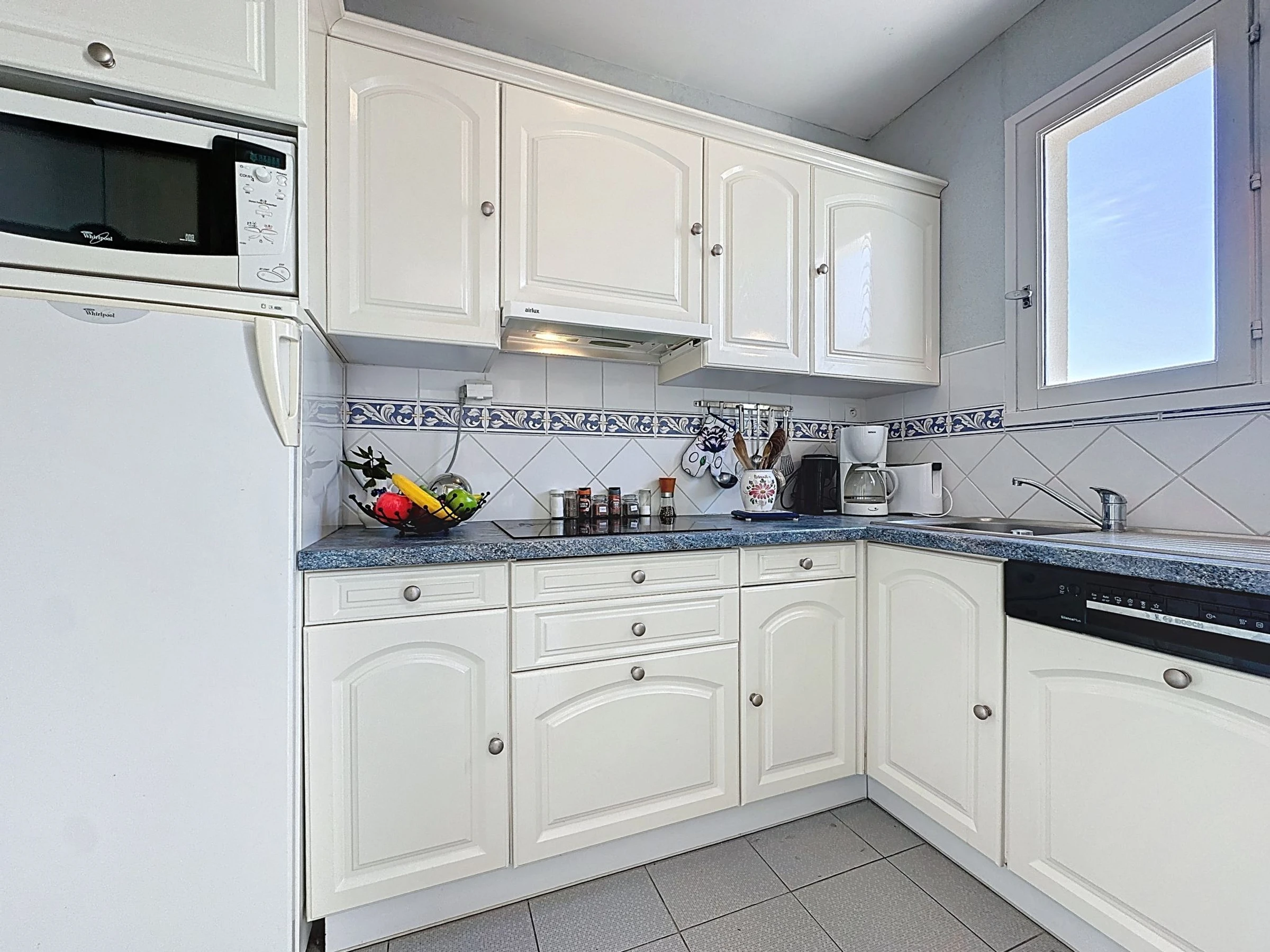 "Les Criques", apt 2 pièces 38 m2 au 4ème étage, situation ouest. Aménagement simple et agréable: séjour/salle à manger avec 1 grand-lit armoire (1 x 140 cm, longueur 190 cm), TV (écran plat). Sortie sur le balcon, orientée ouest. 1 chambre avec 2 lits (80 cm, longueur 190 cm). Sortie sur le balcon, orientée sud et orientée ouest. Cuisine ouverte (lave-vaisselle, 4 plaques à induction, grille-pain, bouilloire électrique, cafetière électrique, combiné micro-ondes). Salle de bains, WC séparé. Chauffage électrique. Balcon 10 m2, situation sud et situation ouest. Mobilier de balcon, chaises longues (2). Vue partielle sur la mer. A disposition: lave-linge, fer à repasser, sèche-cheveux. Internet (Connexion WIFI, en sus). Place de parking No 44 (cloturée, 1 Voiture). Veuillez noter: logement non-fumeur. Détecteur de fumée. Annonce d'un particulier (art 155, IV du CGI). [hidden]