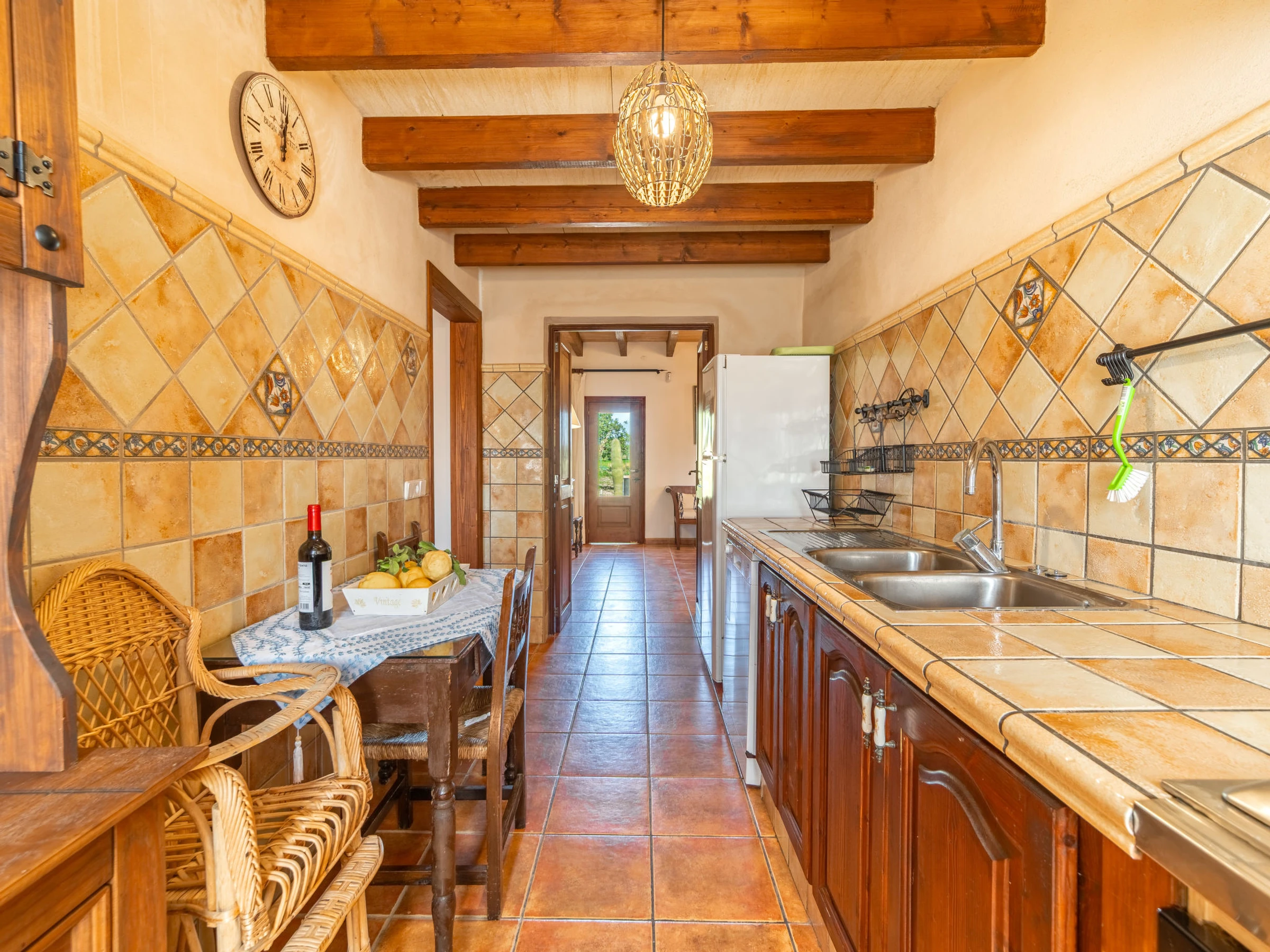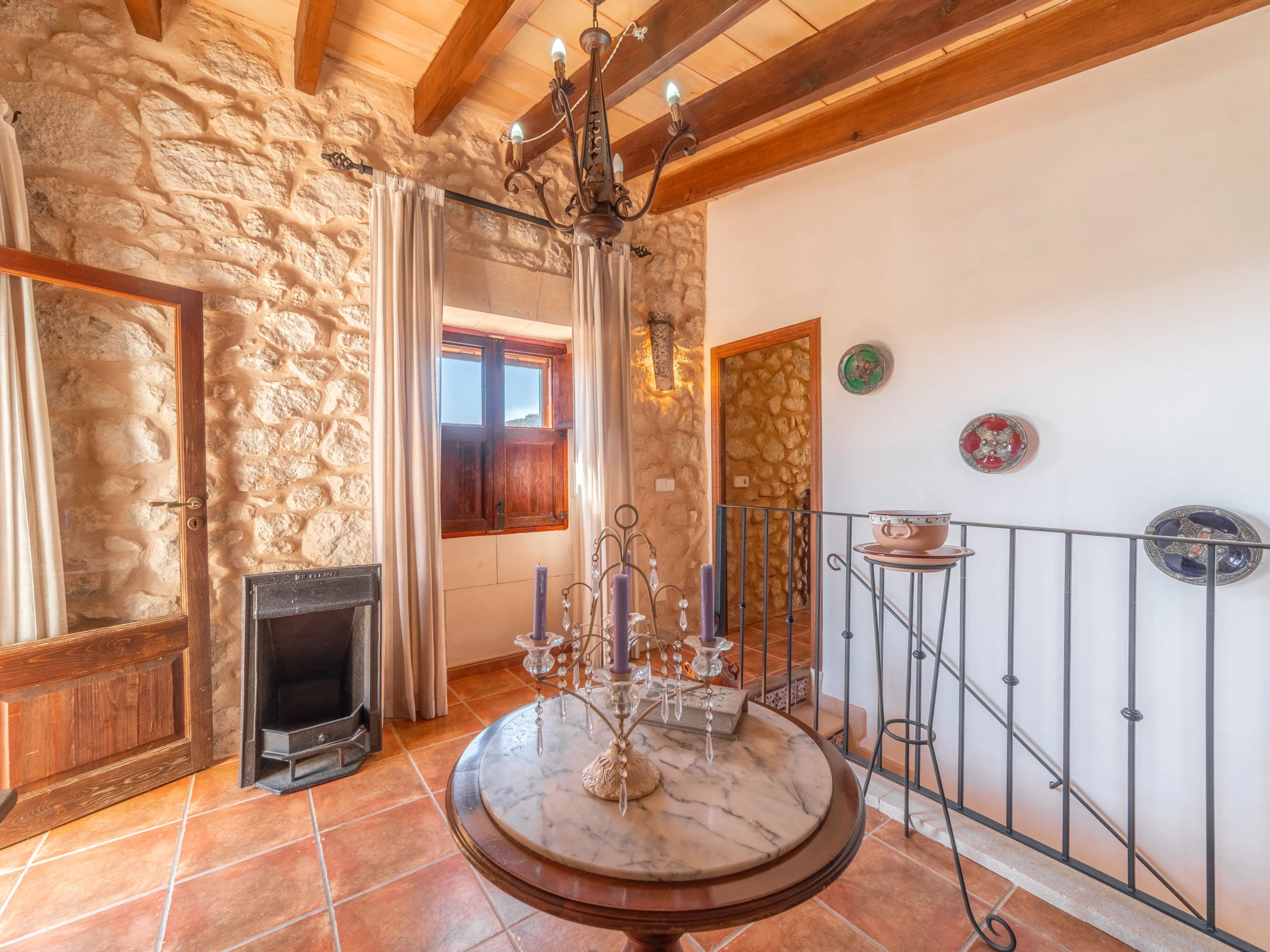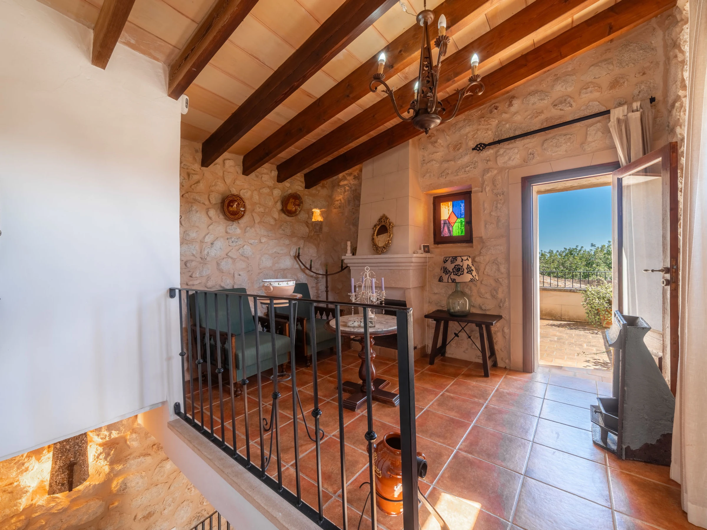 "Ses Terrasses", 5 pièces cottage 140 m2 sur 2 niveaux. Logement idéal pour 6 adultes. Rénové, aménagement fonctionnel et confortable: salle à manger. Séjour avec cheminée (uniquement à titre de décoration), Télévision numérique et chaînes de TV internationales. 1 chambre double avec 2 lits (90 cm, longueur 200 cm). 1 chambre double avec 1 grand-lit (150 cm, longueur 200 cm). Cuisine (3 plaques de cuisson, four, lave-vaisselle, grille-pain, bouilloire électrique, micro-ondes, congélateur, cafetière électrique) avec table pour les repas. Douche/WC, douche/bidet/WC. À l'étage supérieur: 1 chambre double avec 1 grand-lit (150 cm, longueur 200 cm). Sortie sur la terrasse. Grand balcon, grand jardinet, tonnelle. Meubles de terrasse, mobilier de balcon, barbecue, chaises longues, loggia, place pour s'asseoir. Vue panoramique sur les montagnes et les alentours. A disposition: lave-linge, fer à repasser, chaise haute pour enfant, lit bébé jusqu'à 2 ans, sèche-cheveux. Internet (Connexion WIFI, gratuit). Place de parking. Veuillez noter: adapté(e) aux familles. Maison non-fumeur. La piscine mentionnée dans le descriptif est privative. [hidden] // Reg. Nr.: ESFCTU[hidden][hidden][hidden]000[hidden]6