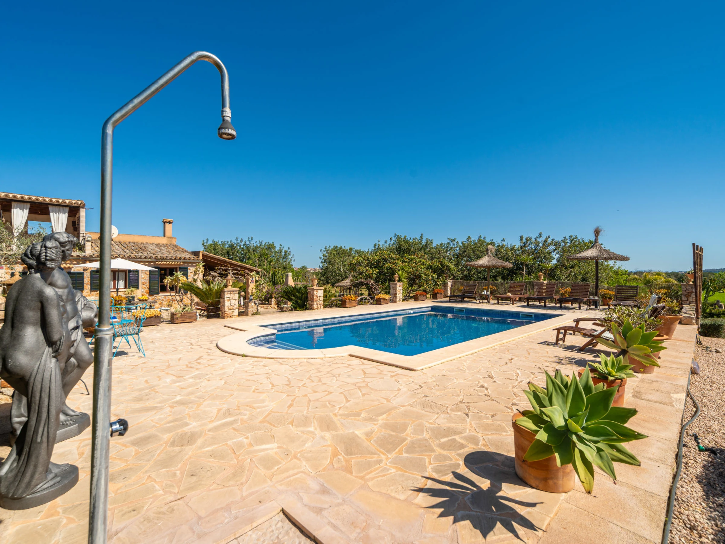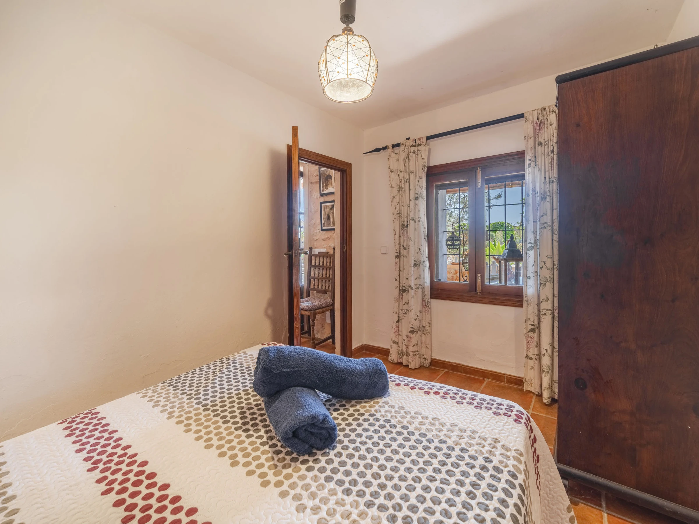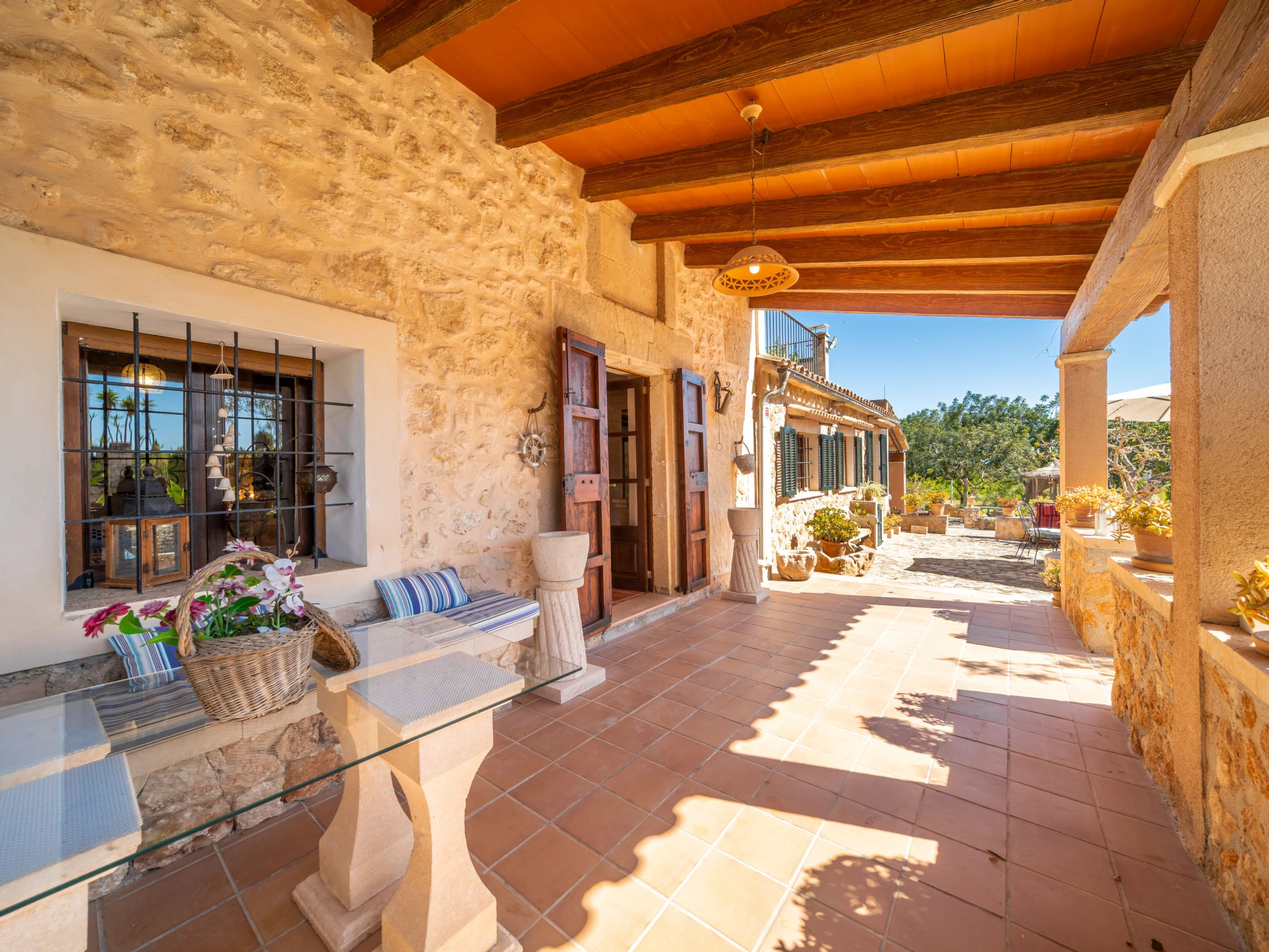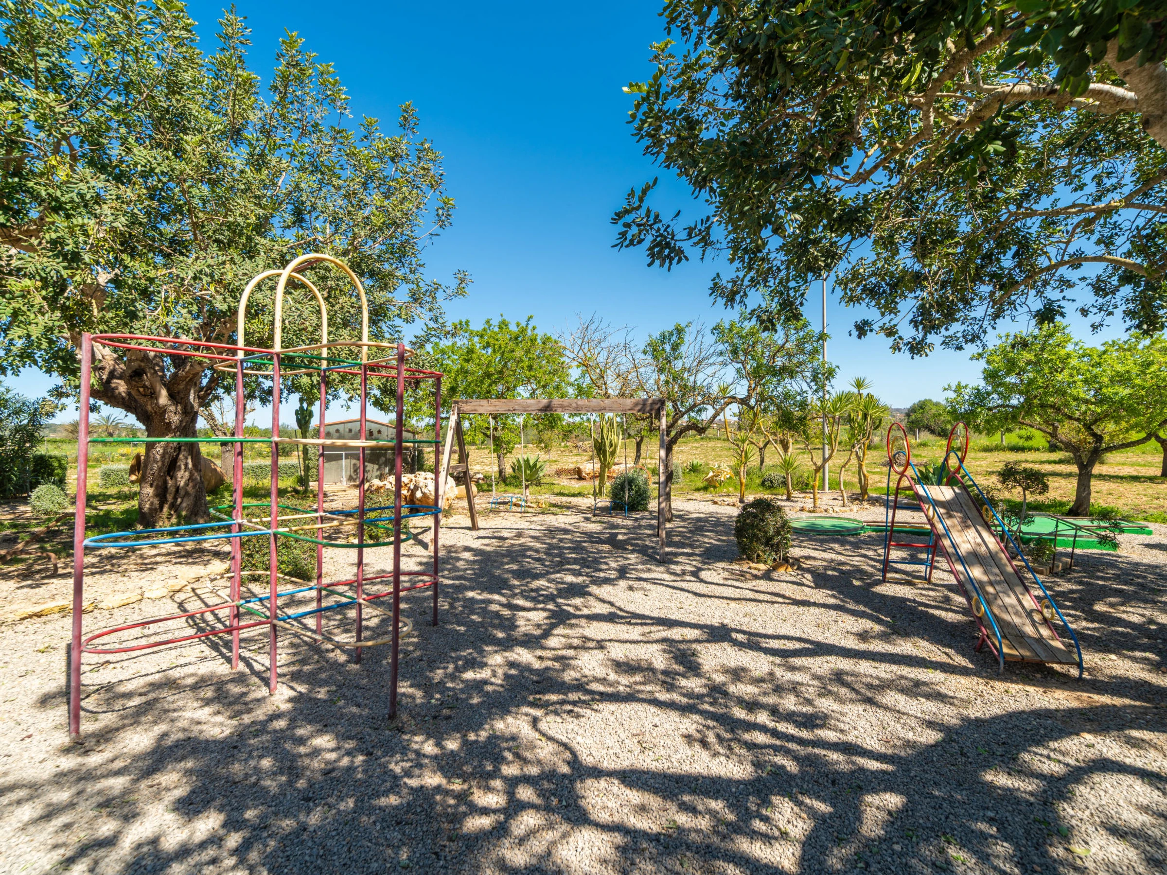 Beau, grand domaine confortable "Ses Terrasses", de 2 étages, renové, environné par les champs. En-dehors de la localité, à 1.5 km du centre de Porreres, situation tranquille, ensoleillée, à 19 m de la mer, dans la verdure. A usage privé: terrain à l'état naturel (clôturé), jardin avec plantes et arbres, piscine rectangulaire (9 x 5 m, profondeur 30 - 200 cm, disponibilité saisonnière: [hidden] - [hidden] Douche extérieure, ping-pong, terrain de pétanque, jardinet, tonnelle, pergola, meubles de jardin, barbecue, espace de jeux pour les enfants (toboggan, balançoire), minizoo entretien de la piscine par le propriétaire/jardinier. Infrastructures de la Maison: accès internet, Connexion WIFI. Place de parking près de la maison sur le terrain. Supermarché 3.4 km, restaurant 3.3 km, bar 3.3 km, boulangerie 3.4 km, centre à 25 minutes à pieds, arrêt de bus "Ronda de l'Estació 1 (43006)" 1.5 km, plage de sable "Arenal de Sa Ràpita - Es Trenc" 20 km. Port plaisance 18.6 km, terrain de golf (18 trous) 27 km, piste cyclable 500 m. Attractions à proximité: Palma City 43 km, Pueblos de Porreres-Campos-Felanitx, Colonia Sant Jordi 23 km, Portopetro 32 km, Santuario de Lluc 52 km, Santuario de Montision 1.9 km. Région de randonnées: Serra de Tramuntana. Veuillez noter: voiture recommandée, sans ascenseur. Adapté(e) aux familles. Bien convenant à 6 adultes. Le propriétaire n'accepte pas les groupes de jeunes. Sur le terrain des animaux. Animaux dans le voisinage. Aéroport 38 km de la maison.