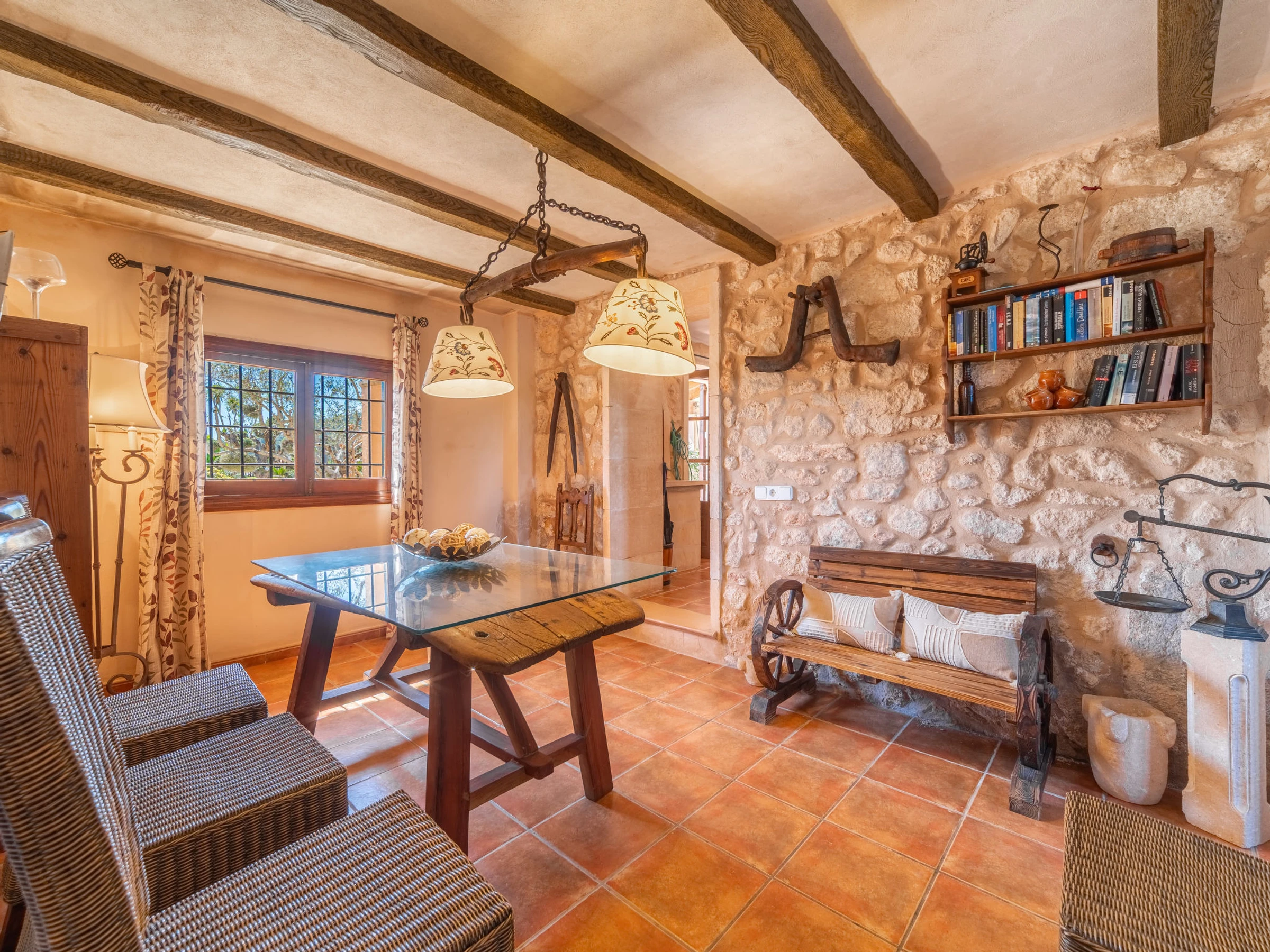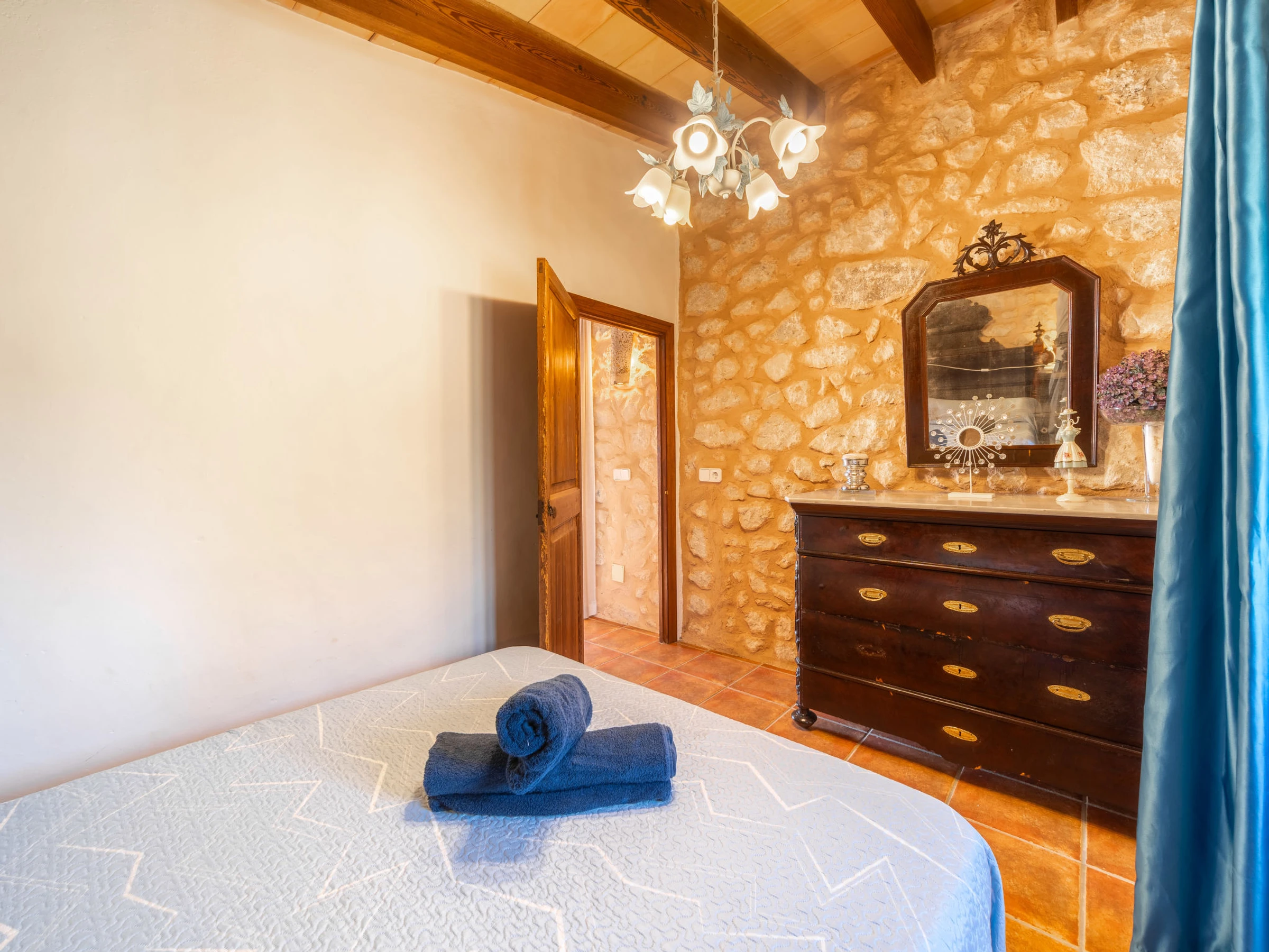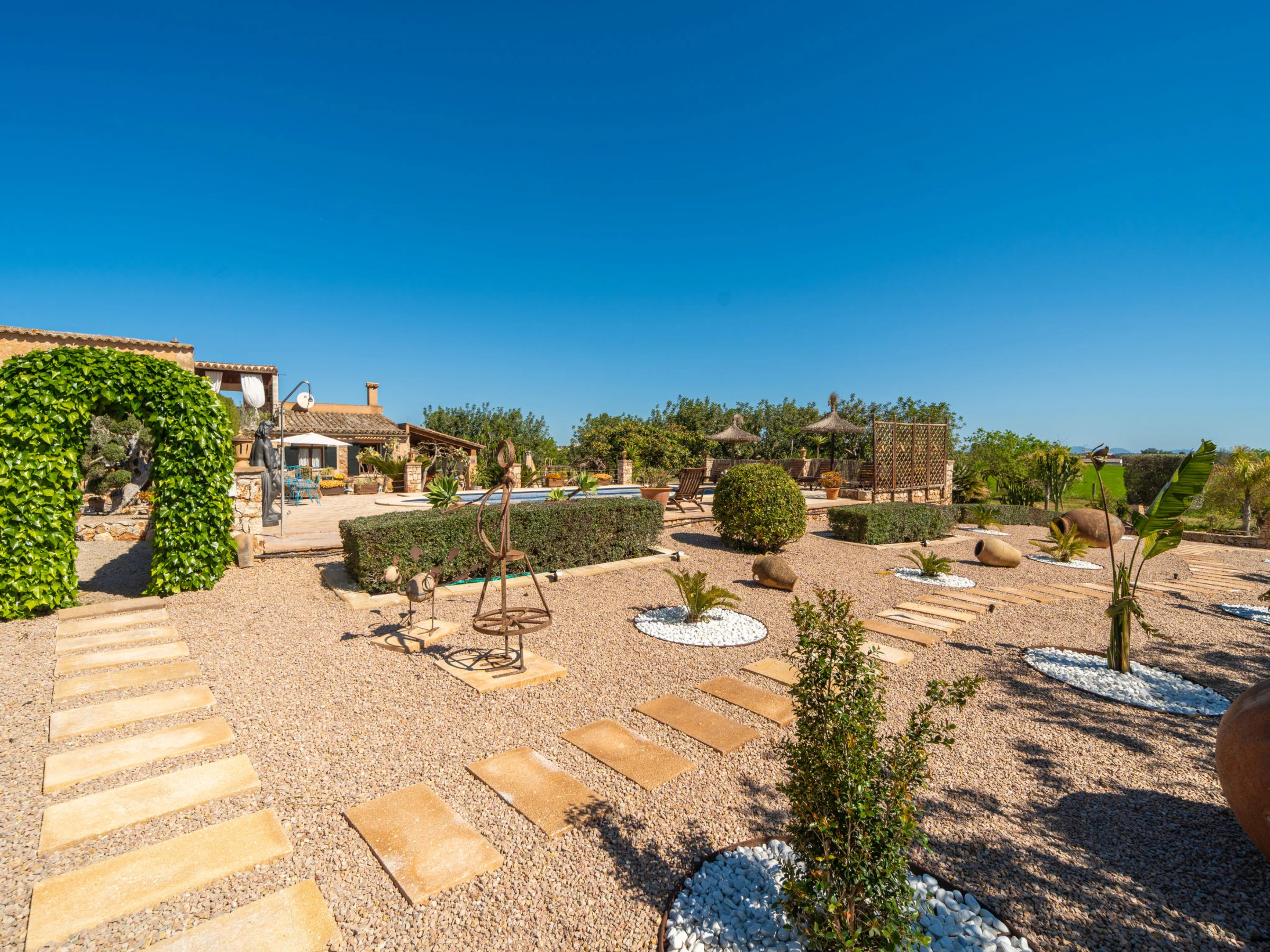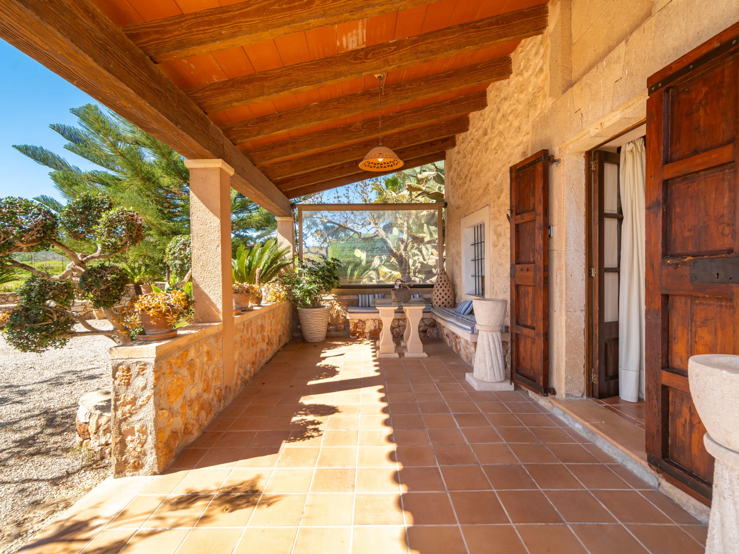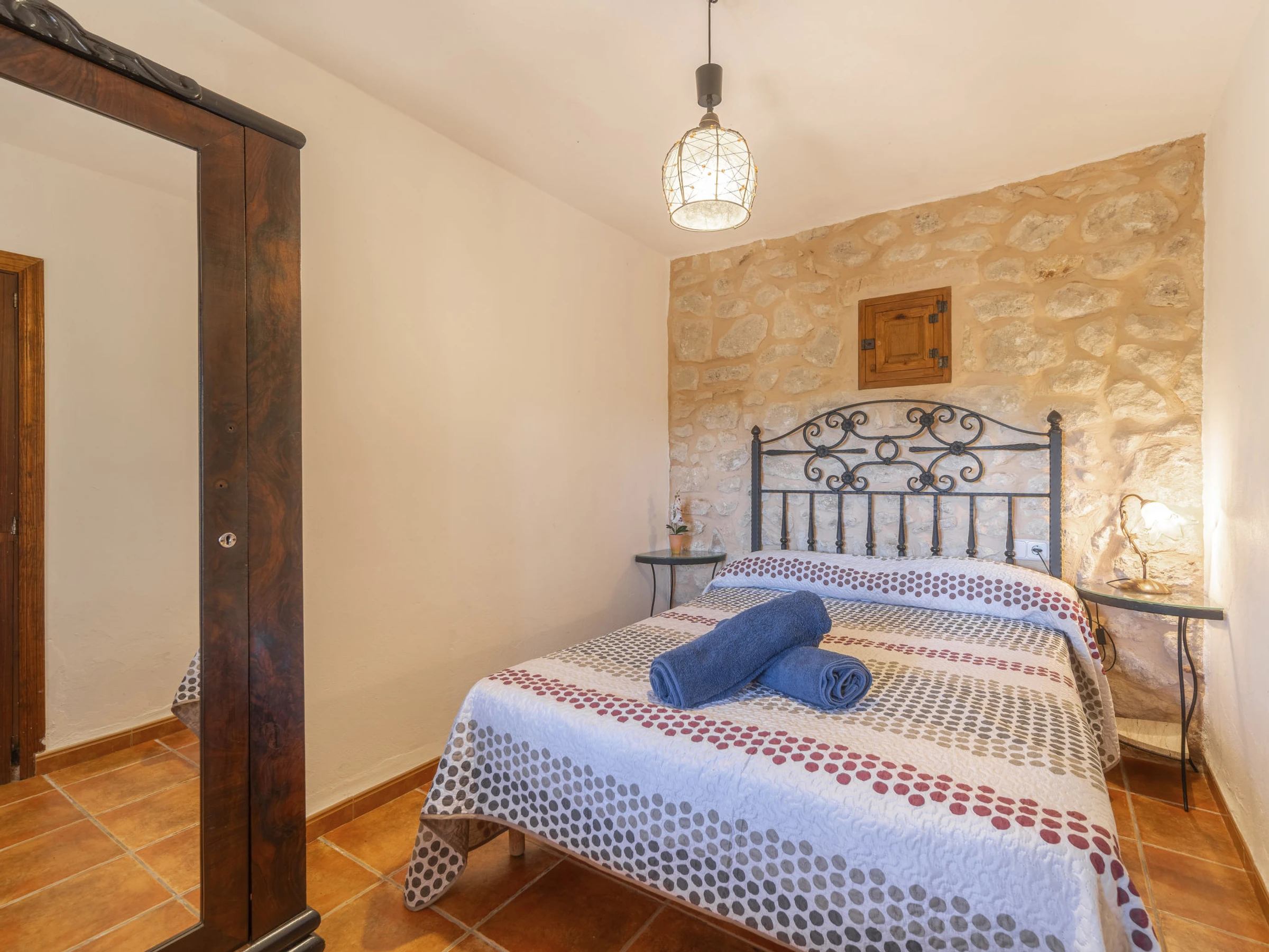 Beau, grand domaine confortable "Ses Terrasses", de 2 étages, renové, environné par les champs. En-dehors de la localité, à 1.5 km du centre de Porreres, situation tranquille, ensoleillée, à 19 m de la mer, dans la verdure. A usage privé: terrain à l'état naturel (clôturé), jardin avec plantes et arbres, piscine rectangulaire (9 x 5 m, profondeur 30 - 200 cm, disponibilité saisonnière: [hidden] - [hidden] Douche extérieure, ping-pong, terrain de pétanque, jardinet, tonnelle, pergola, meubles de jardin, barbecue, espace de jeux pour les enfants (toboggan, balançoire), minizoo entretien de la piscine par le propriétaire/jardinier. Infrastructures de la Maison: accès internet, Connexion WIFI. Place de parking près de la maison sur le terrain. Supermarché 3.4 km, restaurant 3.3 km, bar 3.3 km, boulangerie 3.4 km, centre à 25 minutes à pieds, arrêt de bus "Ronda de l'Estació 1 (43006)" 1.5 km, plage de sable "Arenal de Sa Ràpita - Es Trenc" 20 km. Port plaisance 18.6 km, terrain de golf (18 trous) 27 km, piste cyclable 500 m. Attractions à proximité: Palma City 43 km, Pueblos de Porreres-Campos-Felanitx, Colonia Sant Jordi 23 km, Portopetro 32 km, Santuario de Lluc 52 km, Santuario de Montision 1.9 km. Région de randonnées: Serra de Tramuntana. Veuillez noter: voiture recommandée, sans ascenseur. Adapté(e) aux familles. Bien convenant à 6 adultes. Le propriétaire n'accepte pas les groupes de jeunes. Sur le terrain des animaux. Animaux dans le voisinage. Aéroport 38 km de la maison.