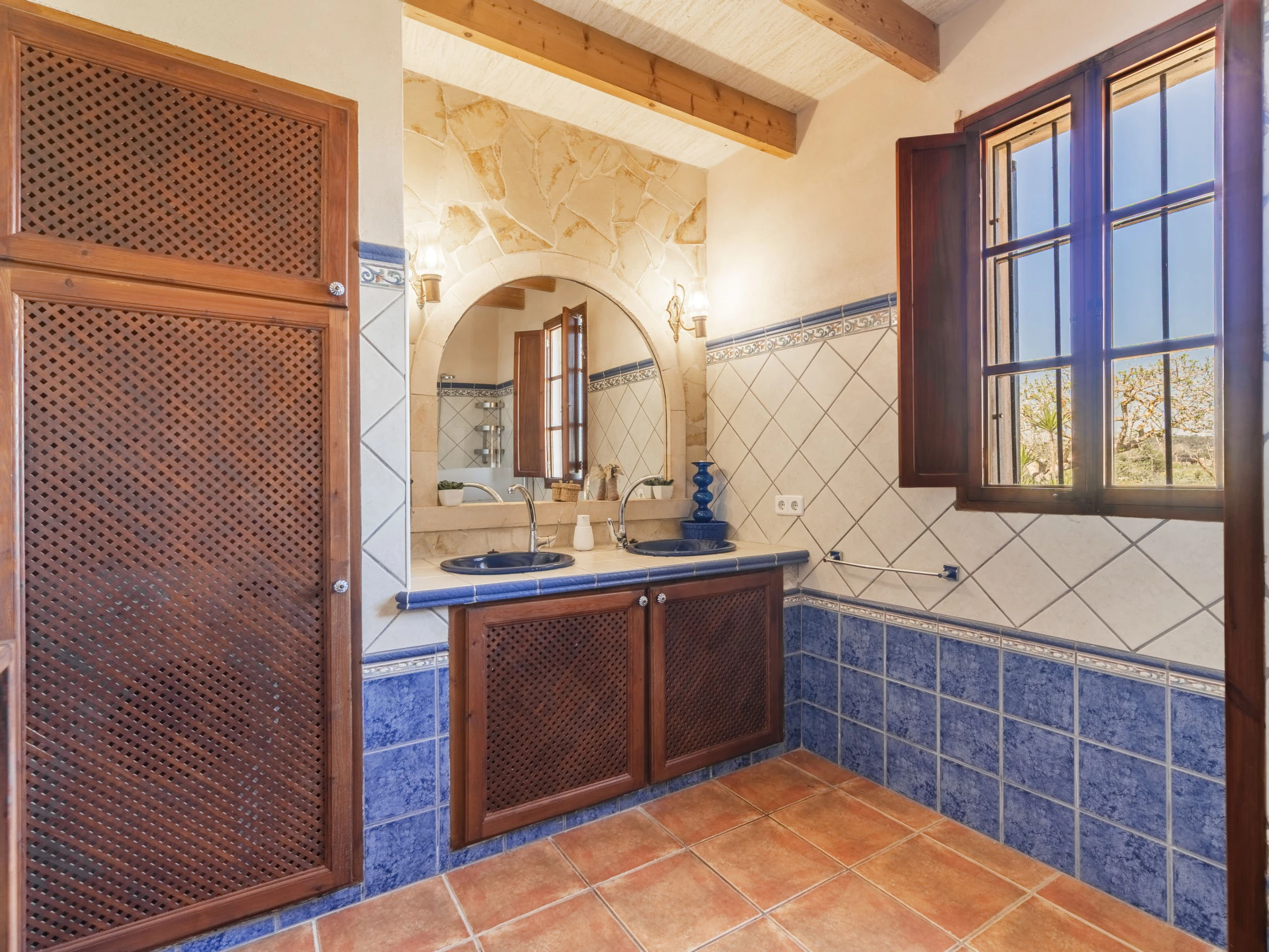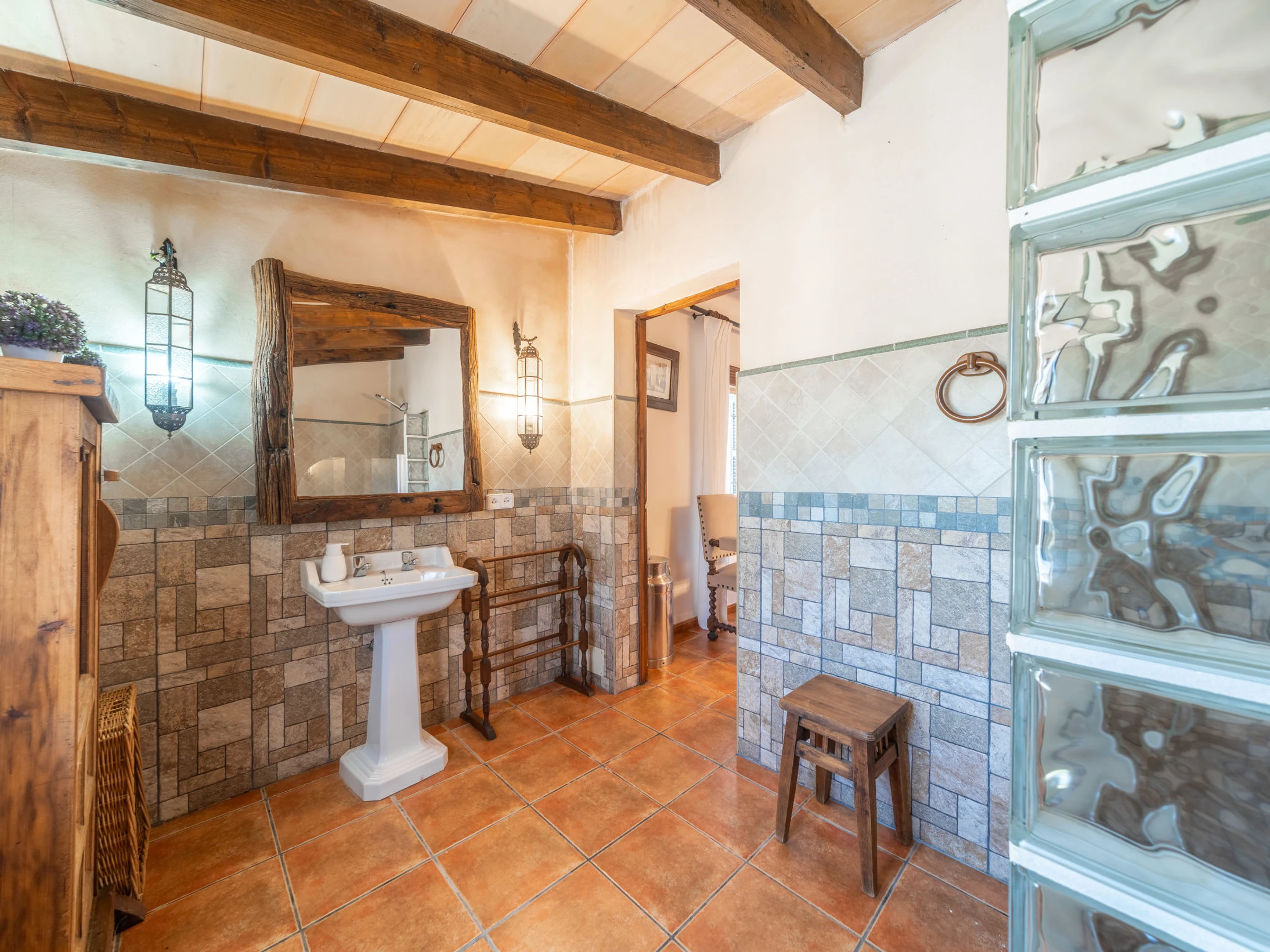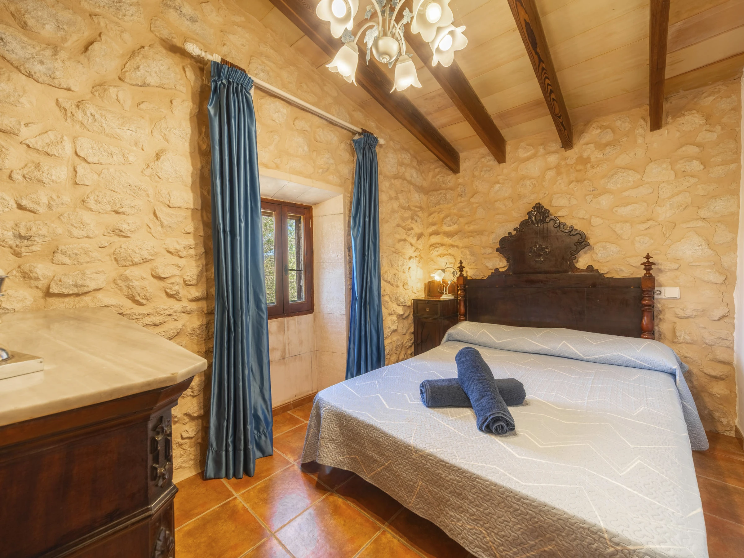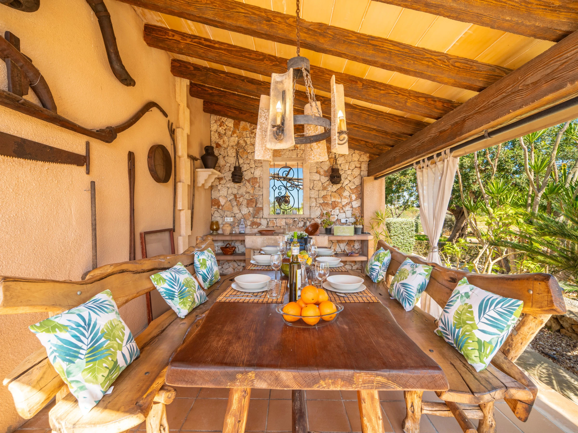 Beau, grand domaine confortable "Ses Terrasses", de 2 étages, renové, environné par les champs. En-dehors de la localité, à 1.5 km du centre de Porreres, situation tranquille, ensoleillée, à 19 m de la mer, dans la verdure. A usage privé: terrain à l'état naturel (clôturé), jardin avec plantes et arbres, piscine rectangulaire (9 x 5 m, profondeur 30 - 200 cm, disponibilité saisonnière: [hidden] - [hidden] Douche extérieure, ping-pong, terrain de pétanque, jardinet, tonnelle, pergola, meubles de jardin, barbecue, espace de jeux pour les enfants (toboggan, balançoire), minizoo entretien de la piscine par le propriétaire/jardinier. Infrastructures de la Maison: accès internet, Connexion WIFI. Place de parking près de la maison sur le terrain. Supermarché 3.4 km, restaurant 3.3 km, bar 3.3 km, boulangerie 3.4 km, centre à 25 minutes à pieds, arrêt de bus "Ronda de l'Estació 1 (43006)" 1.5 km, plage de sable "Arenal de Sa Ràpita - Es Trenc" 20 km. Port plaisance 18.6 km, terrain de golf (18 trous) 27 km, piste cyclable 500 m. Attractions à proximité: Palma City 43 km, Pueblos de Porreres-Campos-Felanitx, Colonia Sant Jordi 23 km, Portopetro 32 km, Santuario de Lluc 52 km, Santuario de Montision 1.9 km. Région de randonnées: Serra de Tramuntana. Veuillez noter: voiture recommandée, sans ascenseur. Adapté(e) aux familles. Bien convenant à 6 adultes. Le propriétaire n'accepte pas les groupes de jeunes. Sur le terrain des animaux. Animaux dans le voisinage. Aéroport 38 km de la maison.