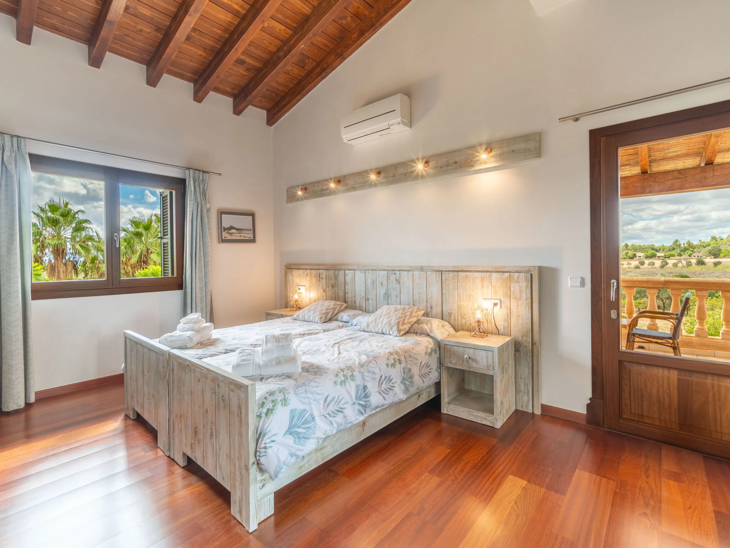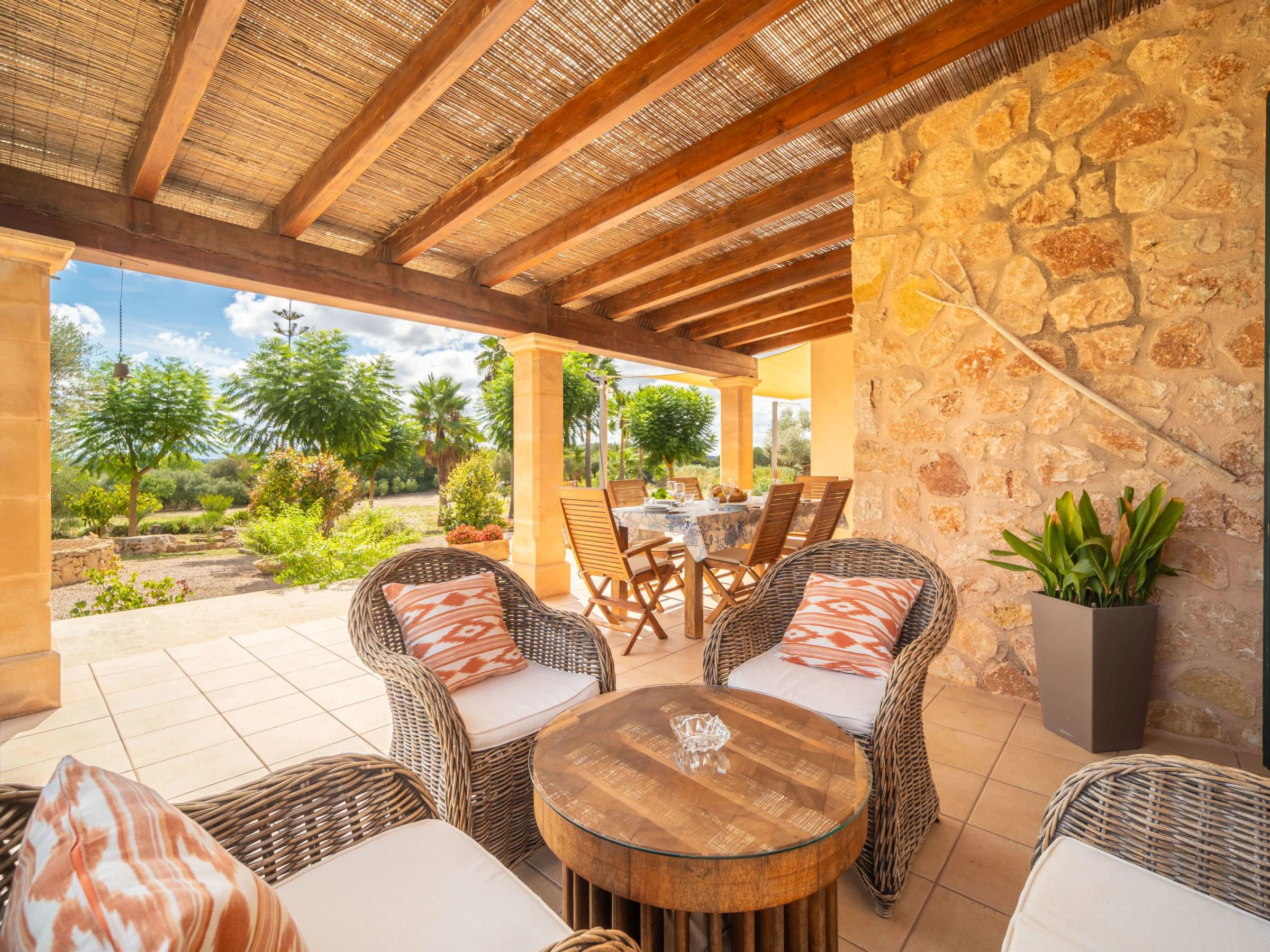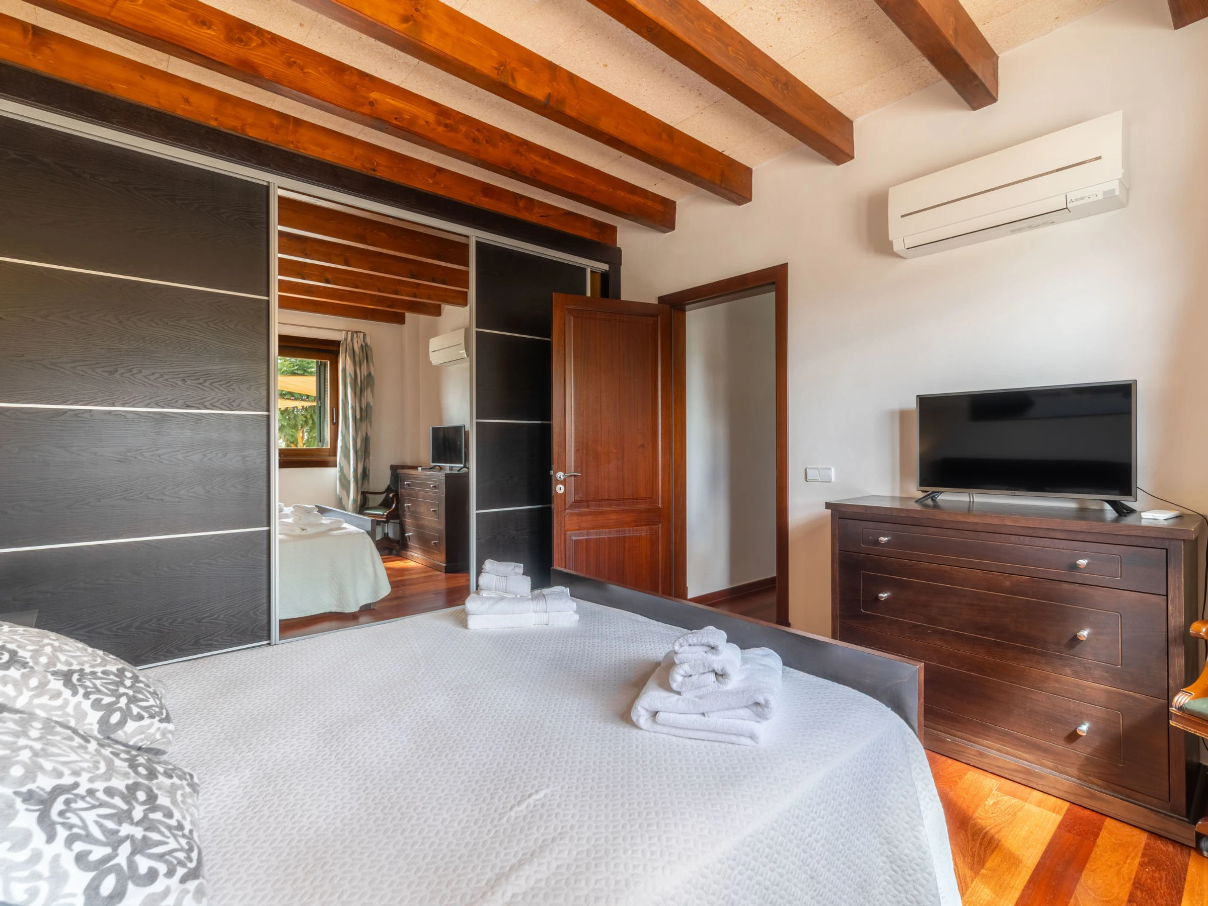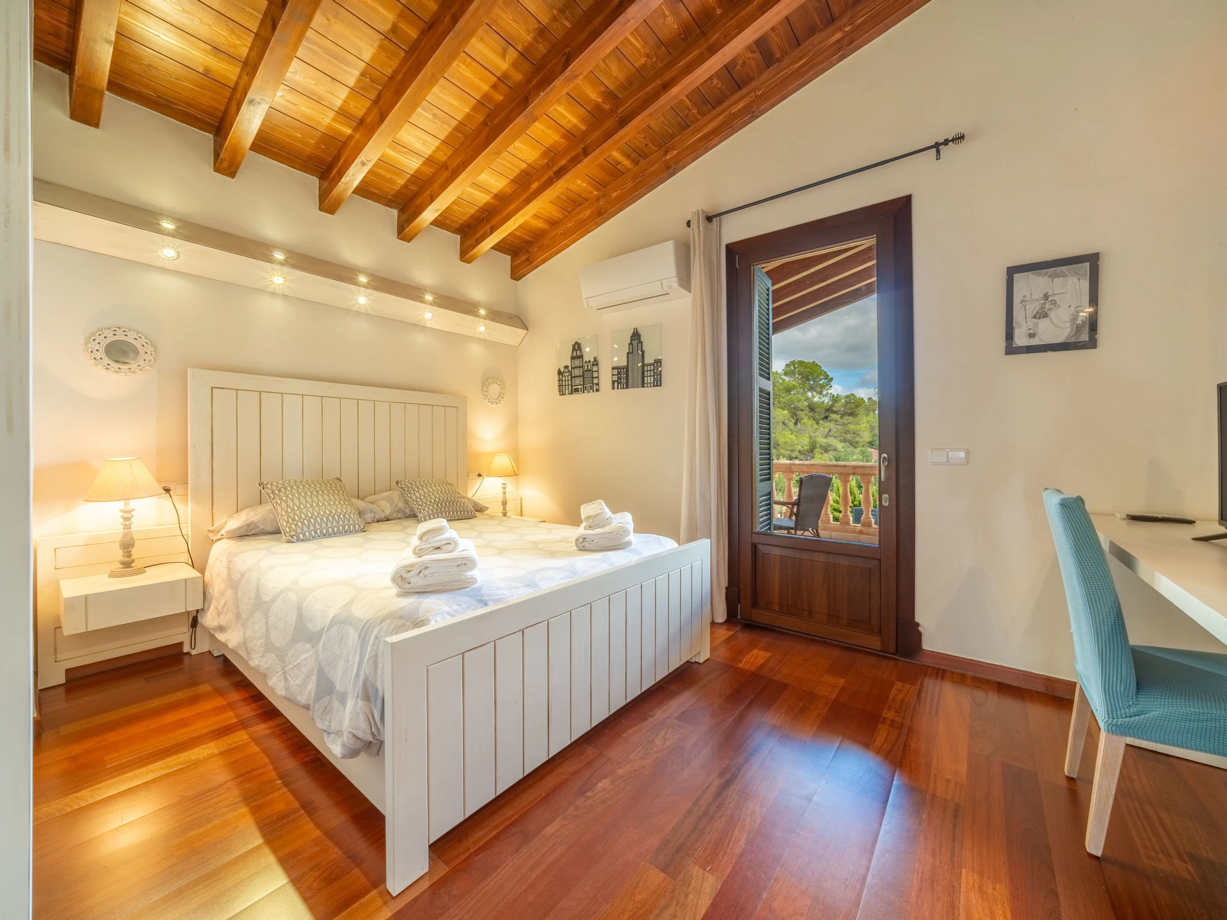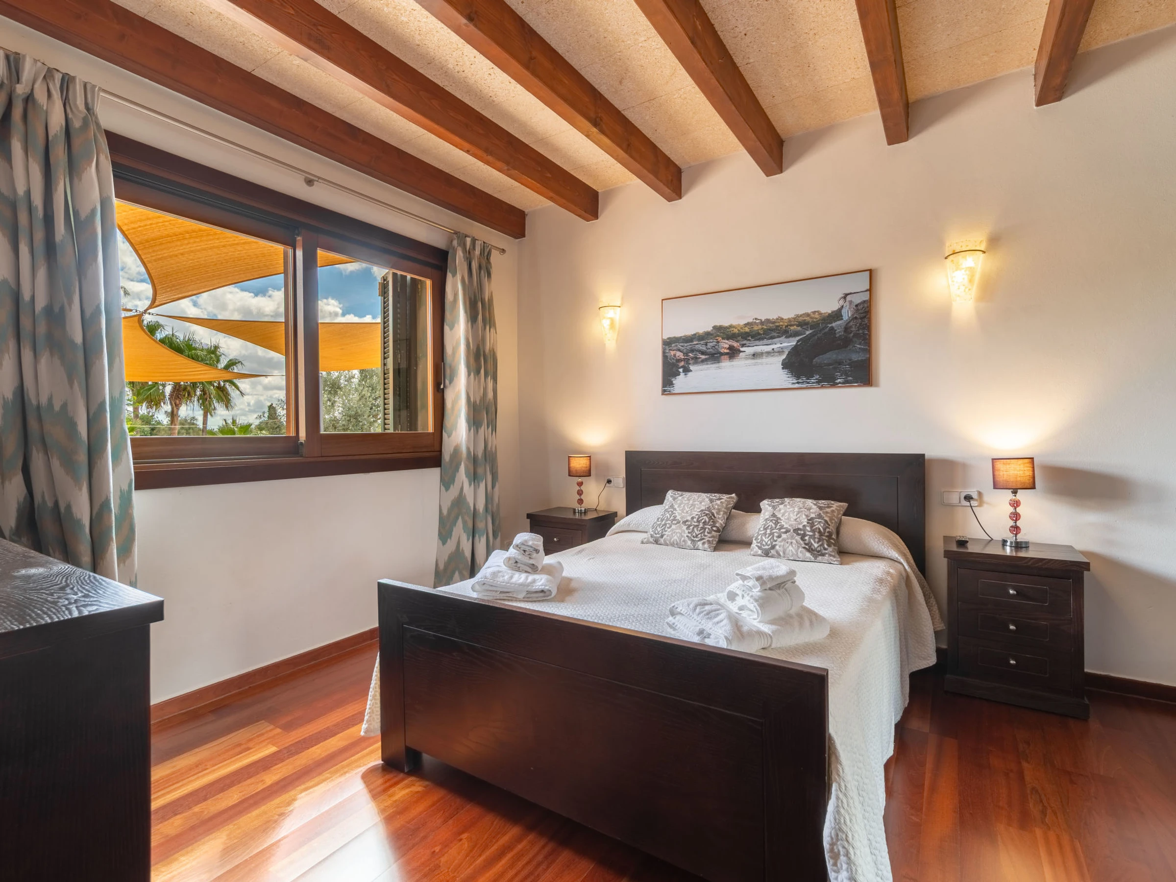 "Son Mainou", villa 5 pièces 270 m2 sur 2 niveaux. Logement idéal pour 4 adultes + 2 enfants. Spacieux et clair, aménagement très confortable et moderne: séjour/salle à manger avec cheminée (uniquement à titre de décoration), TV (satellite), air-conditionné et chauffage à air chaud. Sortie sur le jardinet, sur la piscine. 1 chambre double avec 1 grand-lit (1 x 150 cm, longueur 200 cm), bain/douche/WC, TV (satellite), air-conditionné et chauffage à air chaud. Sortie sur le jardin. Grande cuisine ouverte (four, lave-vaisselle, 4 plaques vitrocéramiques, grille-pain, bouilloire électrique, micro-ondes, cafetière électrique) avec table pour les repas, passe-plat, air-conditionné et chauffage à air chaud. Sortie sur le jardinet. Bains ou douche/WC. À l'étage supérieur: 1 chambre double avec 1 grand-lit (1 x 150 cm, longueur 200 cm), air-conditionné et chauffage à air chaud. 1 grande chambre double avec 1 grand-lit (1 x 150 cm, longueur 200 cm). Sortie sur le balcon. 1 chambre double avec 1 grand-lit (1 x 150 cm, longueur 200 cm), douche/WC, air-conditionné et chauffage à air chaud. Sortie sur le balcon. Sol en pierres naturelles. Jardinet. Meubles de terrasse, barbecue, chaises longues, loggia, place pour s'asseoir. Très belle vue sur les alentours. A disposition: lave-linge, sèche-linge, fer à repasser, chaise haute pour enfant, lit bébé jusqu'à 2 ans, sèche-cheveux. Internet (Connexion WIFI, gratuit). Place de parking près de la maison. Veuillez noter: adapté(e) aux familles. Maison non-fumeur. [hidden]