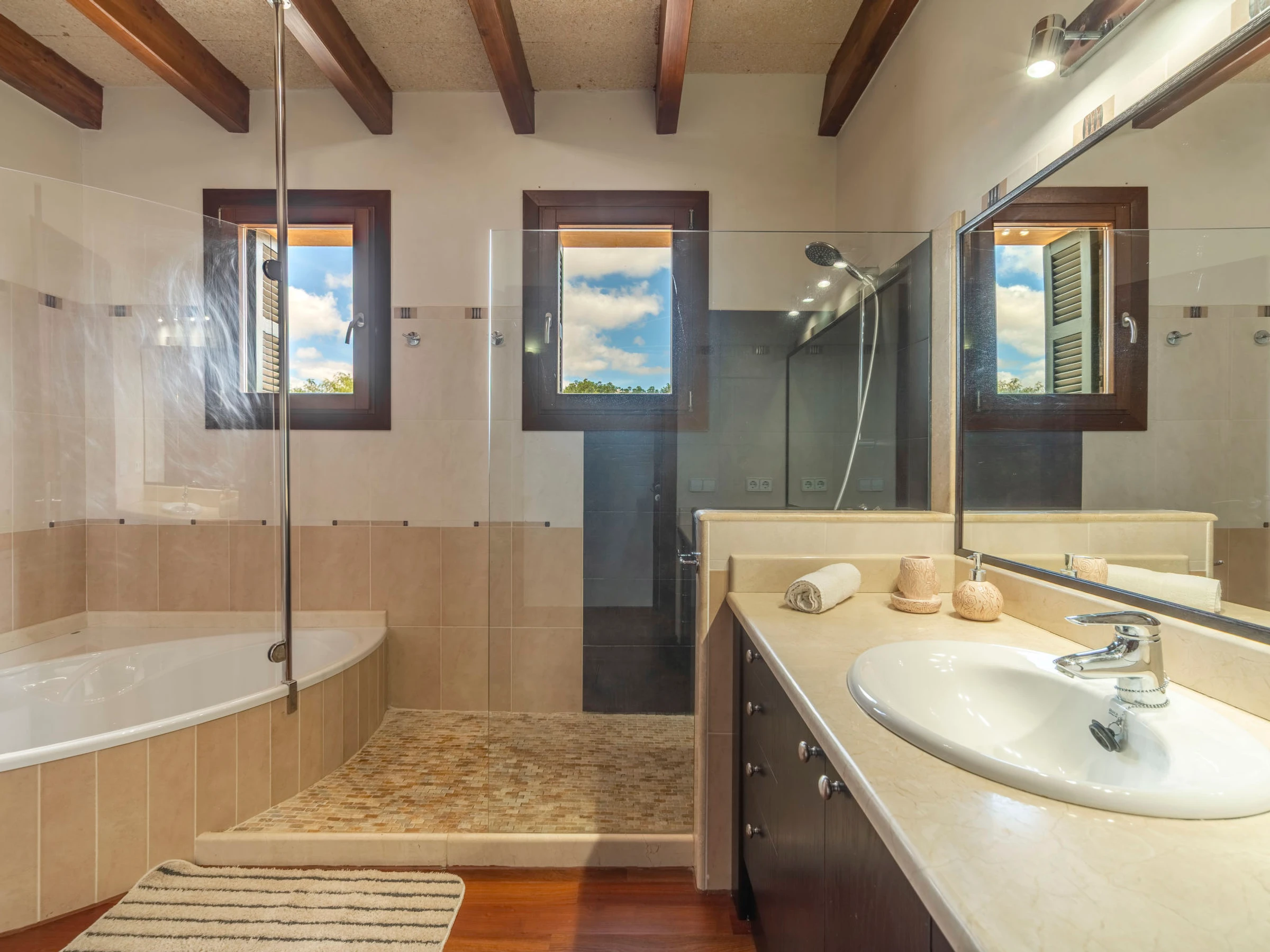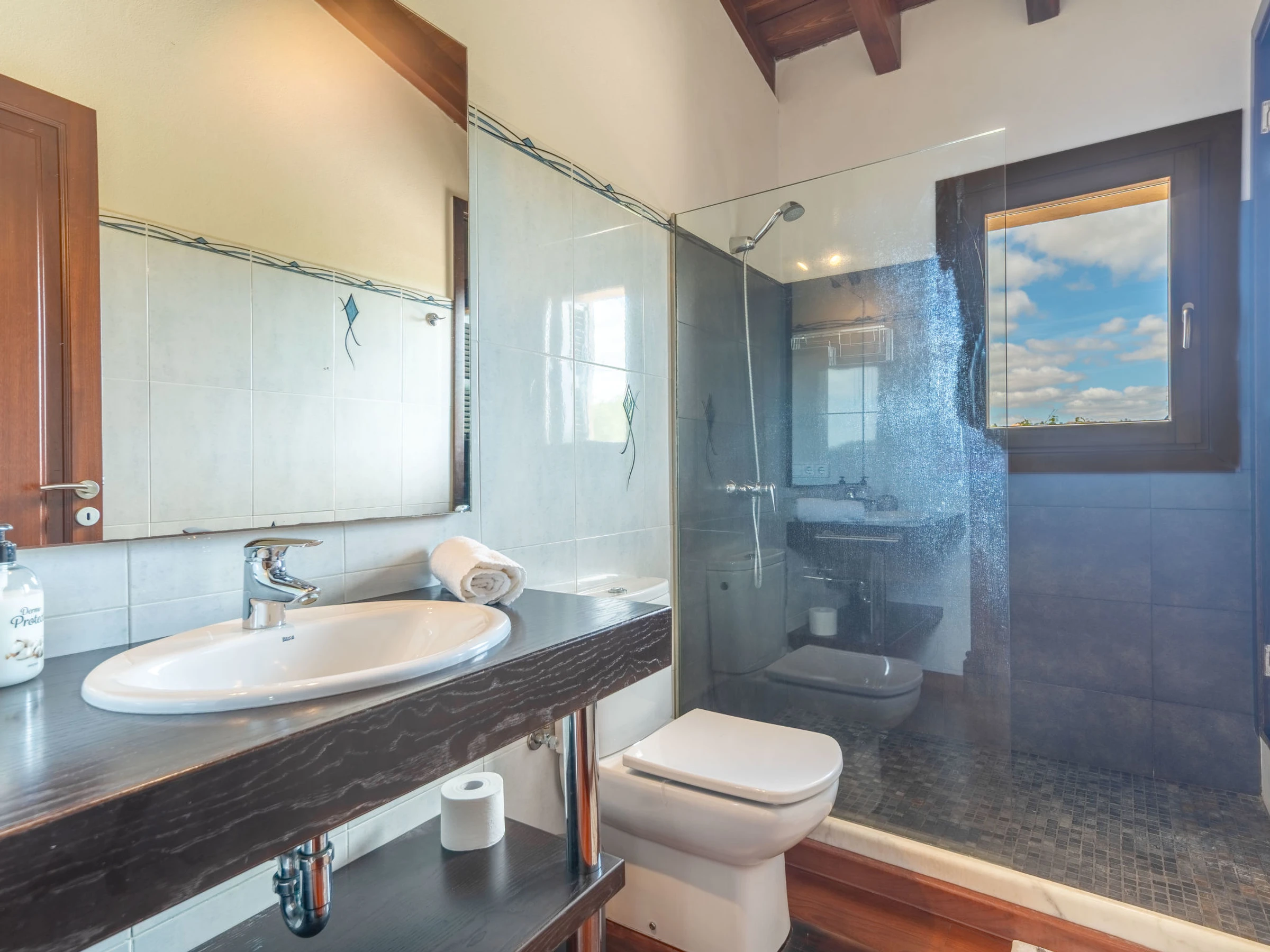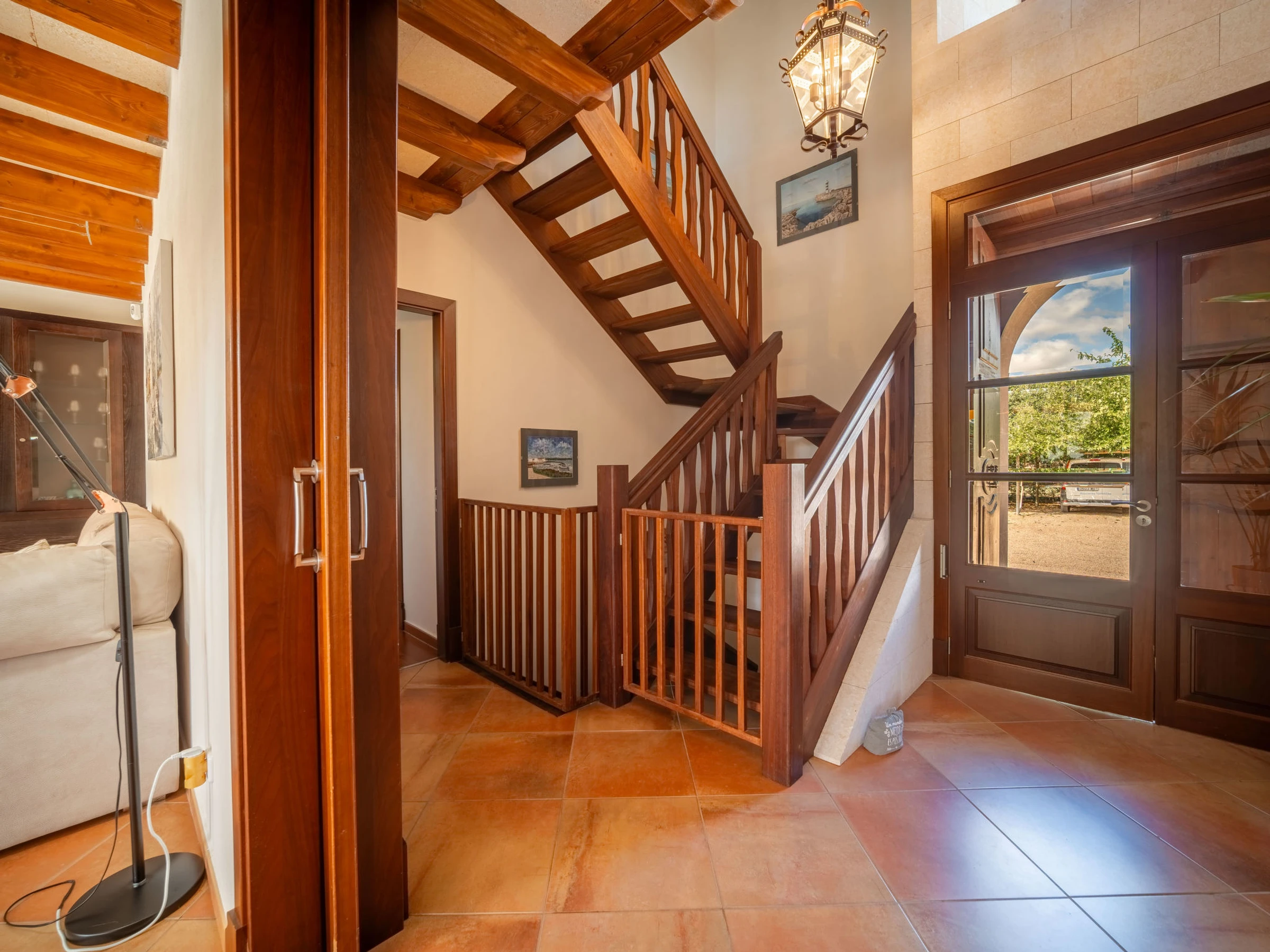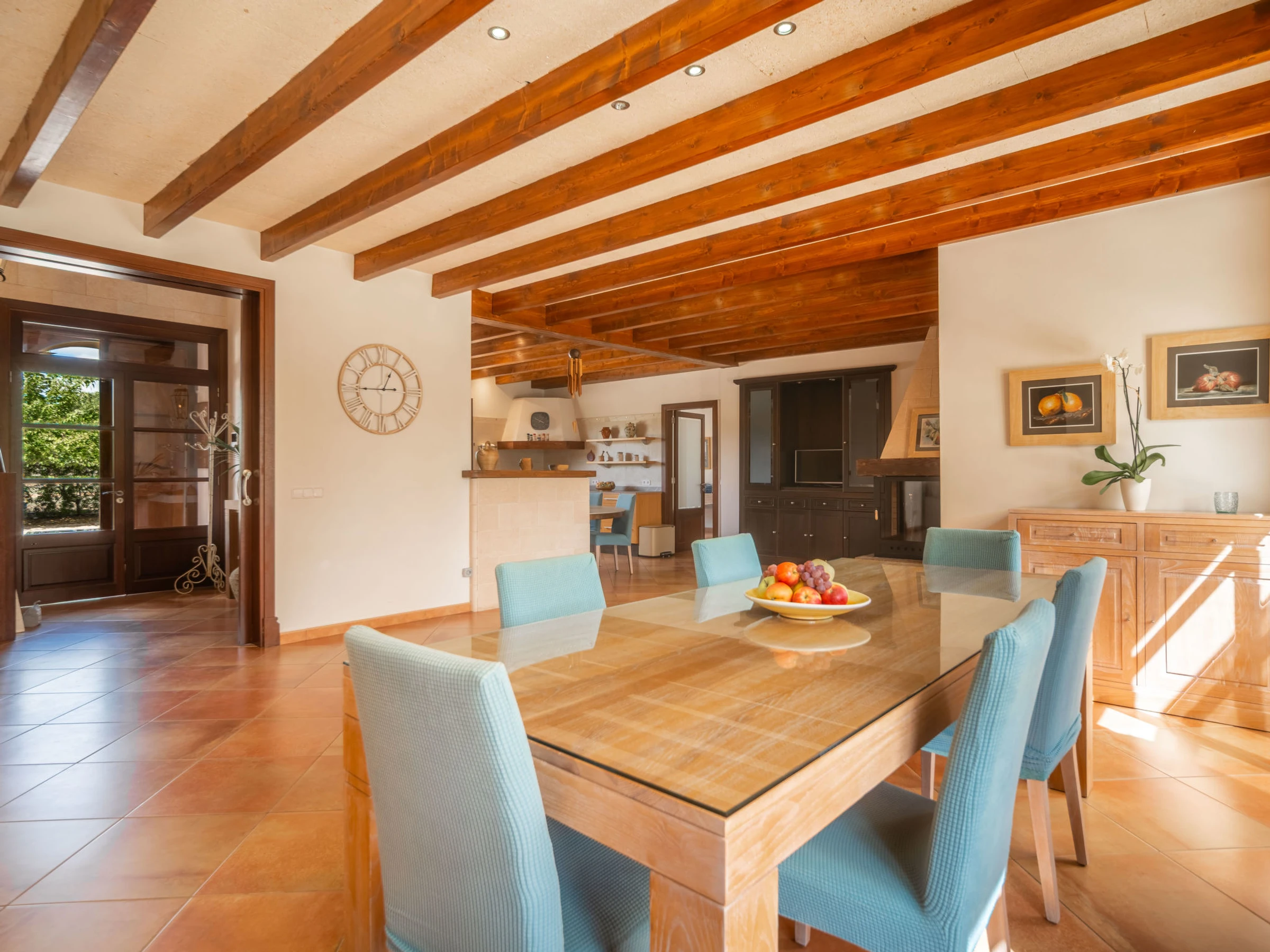 "Son Mainou", villa 5 pièces 270 m2 sur 2 niveaux. Logement idéal pour 4 adultes + 2 enfants. Spacieux et clair, aménagement très confortable et moderne: séjour/salle à manger avec cheminée (uniquement à titre de décoration), TV (satellite), air-conditionné et chauffage à air chaud. Sortie sur le jardinet, sur la piscine. 1 chambre double avec 1 grand-lit (1 x 150 cm, longueur 200 cm), bain/douche/WC, TV (satellite), air-conditionné et chauffage à air chaud. Sortie sur le jardin. Grande cuisine ouverte (four, lave-vaisselle, 4 plaques vitrocéramiques, grille-pain, bouilloire électrique, micro-ondes, cafetière électrique) avec table pour les repas, passe-plat, air-conditionné et chauffage à air chaud. Sortie sur le jardinet. Bains ou douche/WC. À l'étage supérieur: 1 chambre double avec 1 grand-lit (1 x 150 cm, longueur 200 cm), air-conditionné et chauffage à air chaud. 1 grande chambre double avec 1 grand-lit (1 x 150 cm, longueur 200 cm). Sortie sur le balcon. 1 chambre double avec 1 grand-lit (1 x 150 cm, longueur 200 cm), douche/WC, air-conditionné et chauffage à air chaud. Sortie sur le balcon. Sol en pierres naturelles. Jardinet. Meubles de terrasse, barbecue, chaises longues, loggia, place pour s'asseoir. Très belle vue sur les alentours. A disposition: lave-linge, sèche-linge, fer à repasser, chaise haute pour enfant, lit bébé jusqu'à 2 ans, sèche-cheveux. Internet (Connexion WIFI, gratuit). Place de parking près de la maison. Veuillez noter: adapté(e) aux familles. Maison non-fumeur. [hidden]