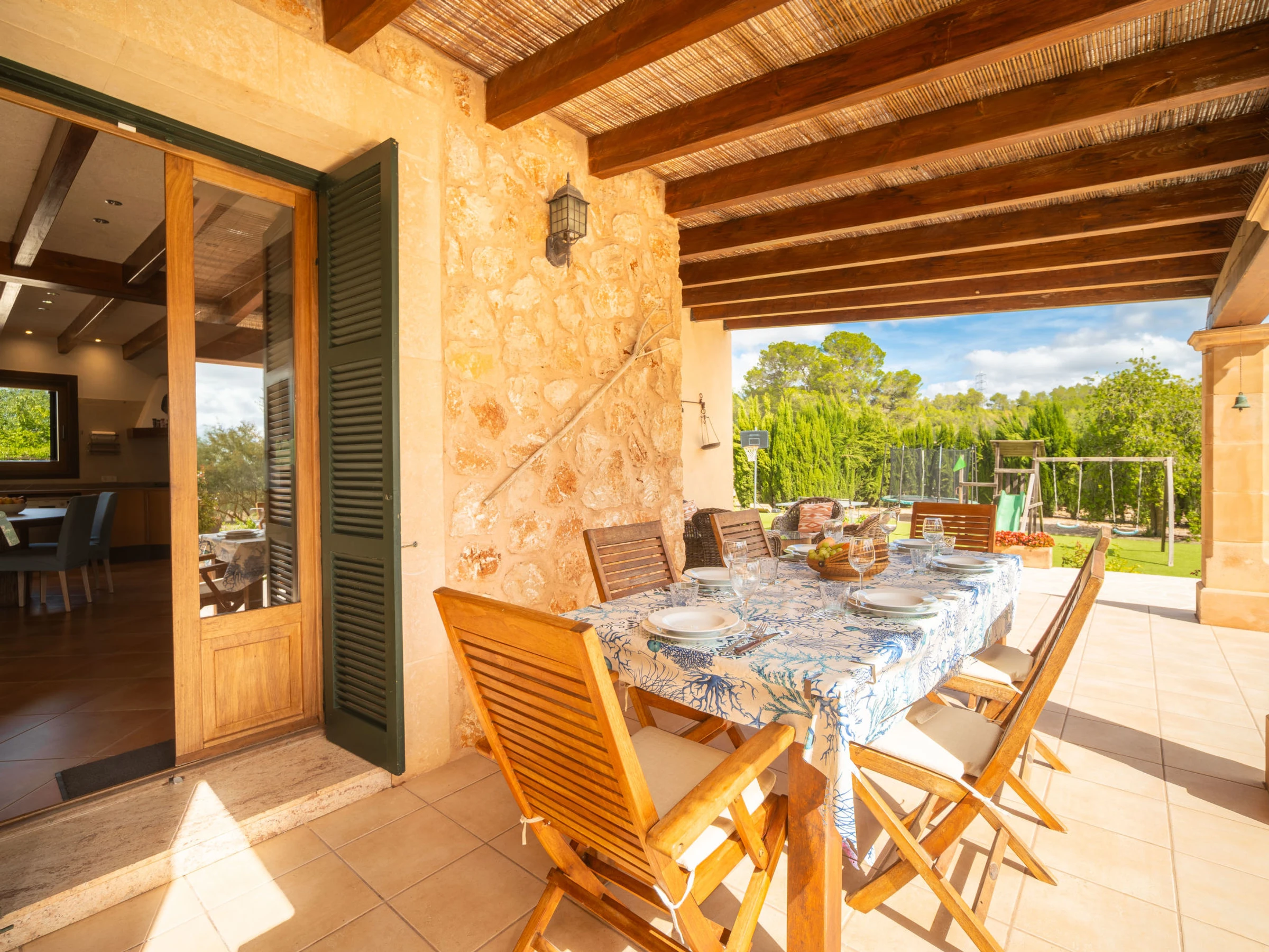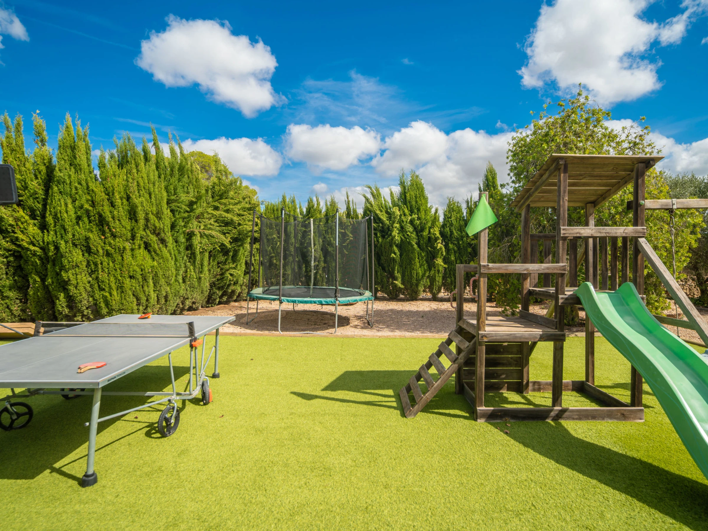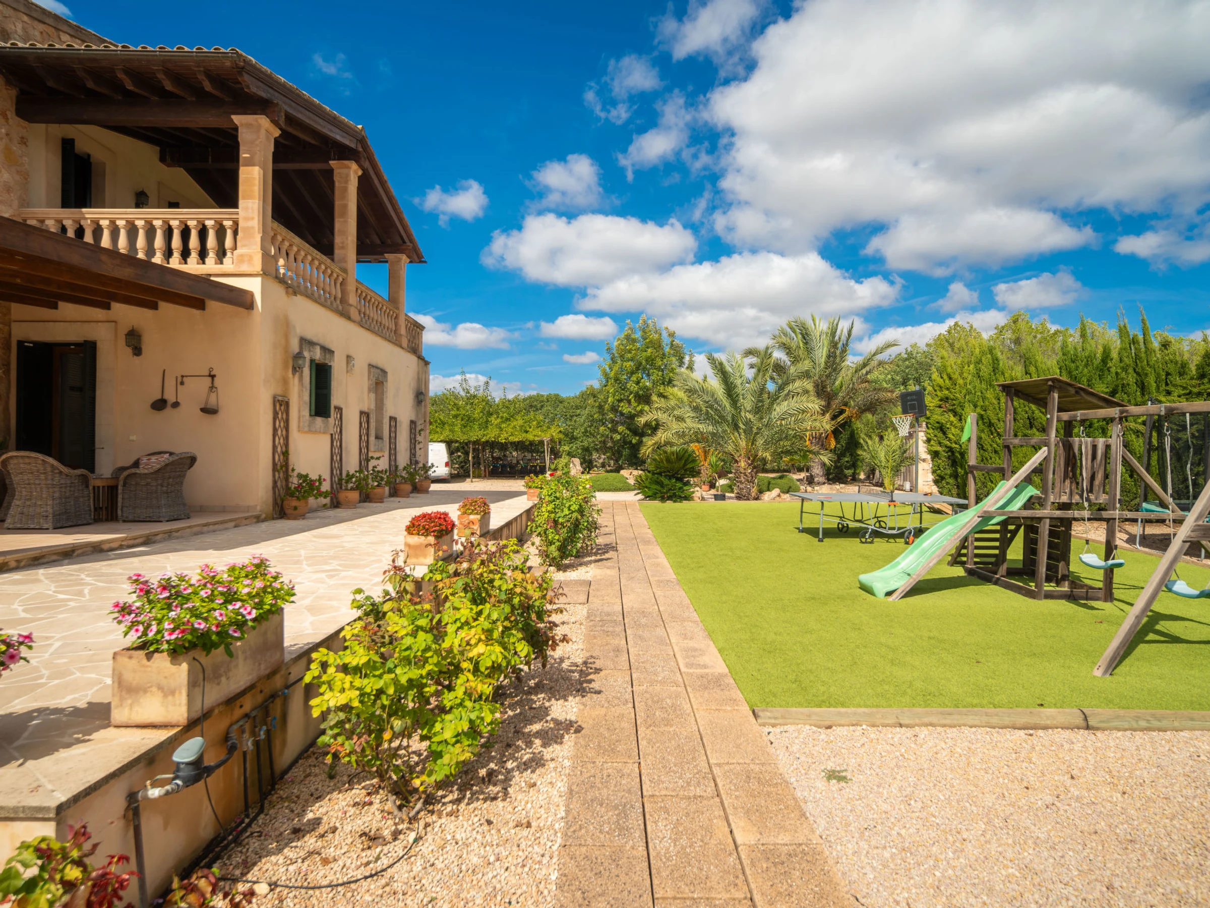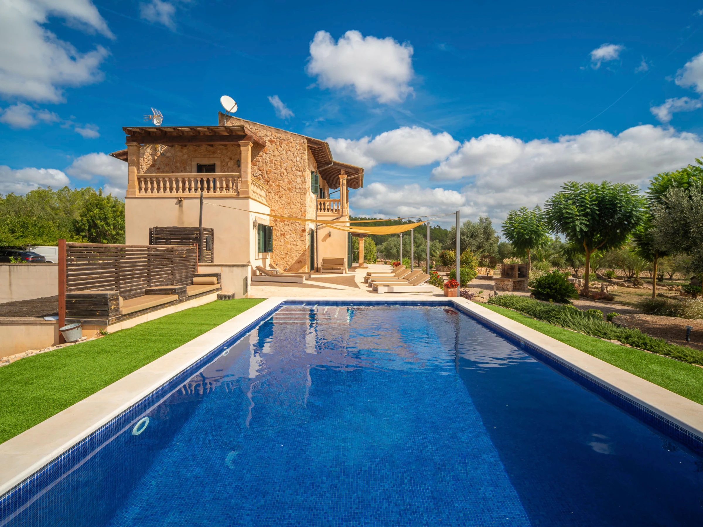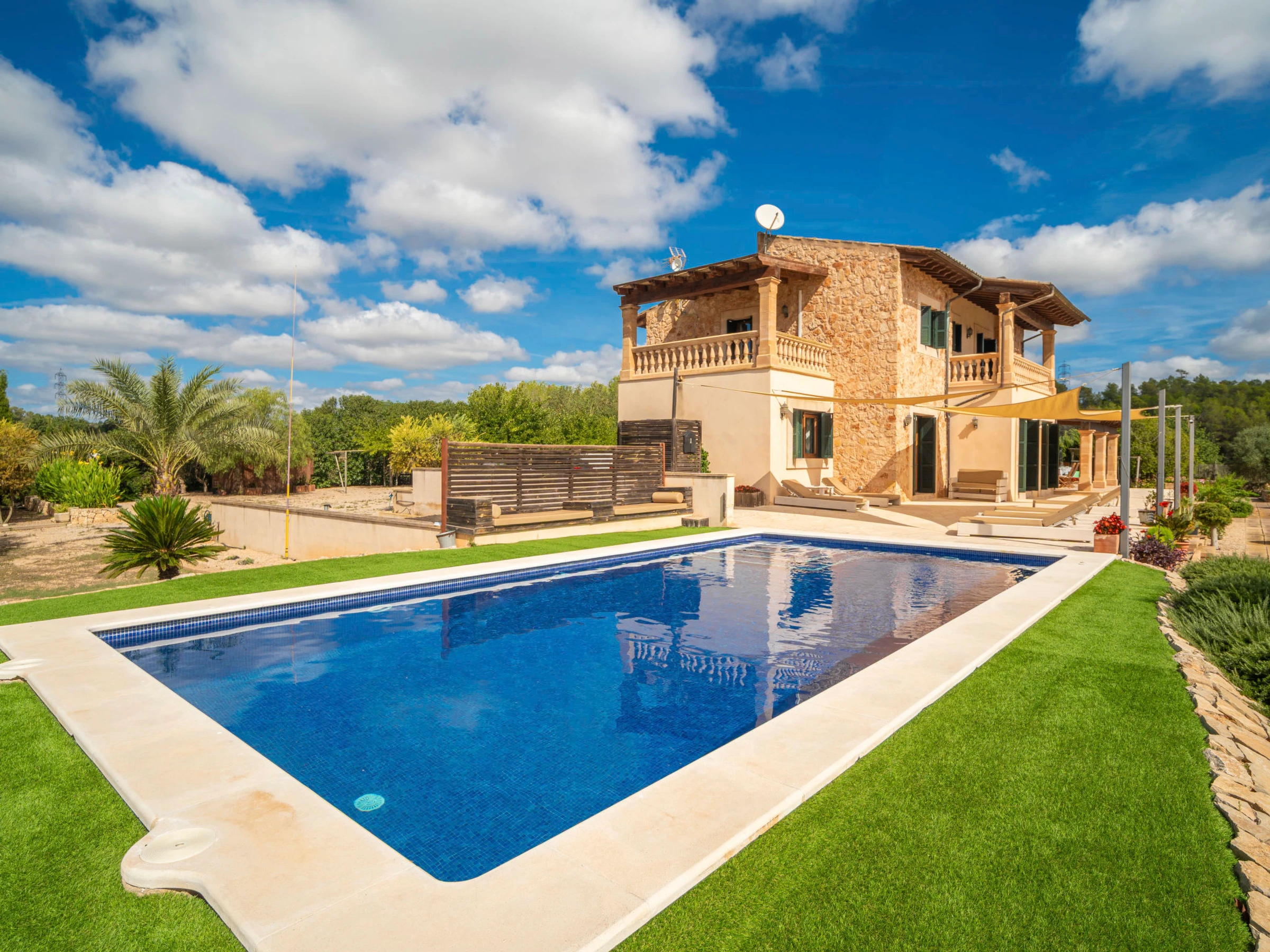 Porreras à 10 km de Campos: Grand domaine moderne, confortable "Son Mainou", de 2 étages, environné par les champs. En-dehors de la localité, à 3.5 km du centre de Porreres, situation tranquille, ensoleillée, à 19 km de la mer, à 20 km de la plage, dans la verdure. A usage privé: terrain à l'état naturel (clôturé), jardin avec plantes et arbres, piscine rectangulaire (10 x 5 m, profondeur 120 - 180 cm, disponibilité saisonnière: [hidden] - [hidden] Douche extérieure, ping-pong, jardinet, tonnelle, pergola, meubles de jardin, barbecue, espace de jeux pour les enfants (toboggan, balançoire), entretien de la piscine par le propriétaire/jardinier. Infrastructures de la Maison: accès internet, Connexion WIFI, bain à remous , ping-pong, blanchisserie, lave-linge, sèche-linge. Place de parking près de la maison sur le terrain. Supermarché 3.4 km, restaurant 3.3 km, bar 3.3 km, boulangerie 3.4 km, centre à 35 minutes à pieds, arrêt de bus "Ronda de l'Estació 1 (43006)" 3.5 km, plage de sable "Arenal de Sa Ràpita - Es Trenc" 25 km. Port plaisance 20.6 km, terrain de golf (18 trous) 29 km, piste cyclable 150 m. Attractions à proximité: Palma City 43 km, Pueblos de Porreres-Campos-Felanitx, Colonia Sant Jordi 23 km, Portopetro 32 km, Santuario de Lluc 52 km, Santuario de Montision 3.9 km. Région de randonnées: Serra de Tramuntana. Veuillez noter: voiture recommandée, sans ascenseur. Adapté(e) aux familles. Bien convenant à 6 adultes. Le propriétaire n'accepte pas les groupes de jeunes. Sur le terrain des animaux. Aéroport 40 km de la maison. L'eau du robinet n'est pas potable.