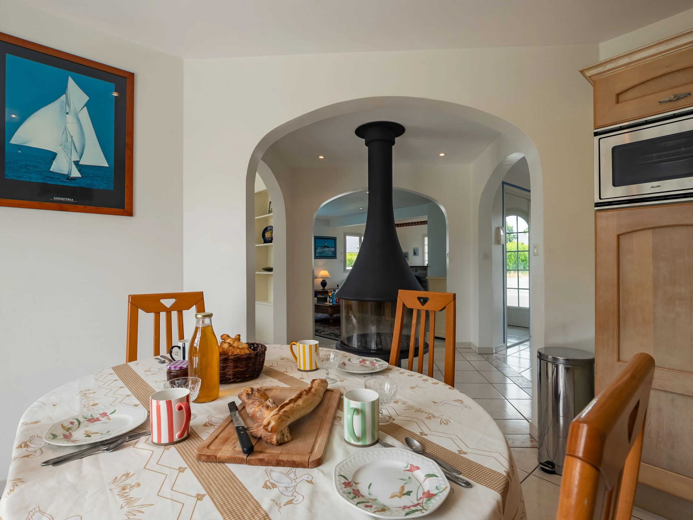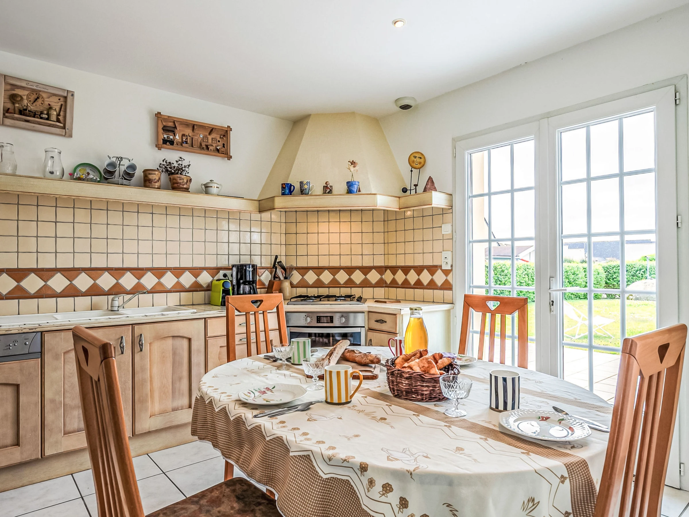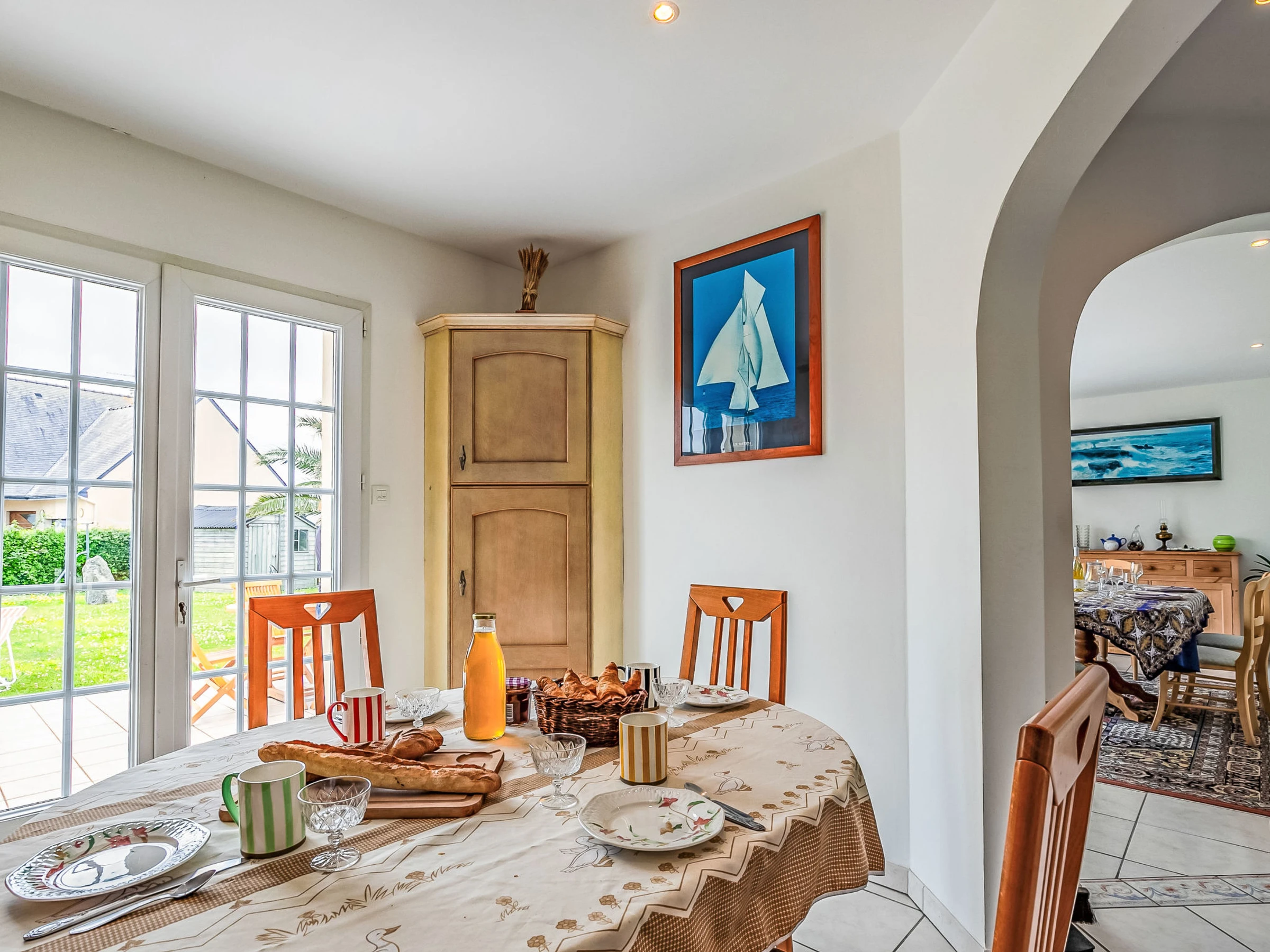 "Ty Stella", maison 6 pièces 140 m2 sur 2 niveaux. Spacieux et clair, aménagement confortable et de bon goût: grand séjour/salle à manger 50 m2, ouvert avec cheminée (uniquement à titre de décoration), TV et écran plat. Sortie sur la terrasse. Grande cuisine ouverte 12 m2 (four, lave-vaisselle, 4 feux, grille-pain, bouilloire électrique, micro-ondes, cafetière électrique, Capsules pour machine à café (Nespresso) (NON INCLUSES)) avec table pour les repas. Sortie sur le jardin, sur la terrasse. WC séparé. À l'étage supérieur: 1 chambre 20 m2 avec 1 grand-lit (160 cm, longueur 200 cm). 2 chambres 12 m2, chaque chambre avec: 1 grand-lit (140 cm, longueur 190 cm). Salle de bains, WC séparé. Chauffage électrique. Grande terrasse 30 m2, situation sud. Meubles de terrasse, barbecue (portable), chaises longues (2). A disposition: lave-linge, sèche-linge, lit bébé jusqu'à 2 ans, sèche-cheveux. Internet (Connexion WIFI, gratuit). Veuillez noter: maison non-fumeur. Maximum 1 animal/ chien autorisé. Détecteur de fumée. Annonce d'un particulier (art 155, IV du CGI).
