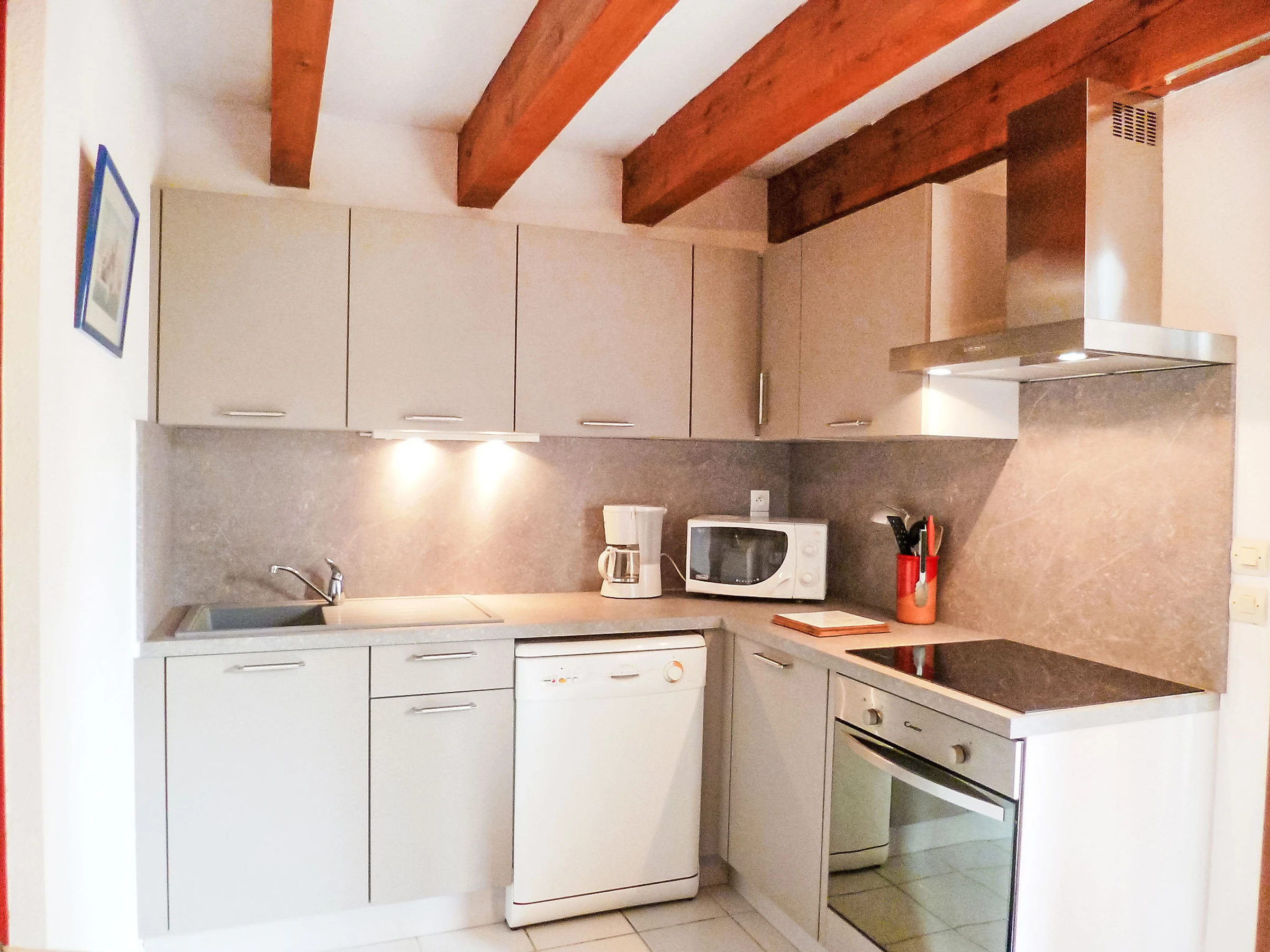 Maison mitoyenne 3 pièces 37 m2 sur 2 niveaux. Aménagement fonctionnel: séjour/salle à manger avec TV. Sortie sur la terrasse. Coin cuisine (four, lave-vaisselle, 4 plaques vitrocéramiques, micro-ondes, congélateur). Douche, WC séparé. Pas de chauffage. À l'étage supérieur: 1 chambre avec 1 grand-lit (140 cm, longueur 190 cm). 1 chambre avec 2 lits (80 cm). Terrasse 20 m2, situation sud. Meubles de terrasse, barbecue. A disposition: lave-linge. Internet (Connexion WIFI, en sus). Place de parking. Veuillez noter: détecteur de fumée.