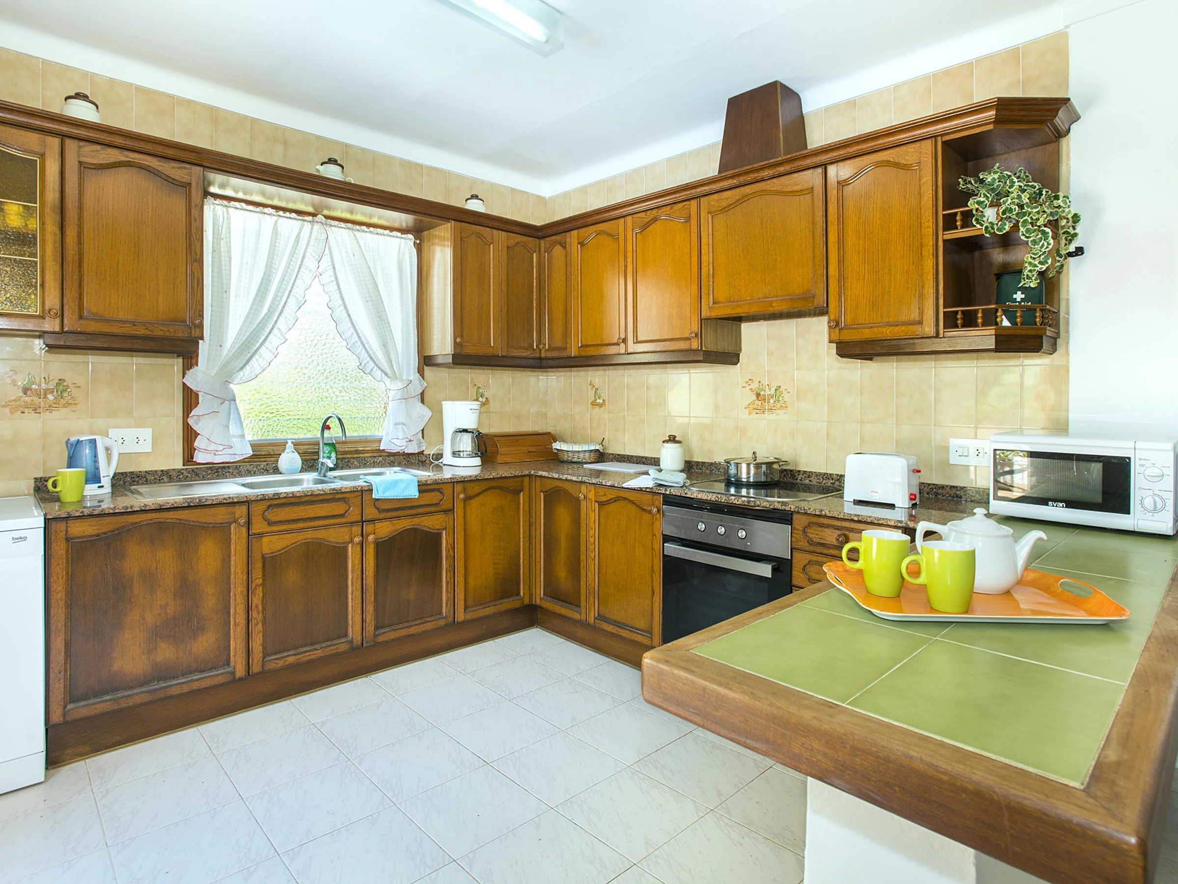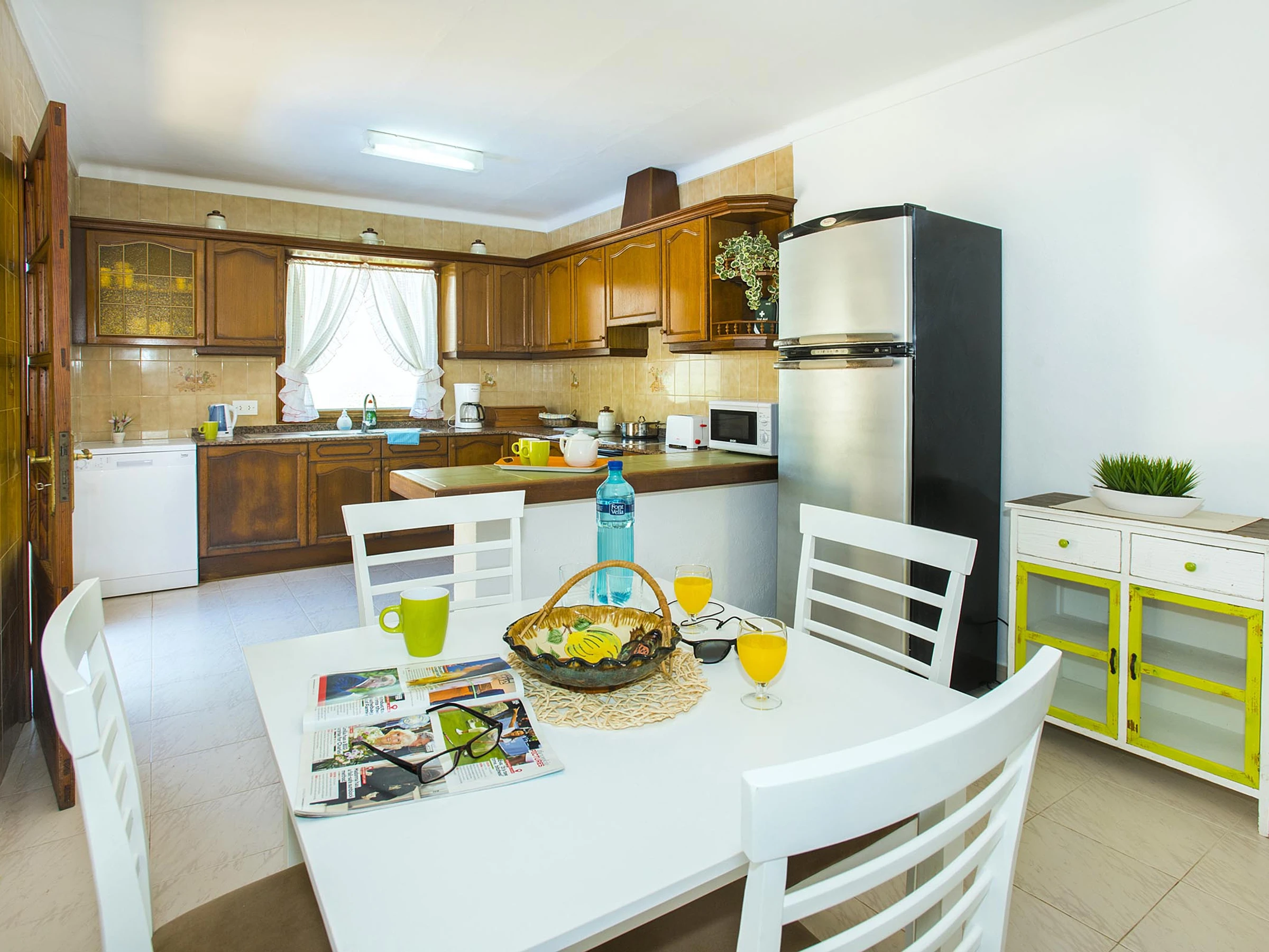 La cuisine indépendante, est équipée avec réfrigérateur, micro-ondes, four, congelateur, lave-linge, lave-vaisselle, vaisselle/couvert, ustensiles/cuisine, cafetière, grille pain, bouilloire et presse-agrumes.