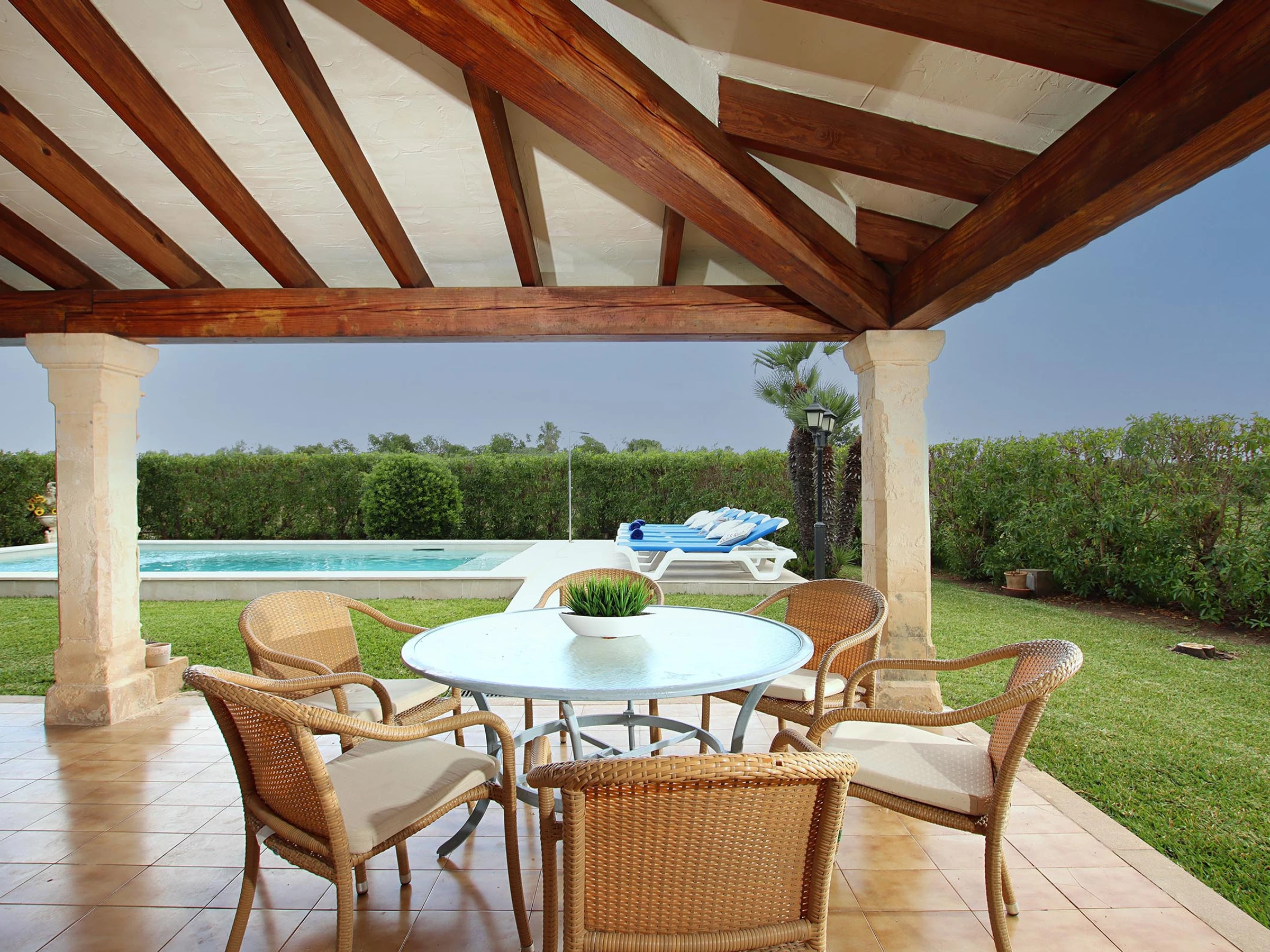 Elle dispose de jardin, mobilier de jardin, terrasse, barbecue, fer à repasser, coffre-fort, accès internet (wifi), climatisation, piscine privée, parking extérieur même bâtiment, tv satellite (Langues: Espagnol, Anglais, Allemand).