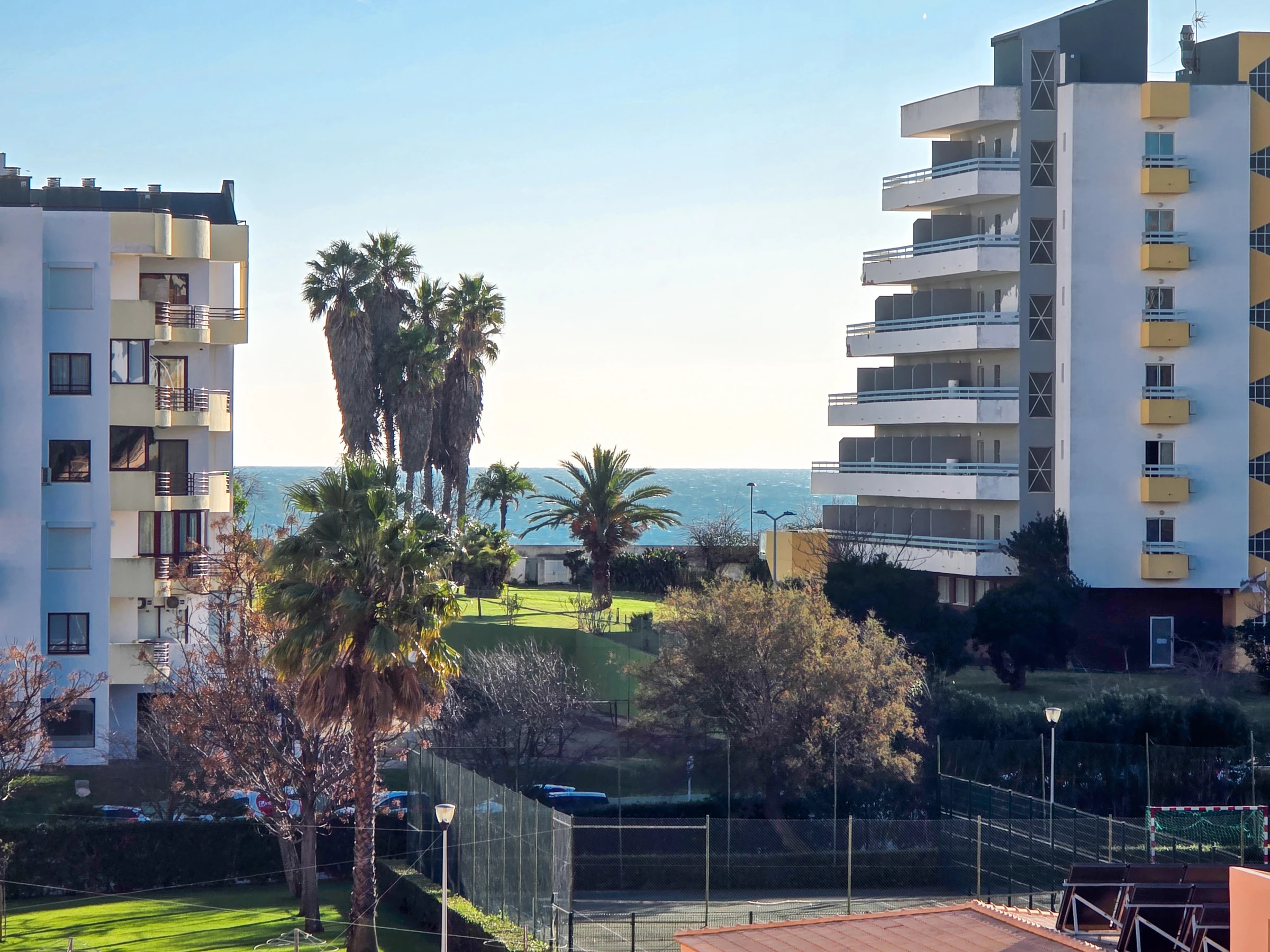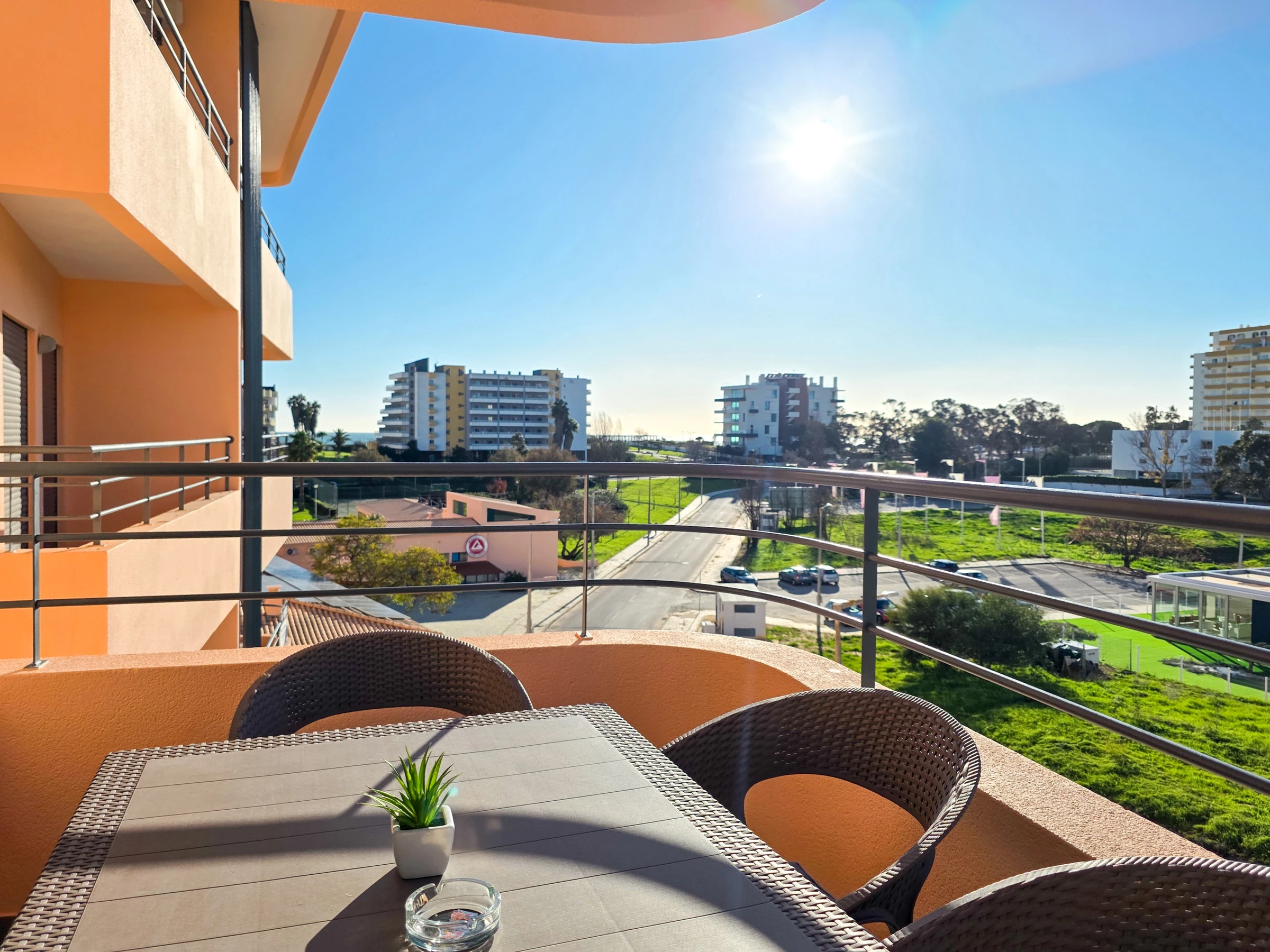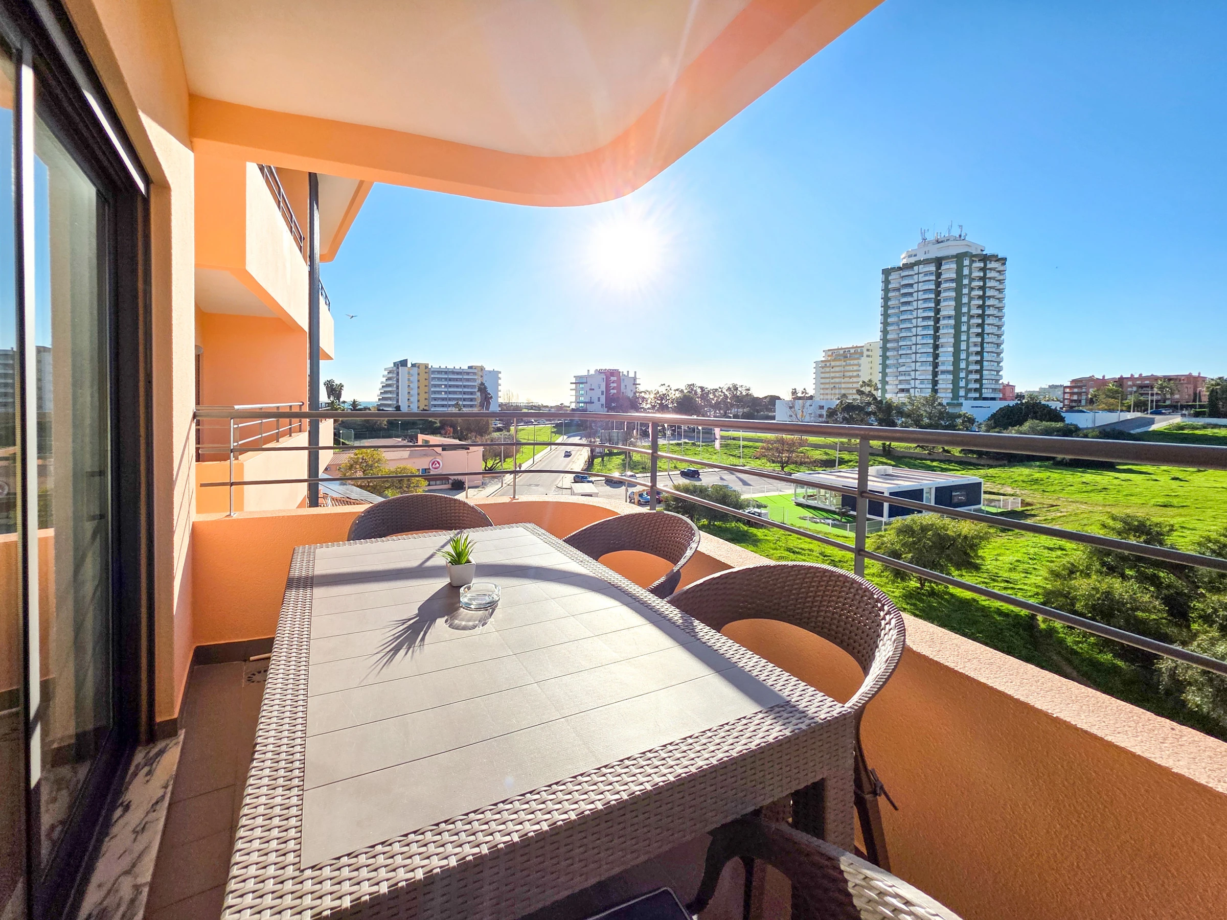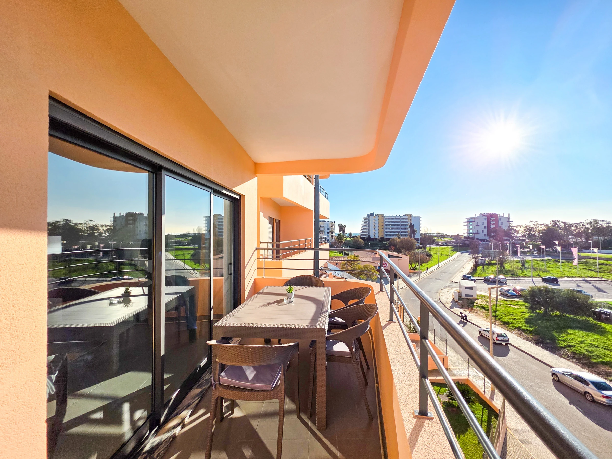 La chambre et le salon ont accès à un balcon avec vue sur Praia da Rocha.