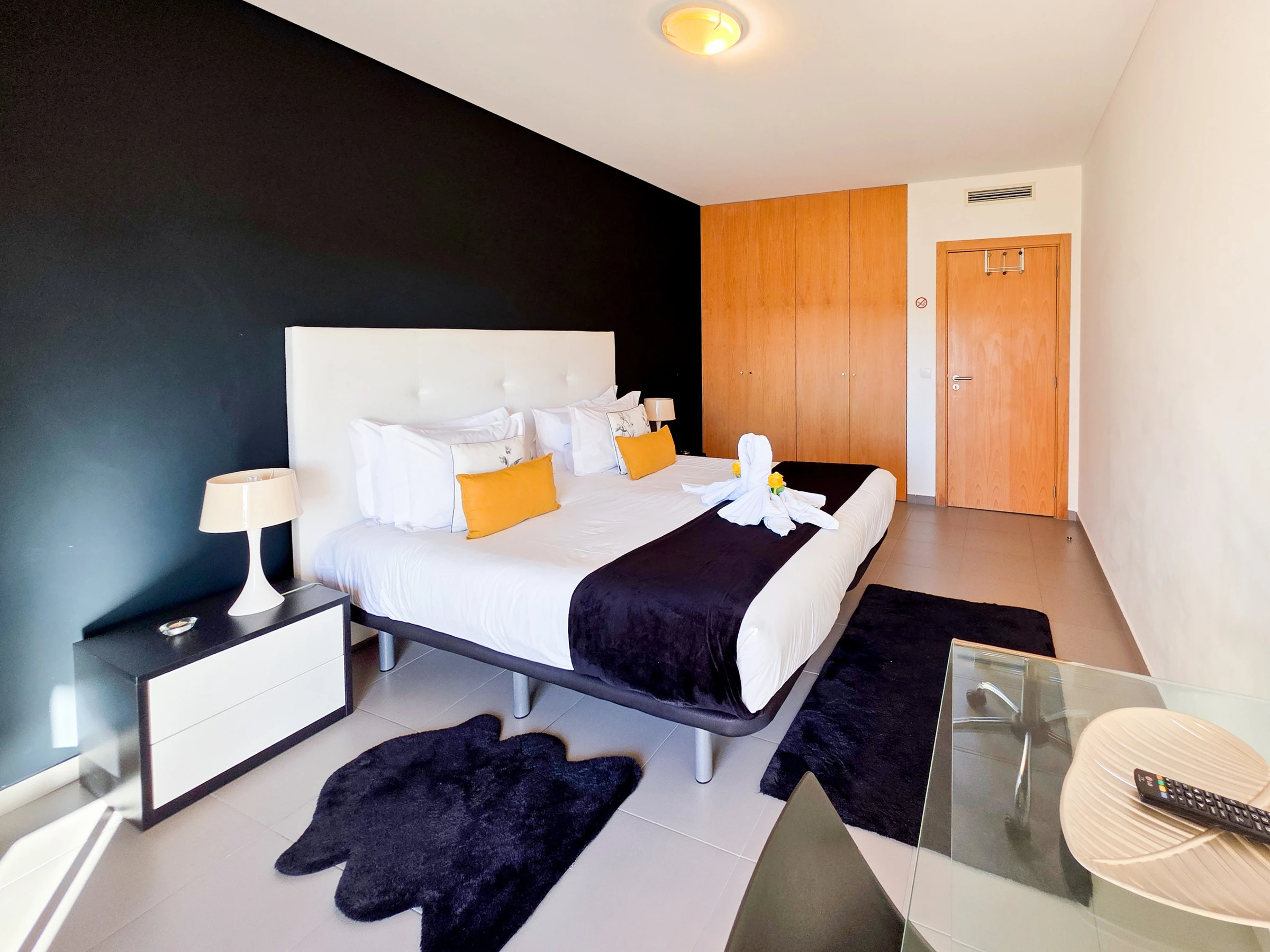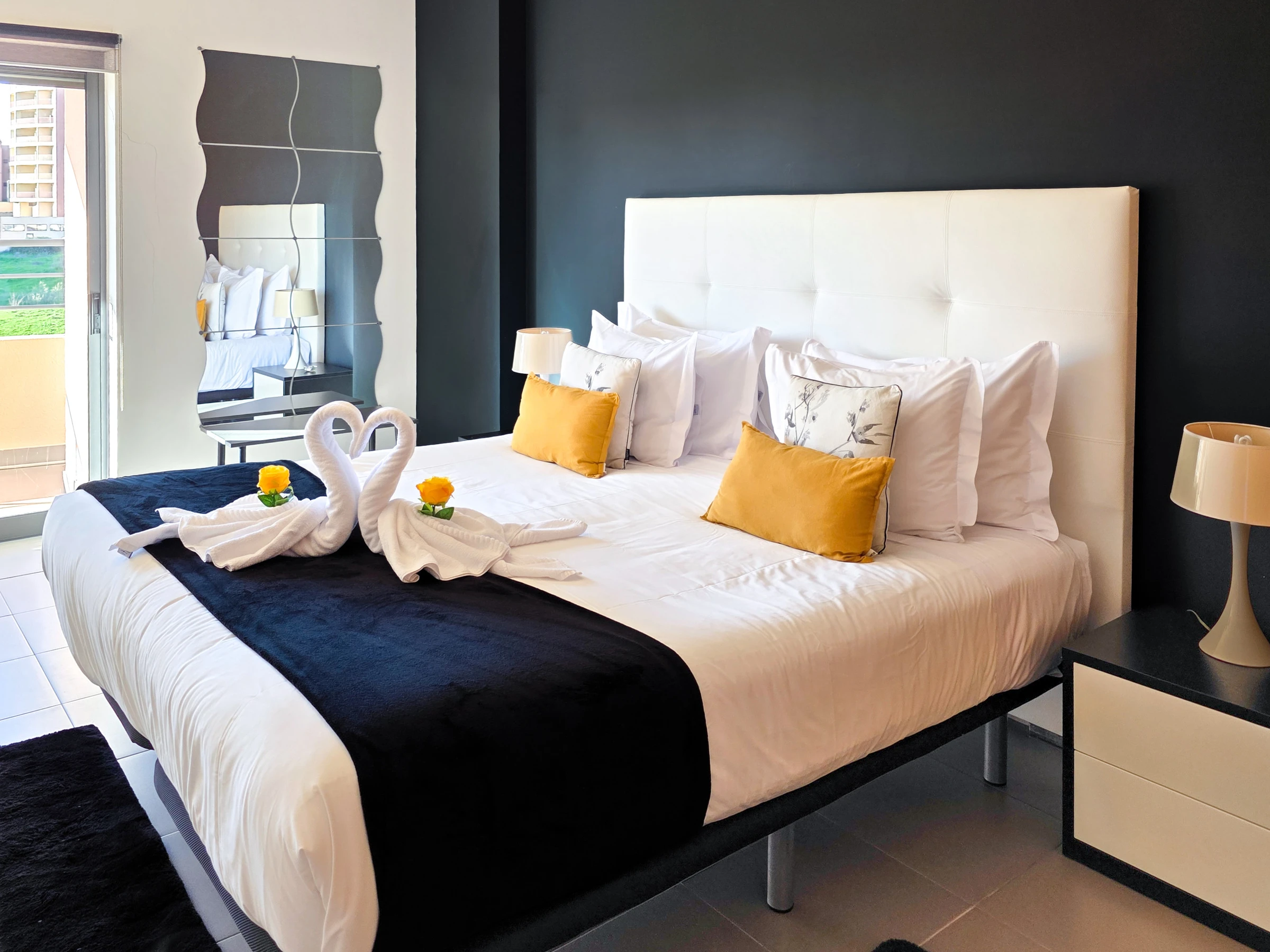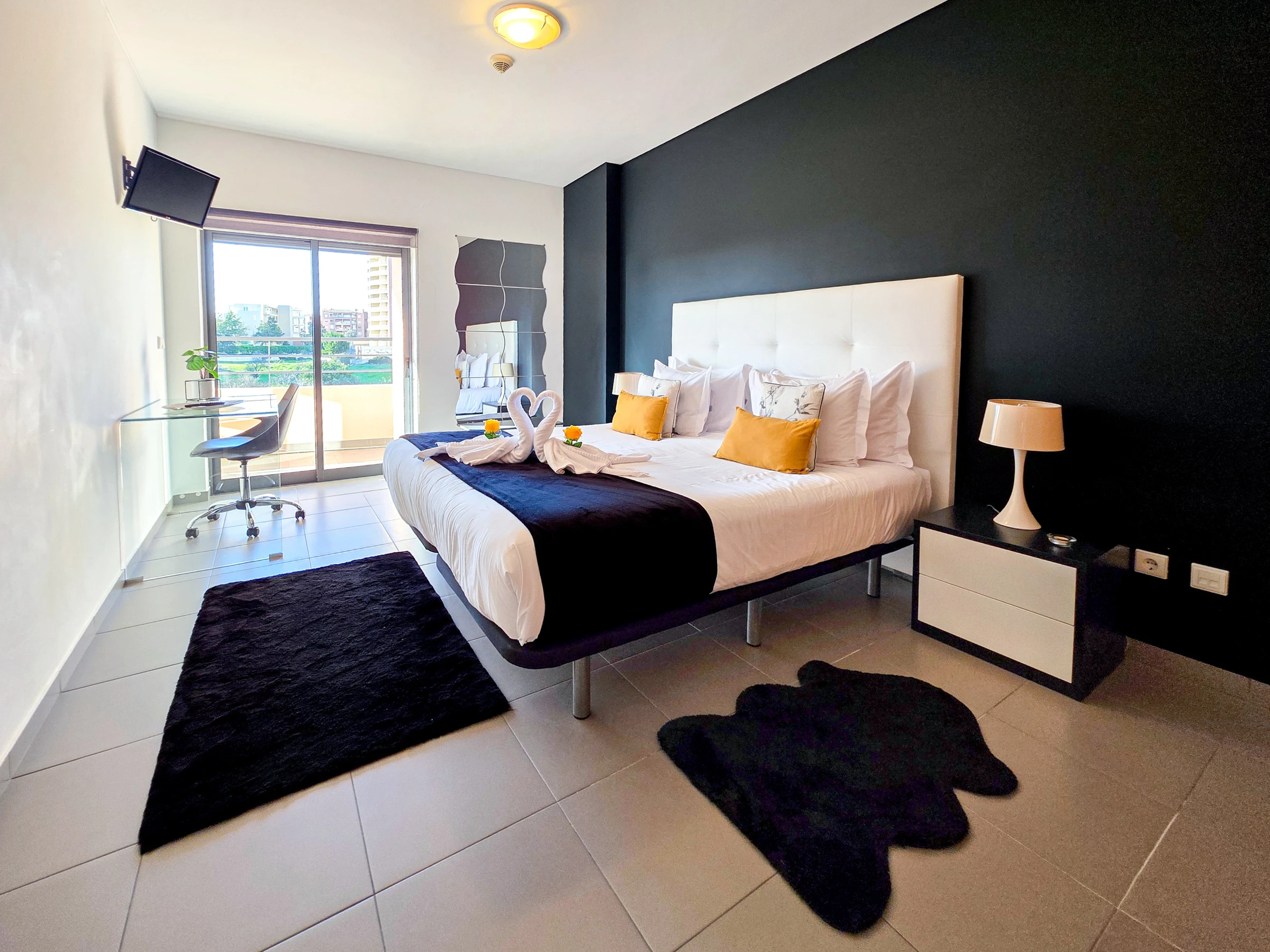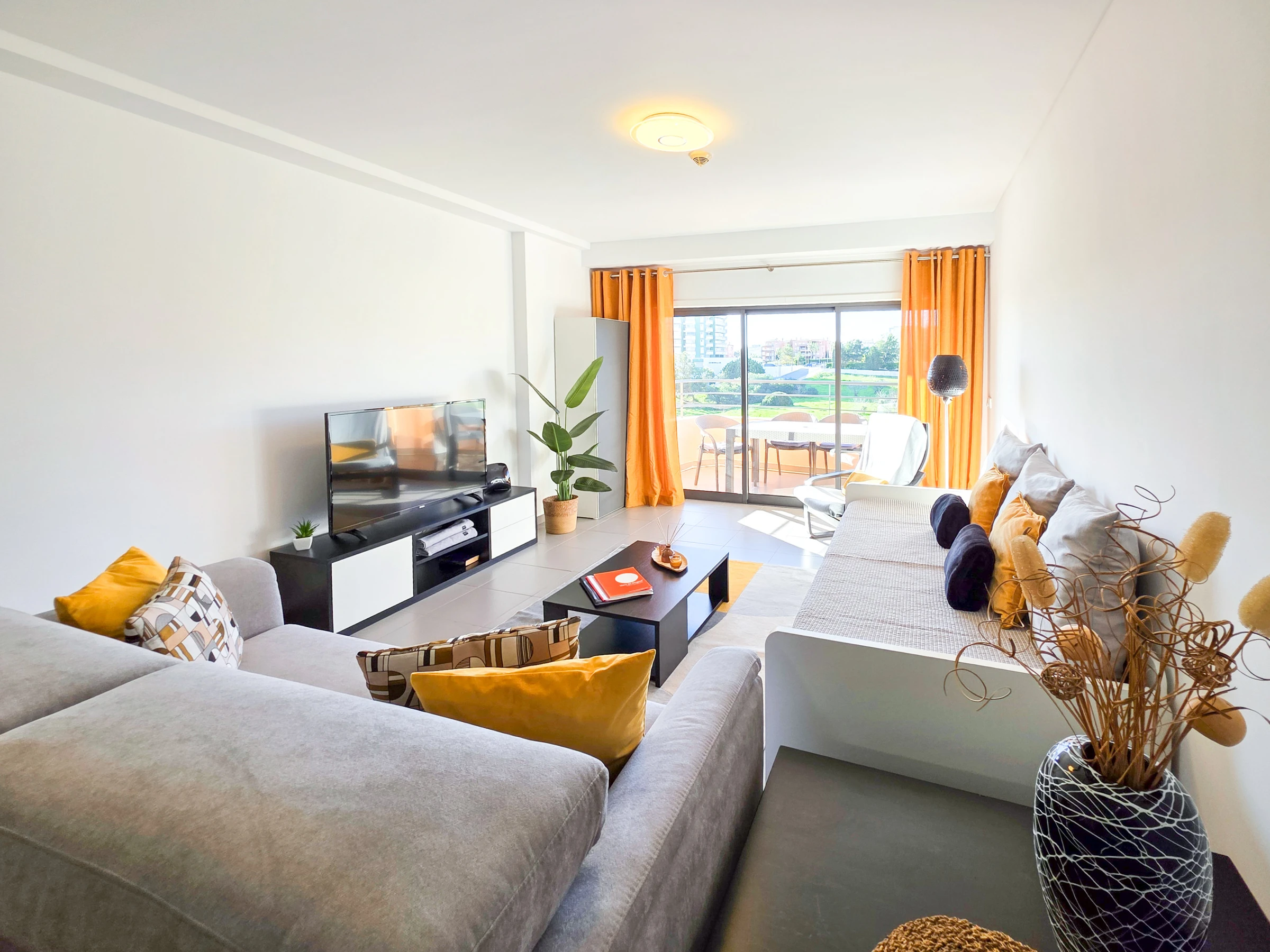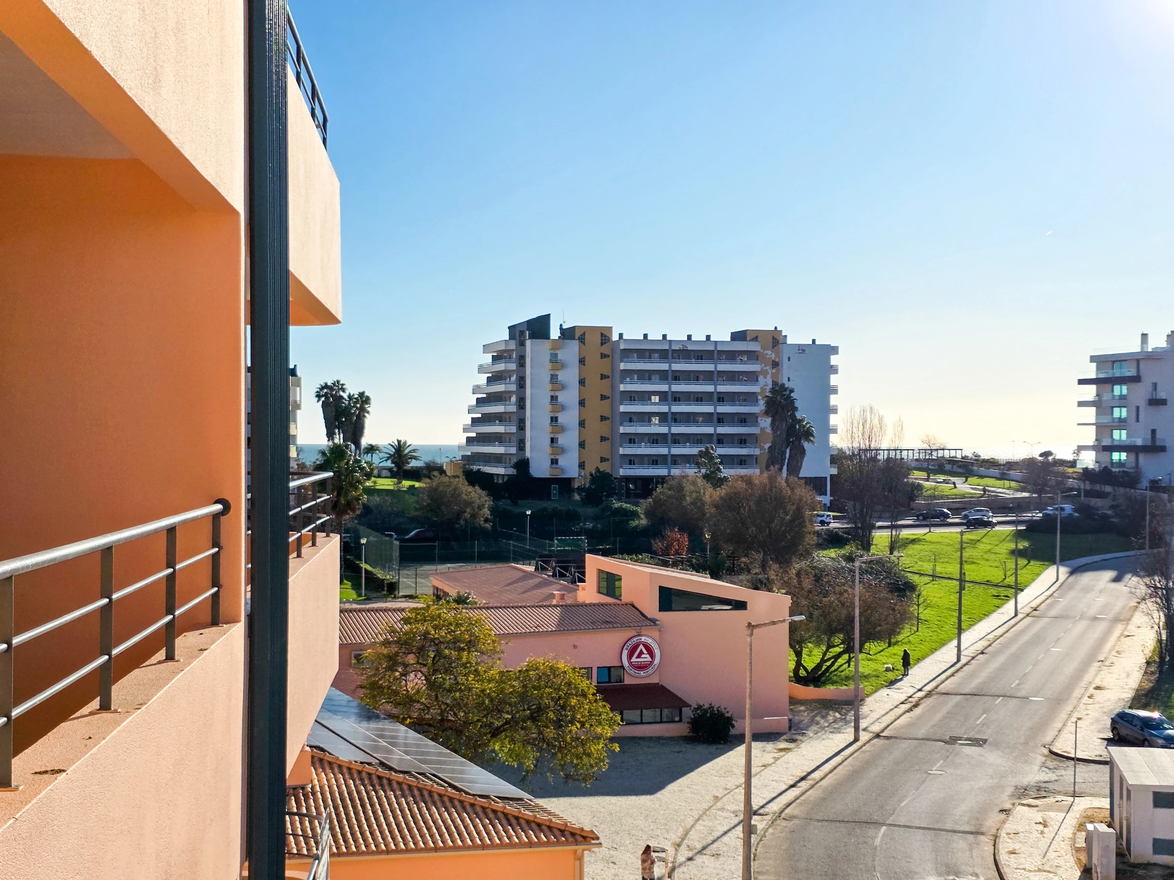 La chambre et le salon ont accès à un balcon avec vue sur Praia da Rocha.