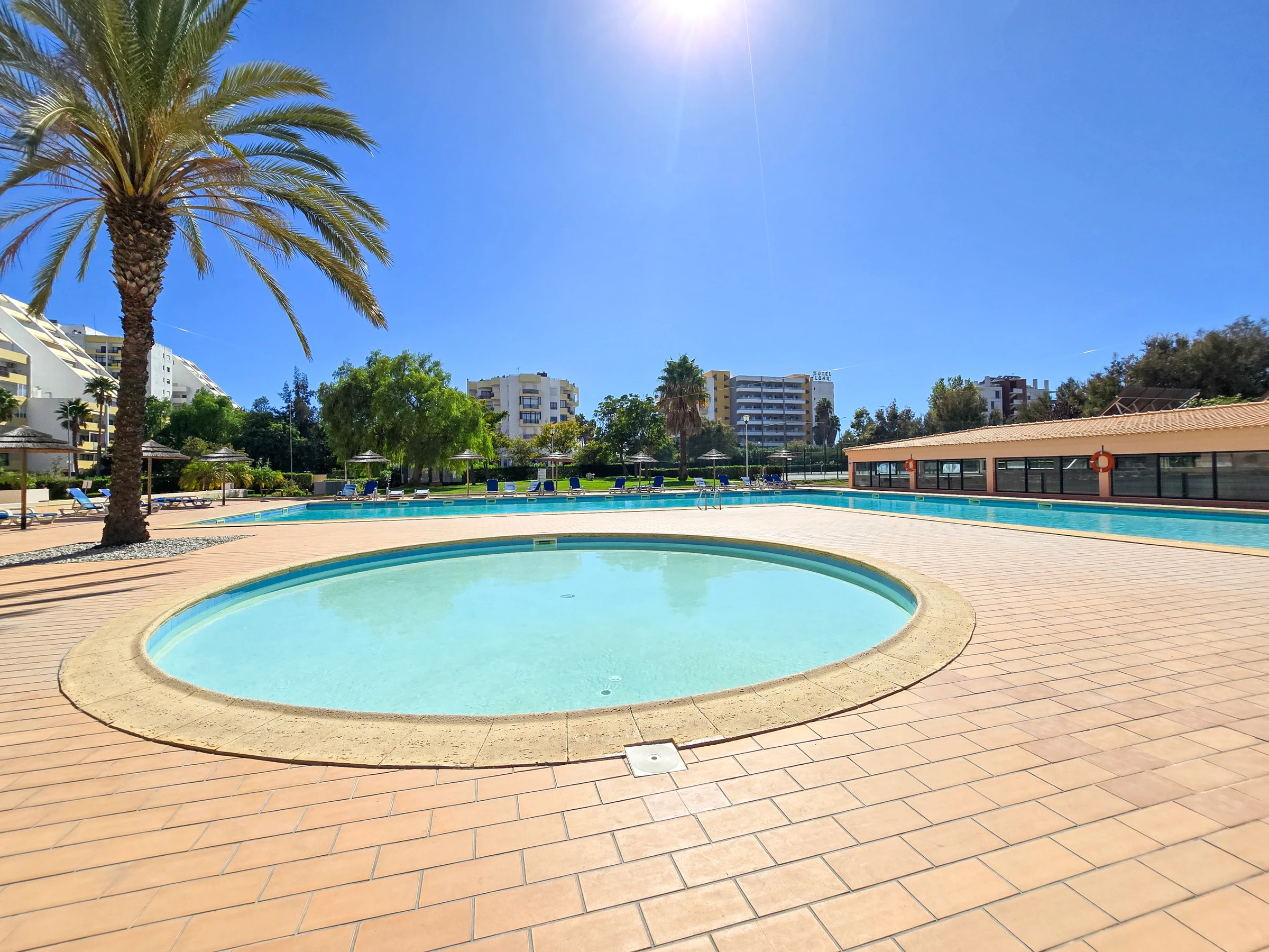 Appartement spectaculaire T1 pour des vacances à Praia da Rocha, avec vue partielle sur la mer et situé dans un excellent condominium privé avec 3 piscines (2 extérieures et une intérieure), 2 courts de tennis, zone de barbecue en plein air et jardin pour prendre des bains de soleil près de la piscine. Situé à seulement 5 minutes à pied de la plage de Praia da Rocha.