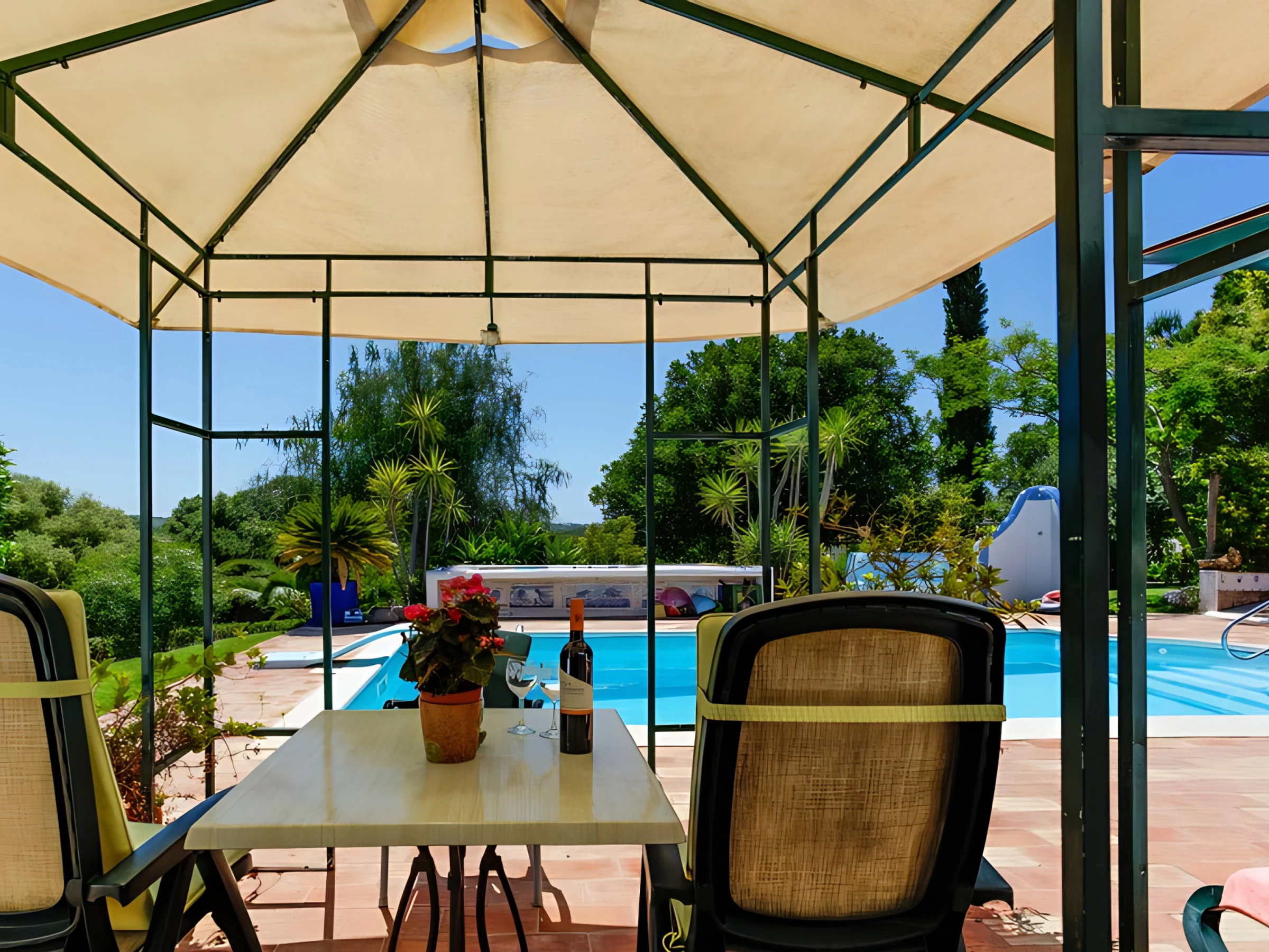 À l'extérieur, l'appartement révèle tout le charme de la Quinta Velha : profitez du jardin botanique, détendez-vous sur la terrasse avec du mobilier de jardin et plongez dans la piscine partagée, une véritable invitation aux loisirs pendant les journées chaudes de l'Algarve.