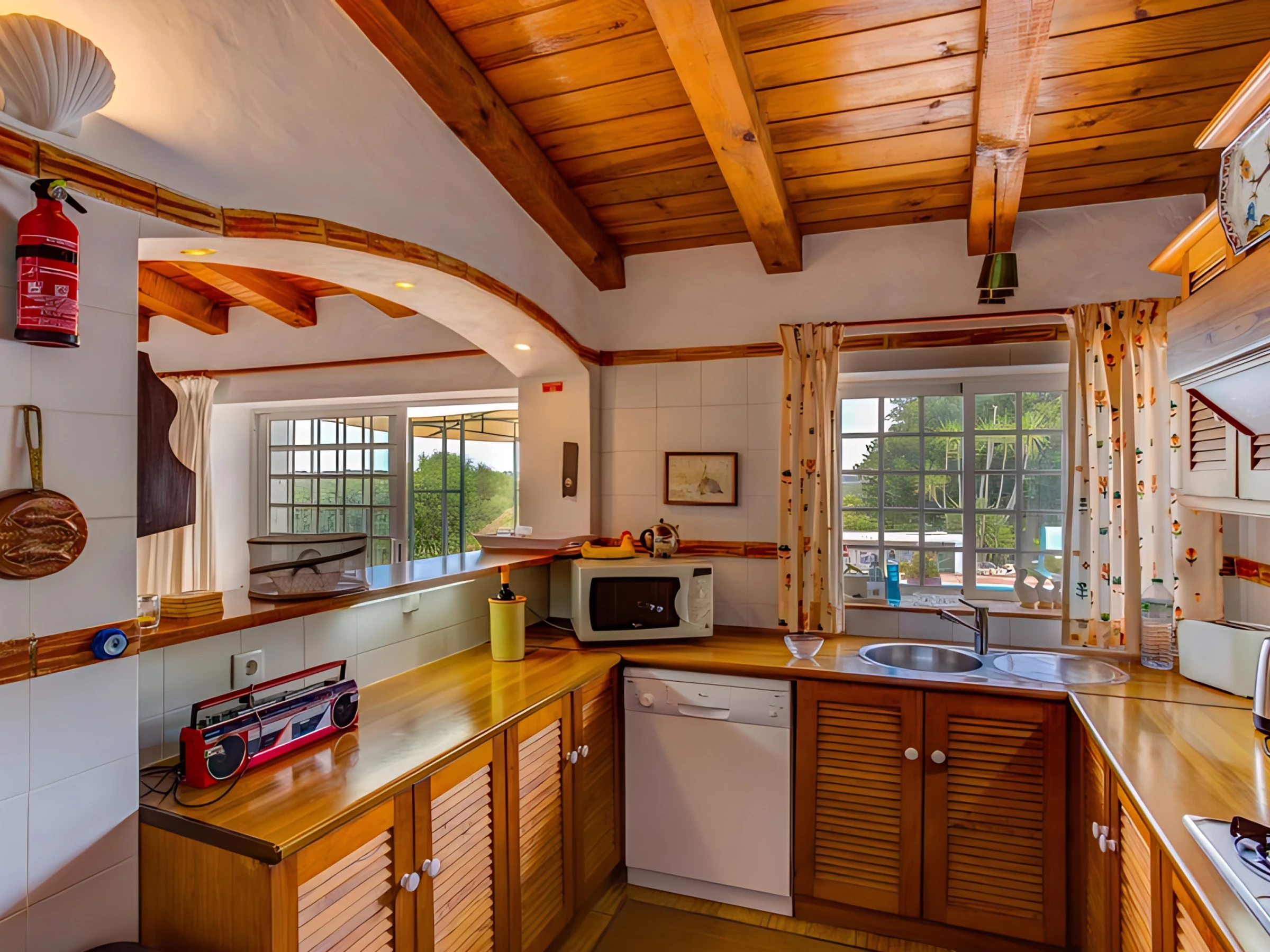 La cuisine américaine entièrement équipée est parfaite pour préparer des repas délicieux, avec tous les appareils électroménagers nécessaires, depuis la machine à café jusqu'au lave-linge. Le salon, confortable et lumineux, comprend une télévision pour des moments de détente après avoir exploré la région.
