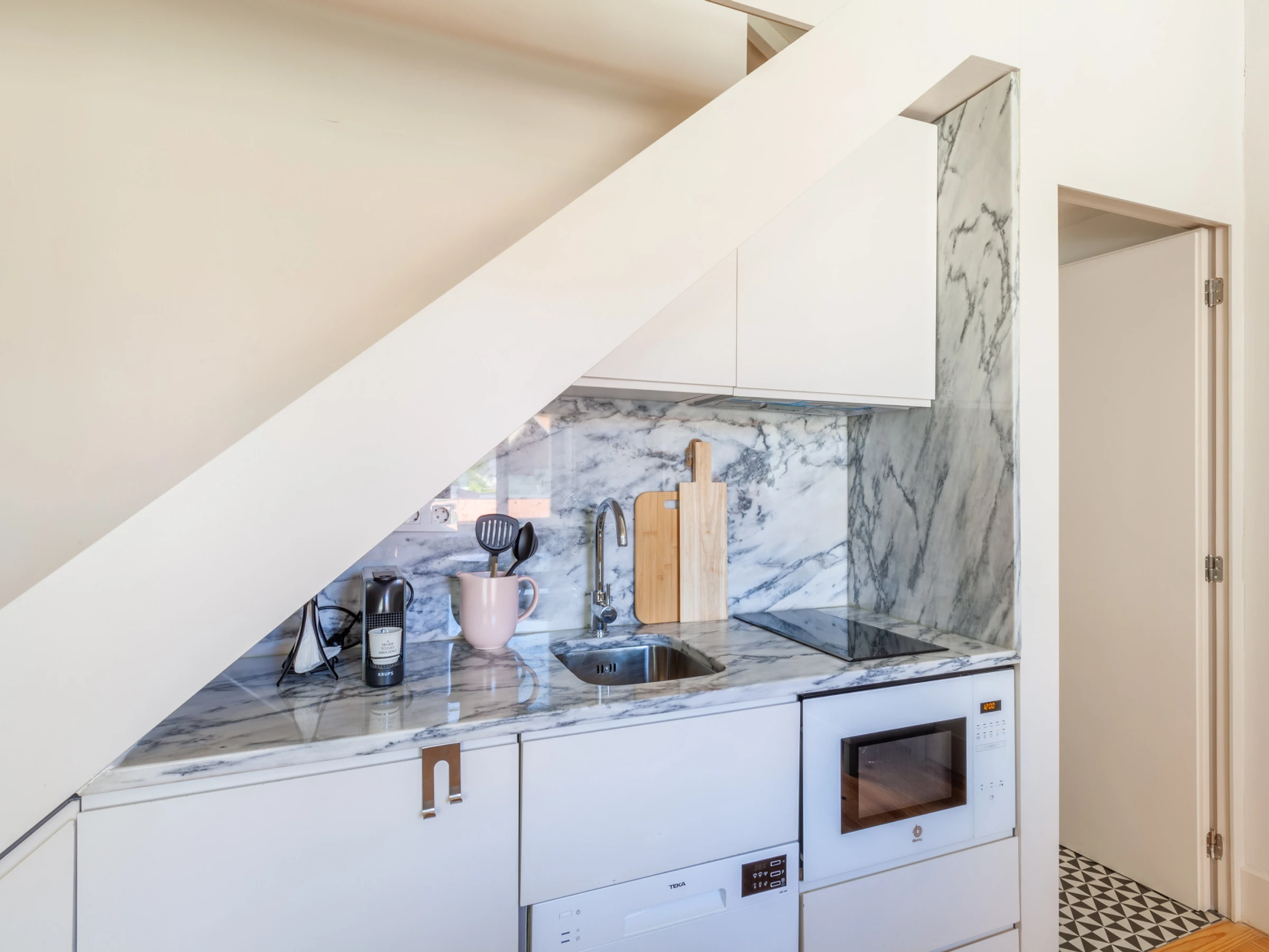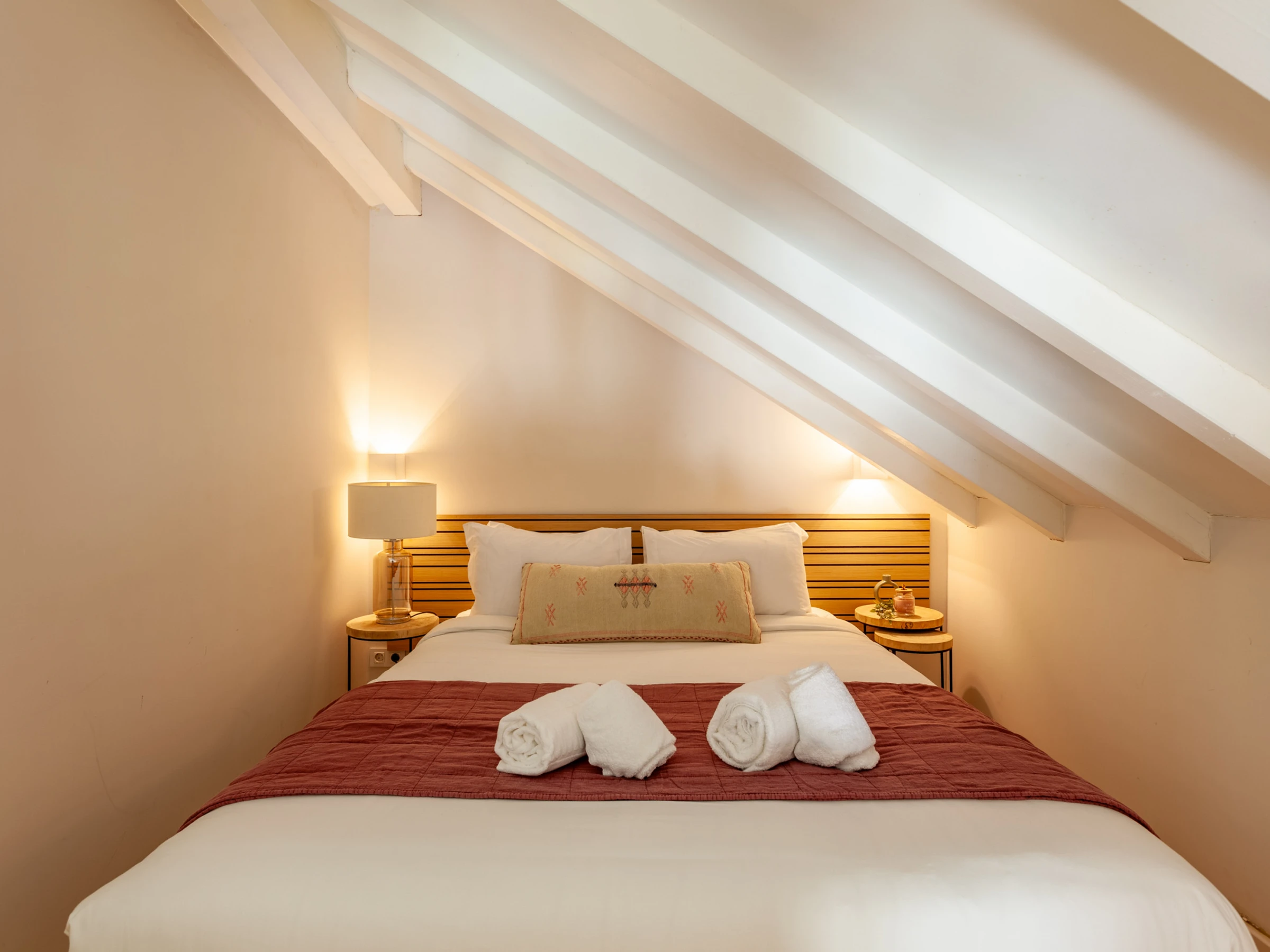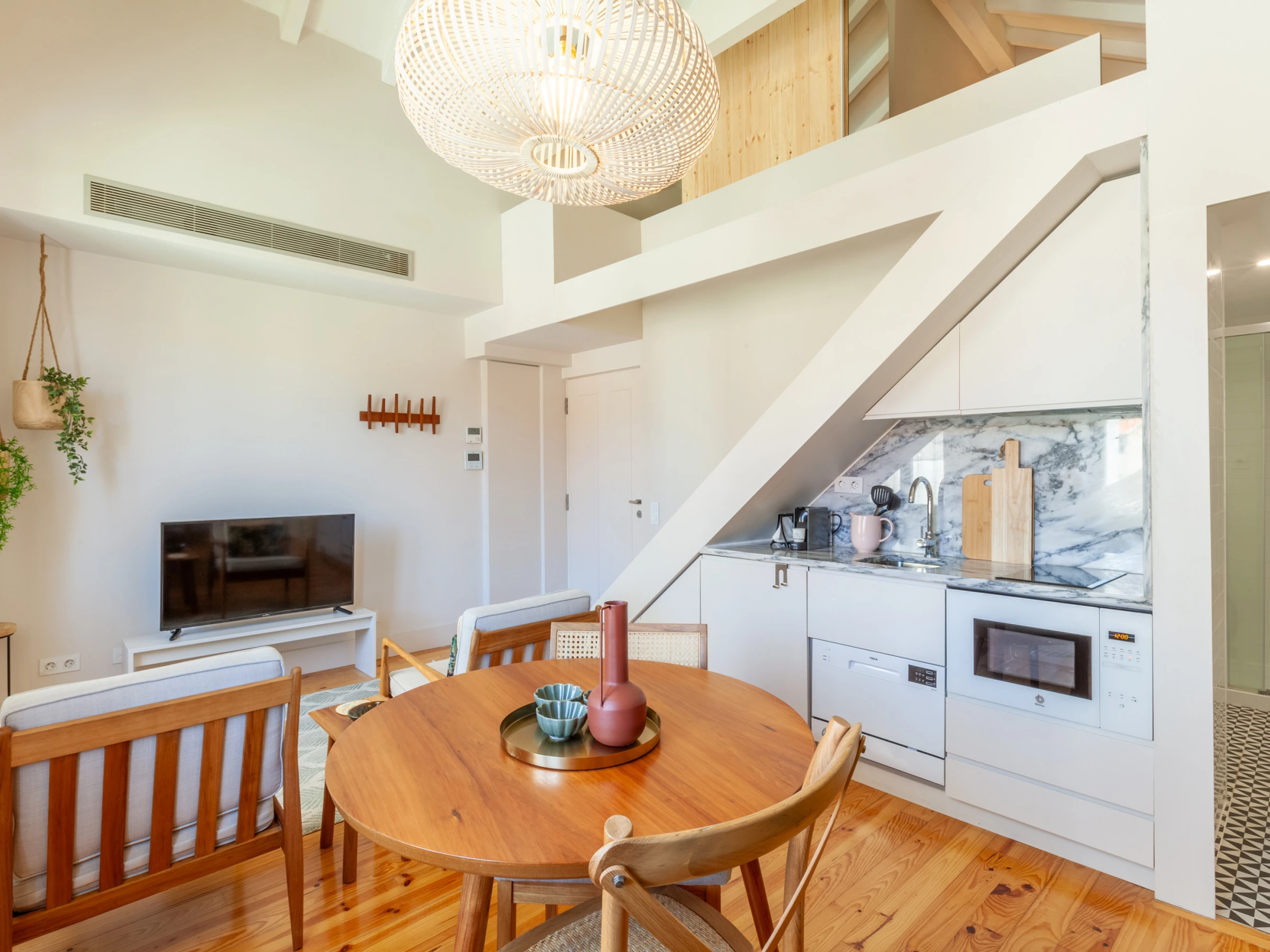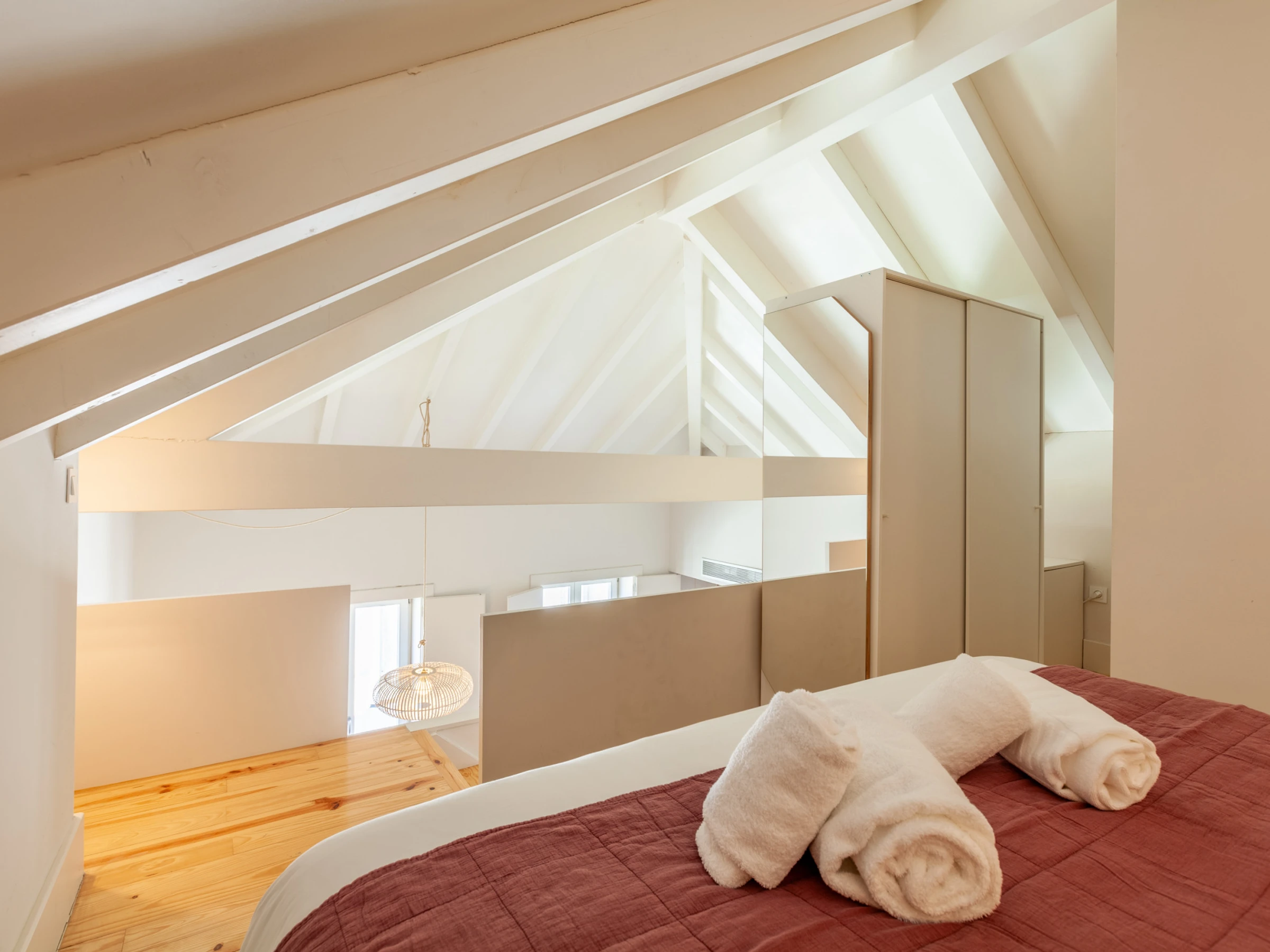 Cet appartement est moderne, lumineux et spacieux. Il a 32m². Il dispose d'un lit double dans la chambre située sur la mezzanine. C'est au 2ème étage et il n'y a pas d'ascenseur.
