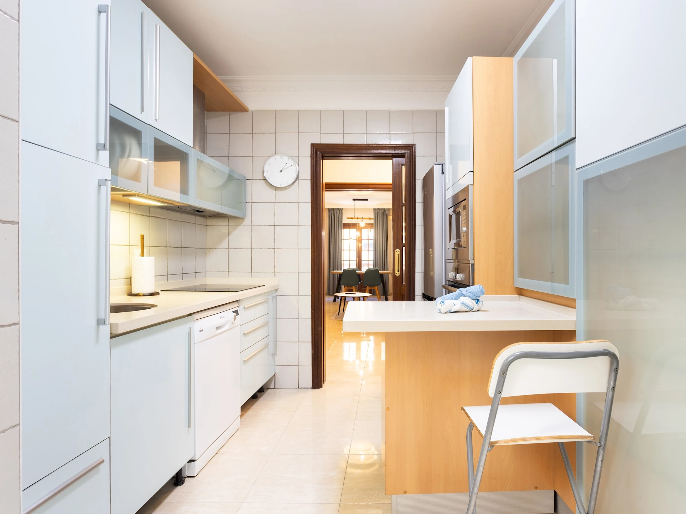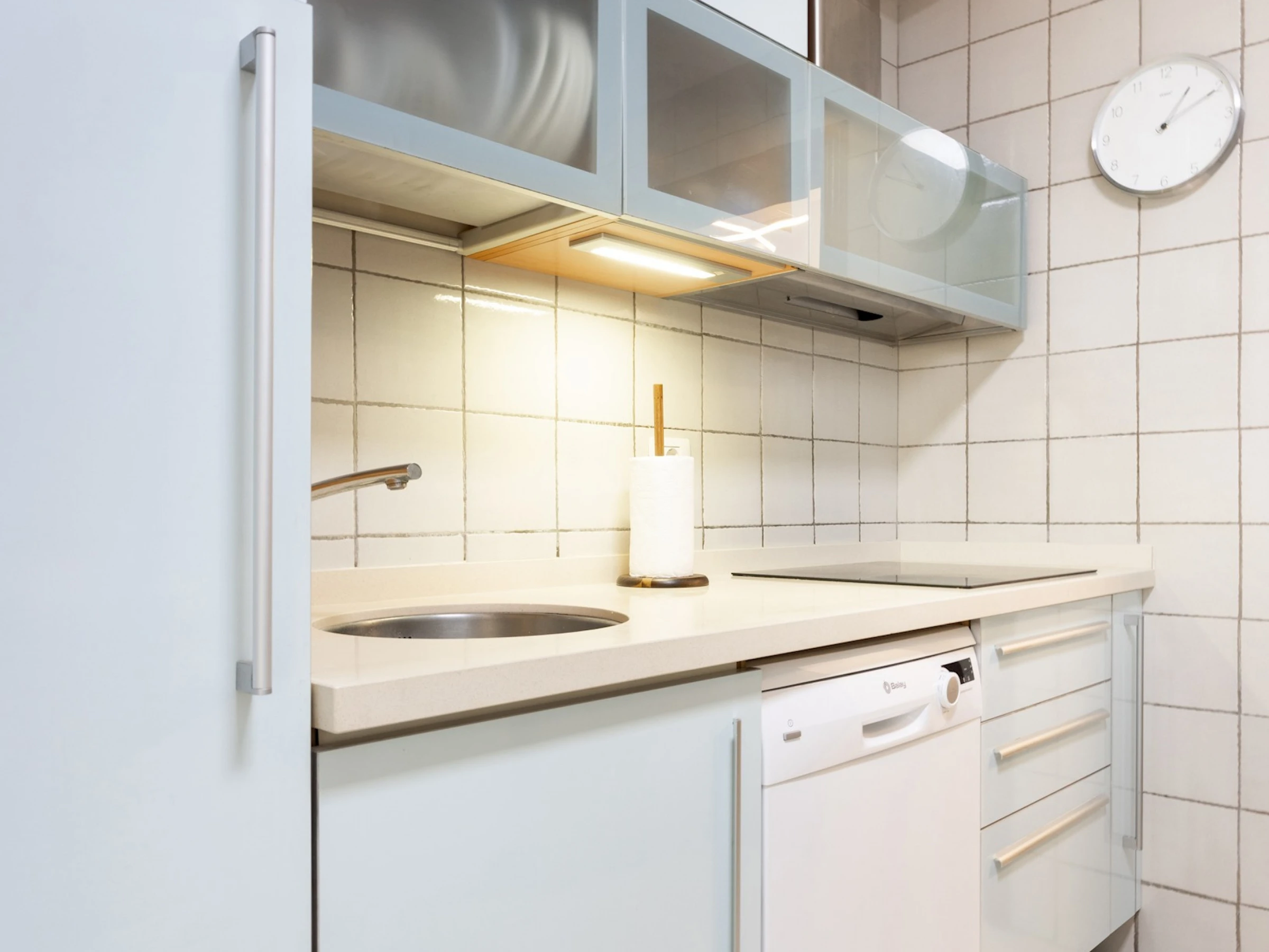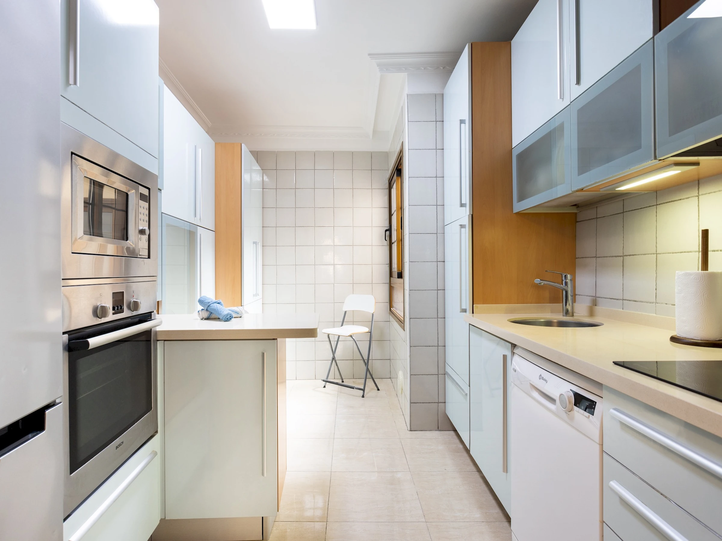 La cuisine, est équipée avec micro-ondes, four, lave-vaisselle, ustensiles/cuisine et cafetière.