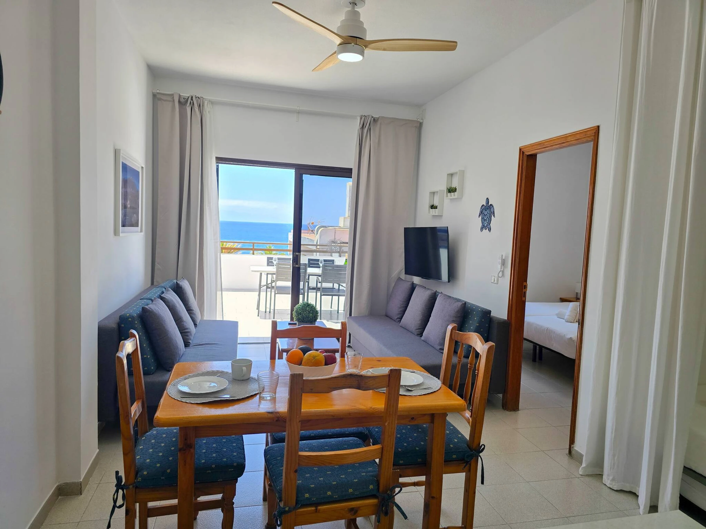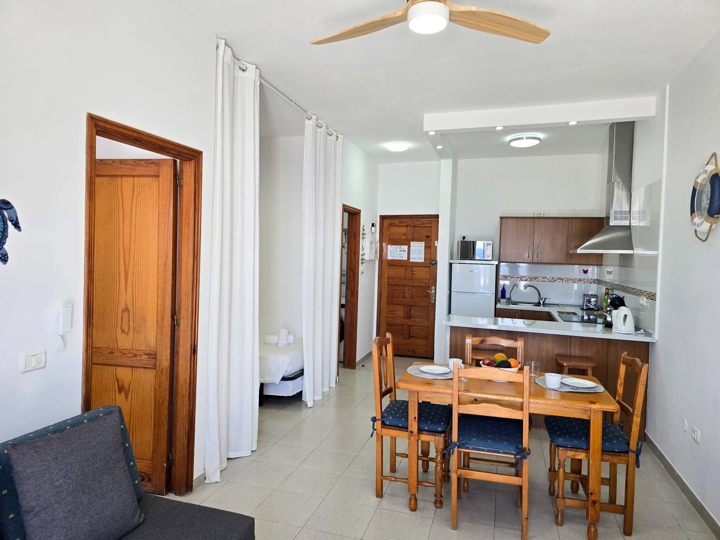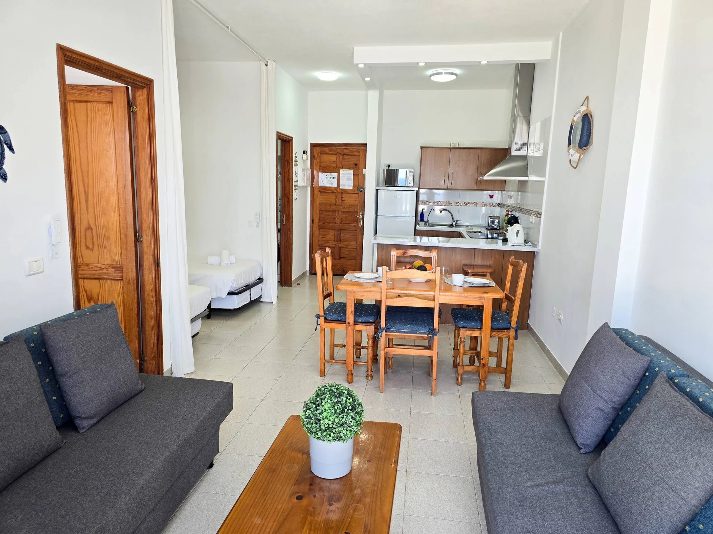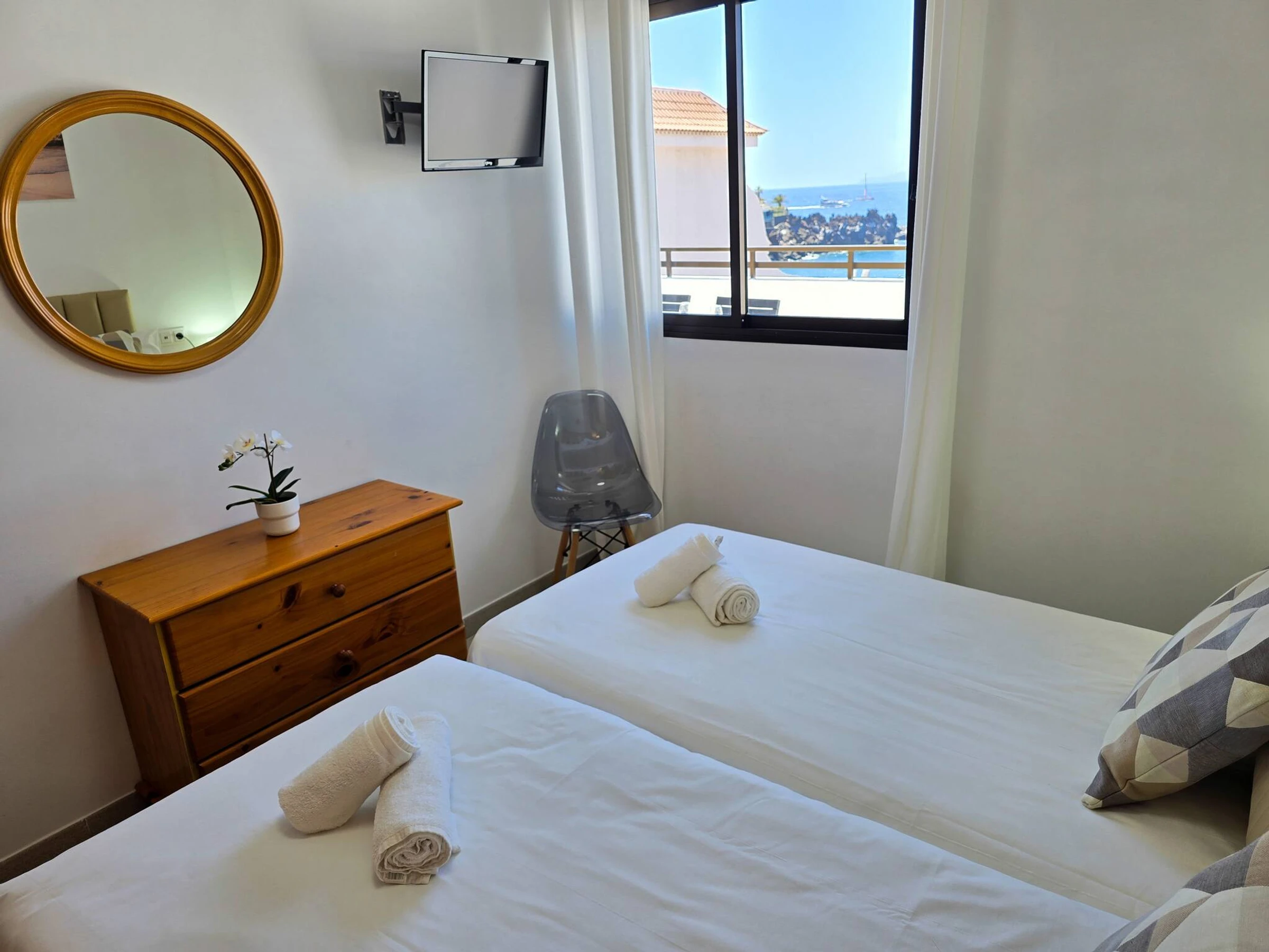 Il comprend un salon avec une cuisine américaine, une chambre avec deux lits individuels et un espace réservé avec deux autres lits individuels. Il dispose également d'une salle de bain et d'une terrasse avec une zone de repas et des hamacs où vous pourrez profiter d'une magnifique vue sur la mer et le soleil de Tenerife, dans tout le calme.